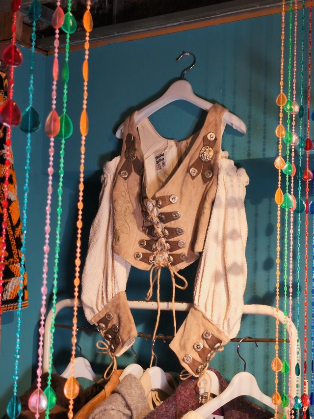 チロルブラウスです。 ビスチェ部分はさることながらリネンのボリュームたっぷりのアーム、豪華な刺繍と装飾が非常に贅沢な雰囲気。 キャミソールのうえにオンしたり、ロンT、パワーネットトップスなどとのレイヤードも面白い。ディアンドルドレスなども好きですがトップスだとより遊びが増えてこれもまたいいなぁ。 Size(平置き) 肩幅 28.5cm アーム部分 48cm 着丈 38.5cm 身幅 38cm (フロントのレースアップ部分で多少の調節可能) Condition 腕部分に薄っすらとしたシミがございます。 詳細は掲載写真にてご確認ください。