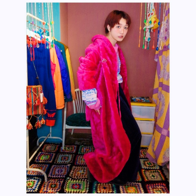 フェイクファーのガウンです。 いろみは、マゼンタ。 鮮やかなカラーリング、ふわふわの贅沢な丈感。スタイリッシュなショールカラーと、クリアなボタンがゴージャスな雰囲気です。 とびきり目立つし難しそうなアイテムに一見思えますが、カジュアルなアイテムと合わせながらさらりと羽織るのがおすすめ。 パーカーやオーバーオールと合わせて普段使いに落とし込むのがとっても楽しくなっちゃう1着です。 Size(平置き) 肩幅 43cm 身幅 55cm 袖丈 54.5cm 着丈 134cm