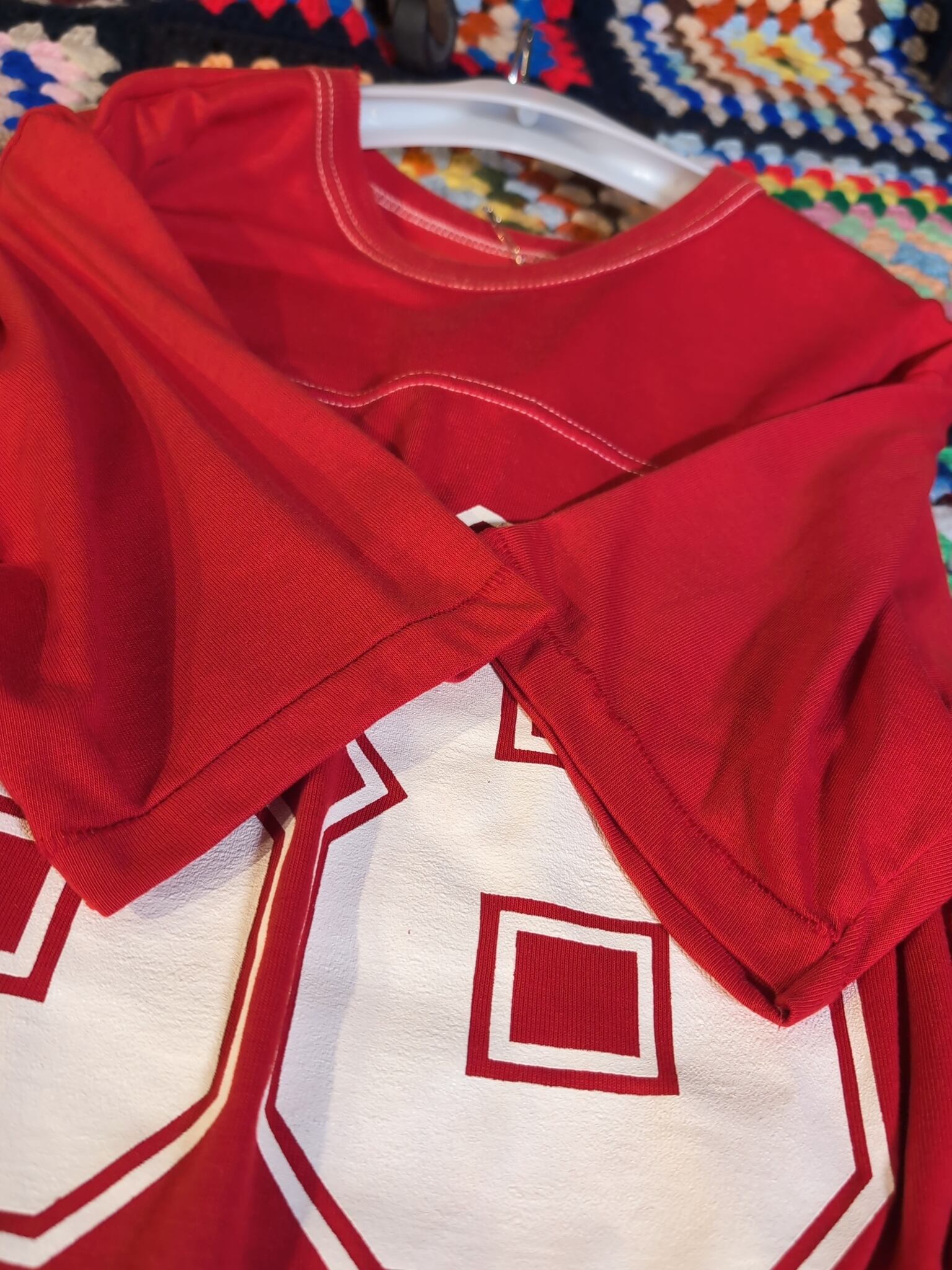 色味は、レッド×ホワイト。ビビッドなレッドに88番のプリント◎