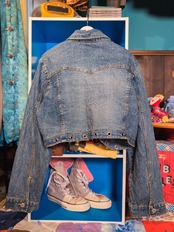 キラキラした細かいスタッズとハトメが、なんだかギャル~な雰囲気。褪せたカラーのデニムでちょっぴりやんちゃな印象なのも個人的にとても気分です。(アゲ)