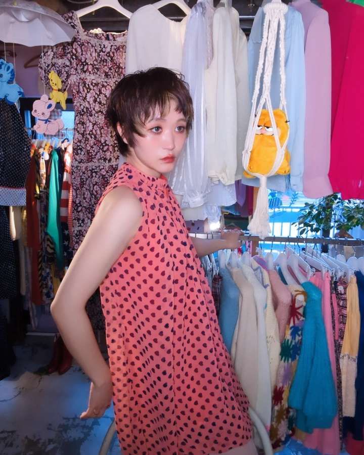 ラブリーなハートの総柄、シアーな素材感ともにとってもキュート。ノースリーブでスッキリしつつも、裾はバルーンでポワンとしたシルエット◎