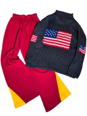 色味は、ボルドー×マスタード。トラックパンツですからもちろん動きの良さが◎また、スポーティーな雰囲気ながらも、ボルドーベースにワンポイントのカラーっていうのがシャレオツですな。