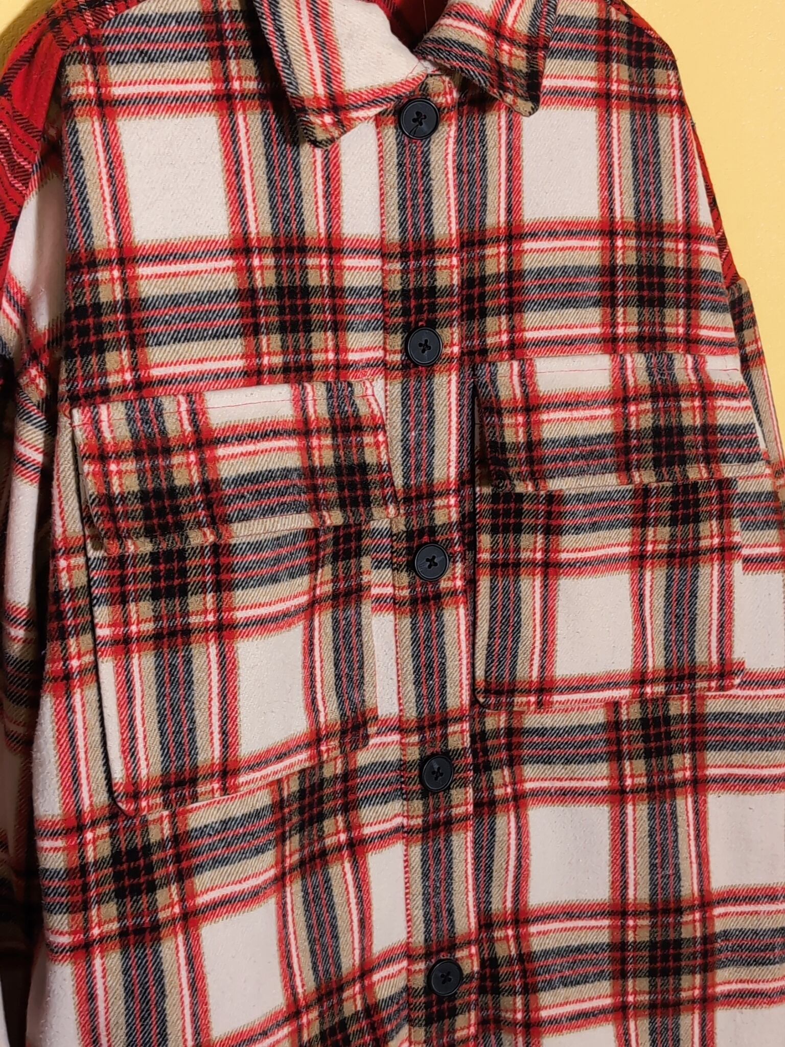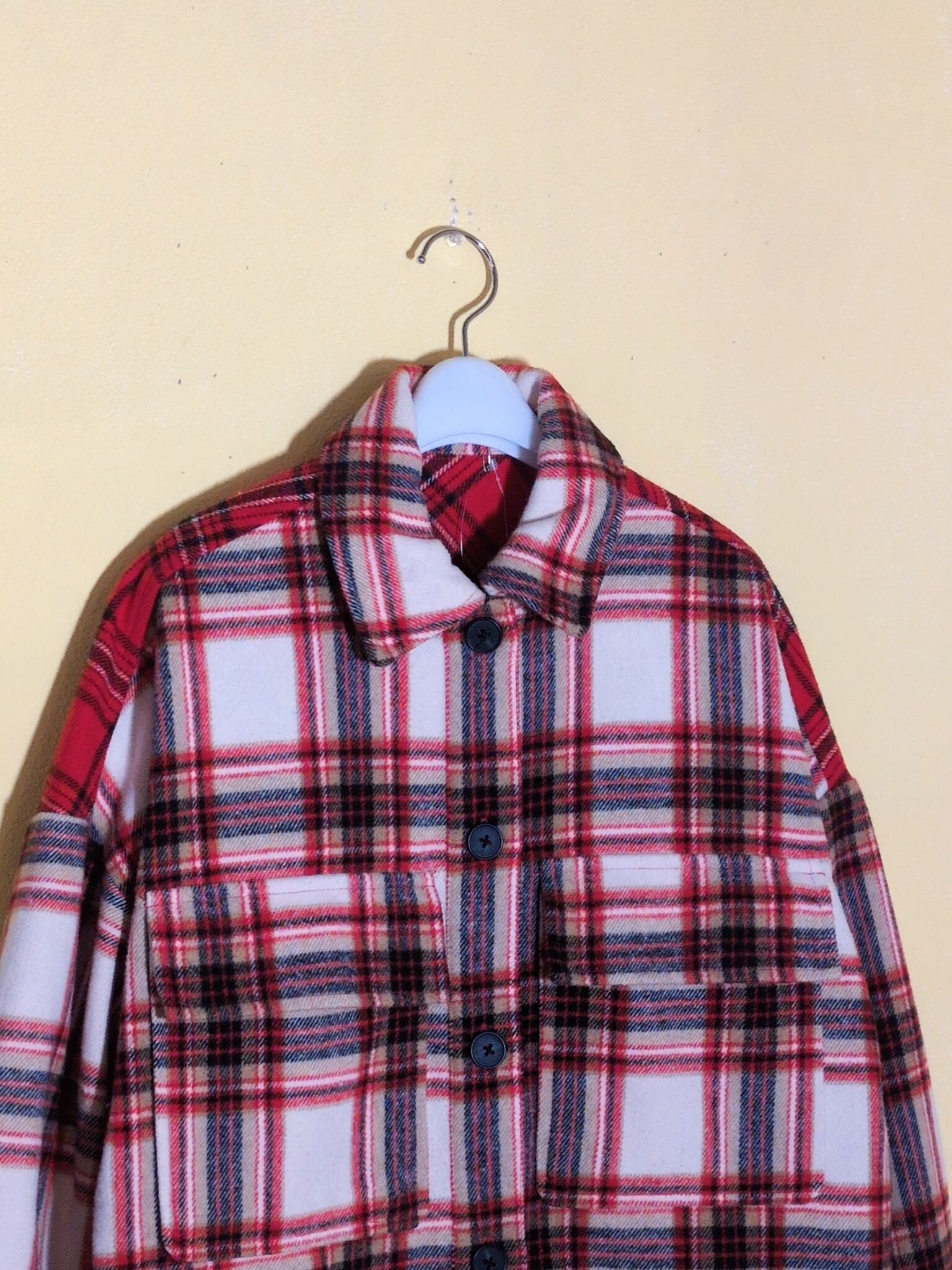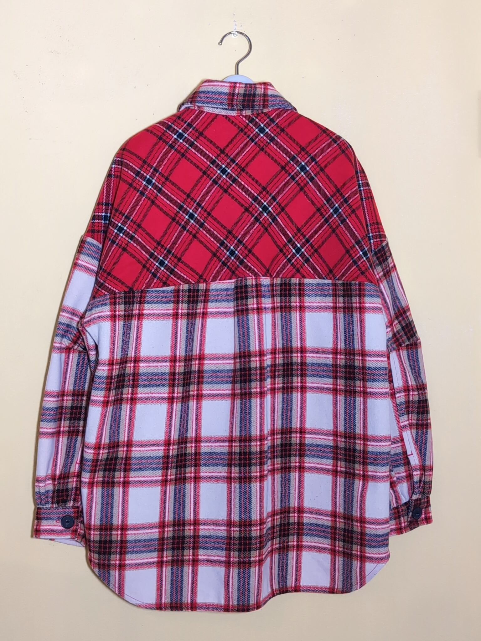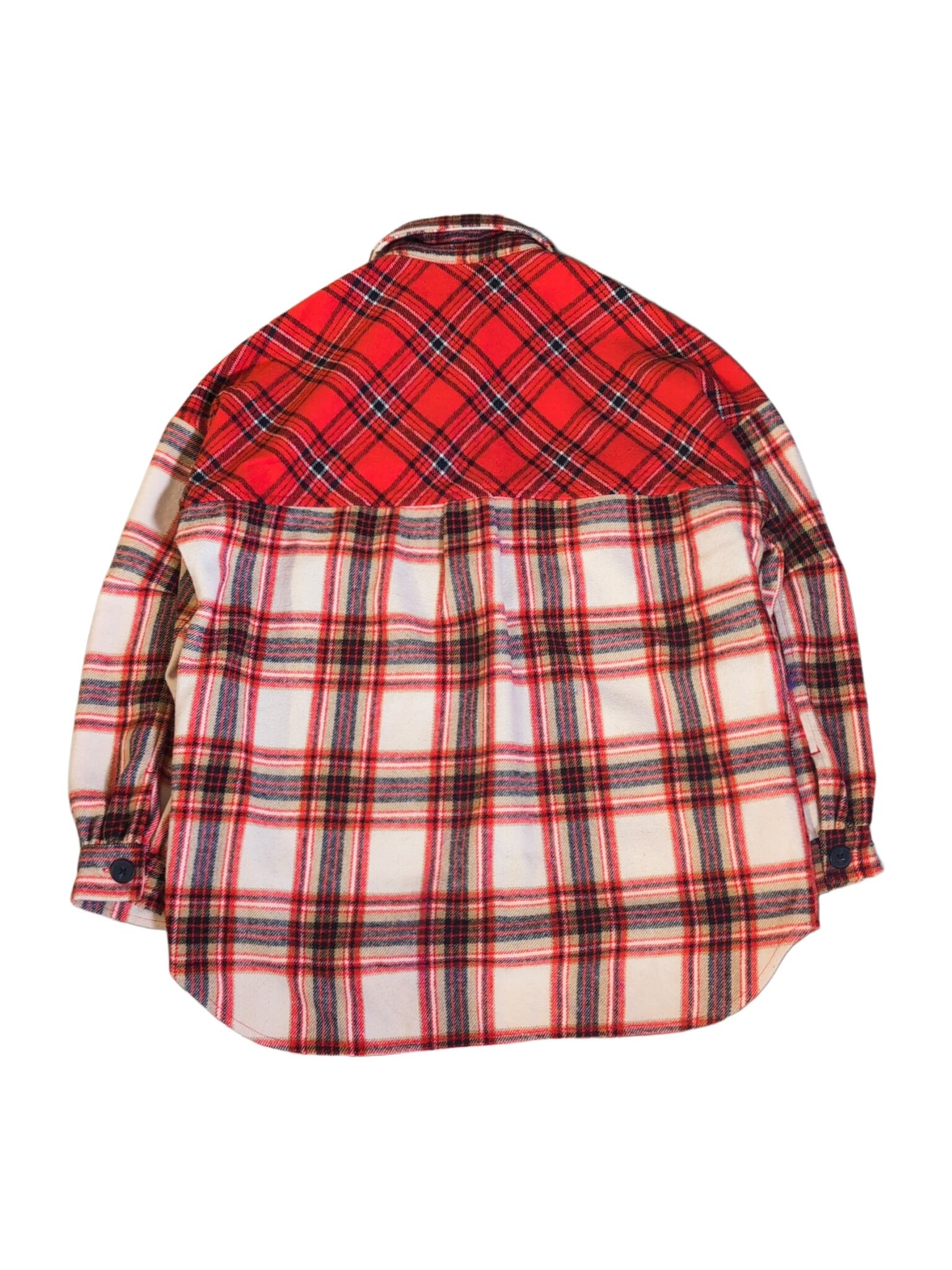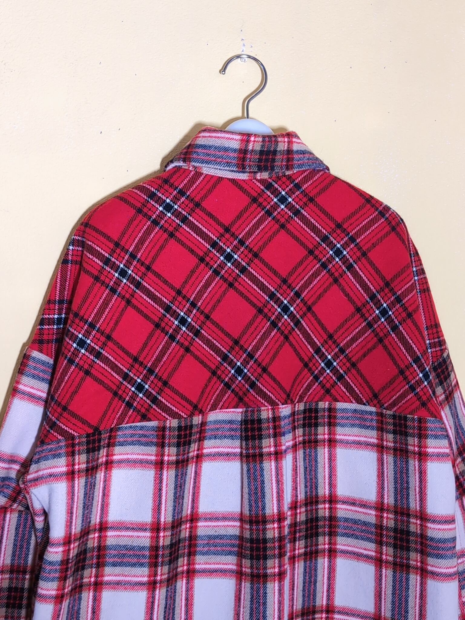 秋の定番、タータンチェック。ガバッと羽織れる大きなサイズ感と重くなりすぎないカラーリング、背面がワンポイントで違ったテキスタイルを使っているのも◎