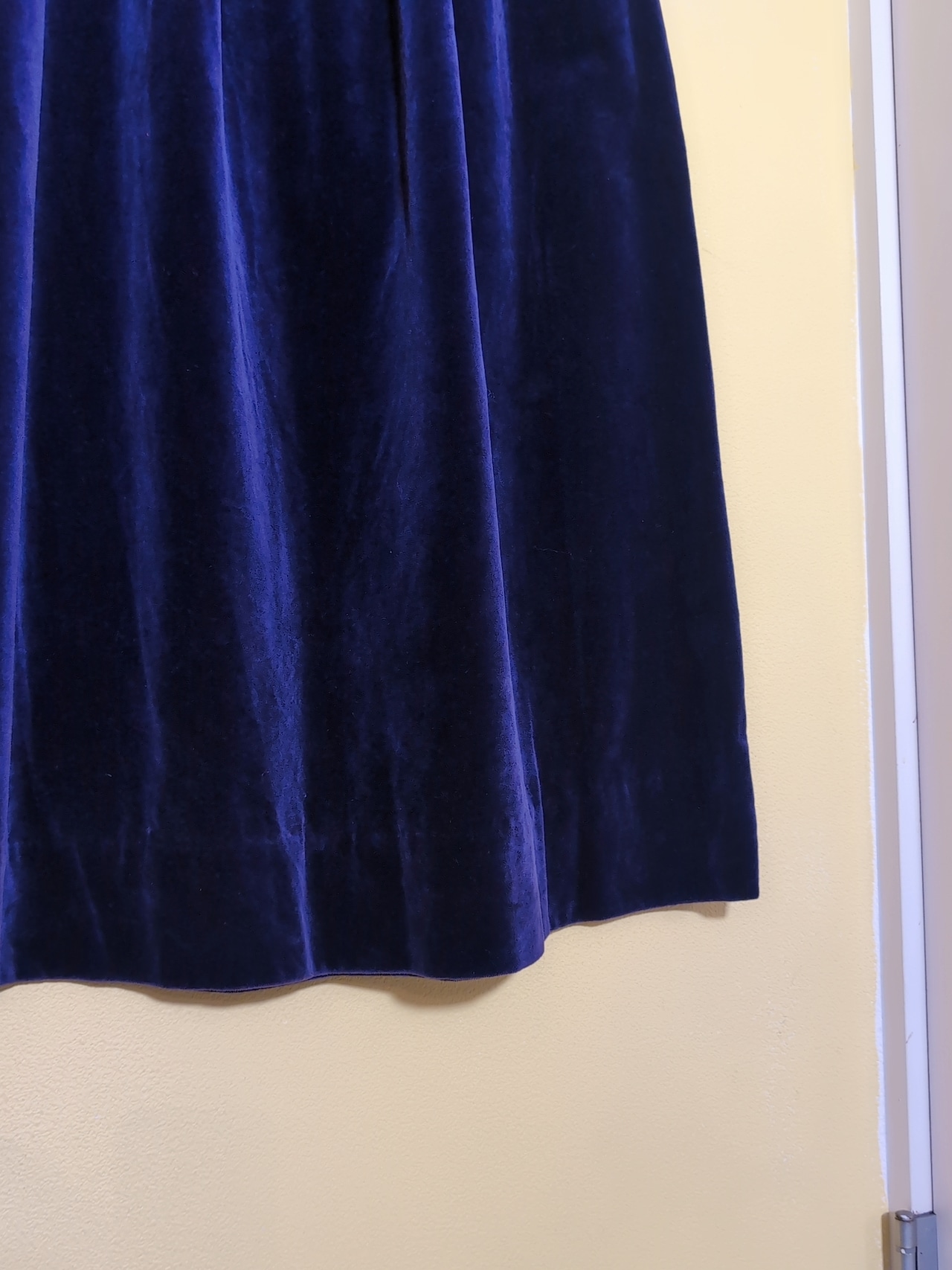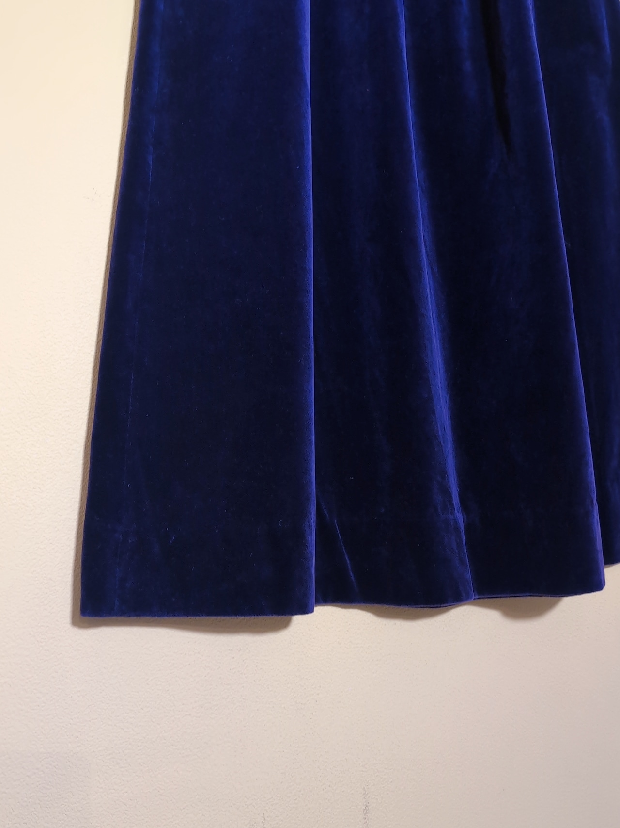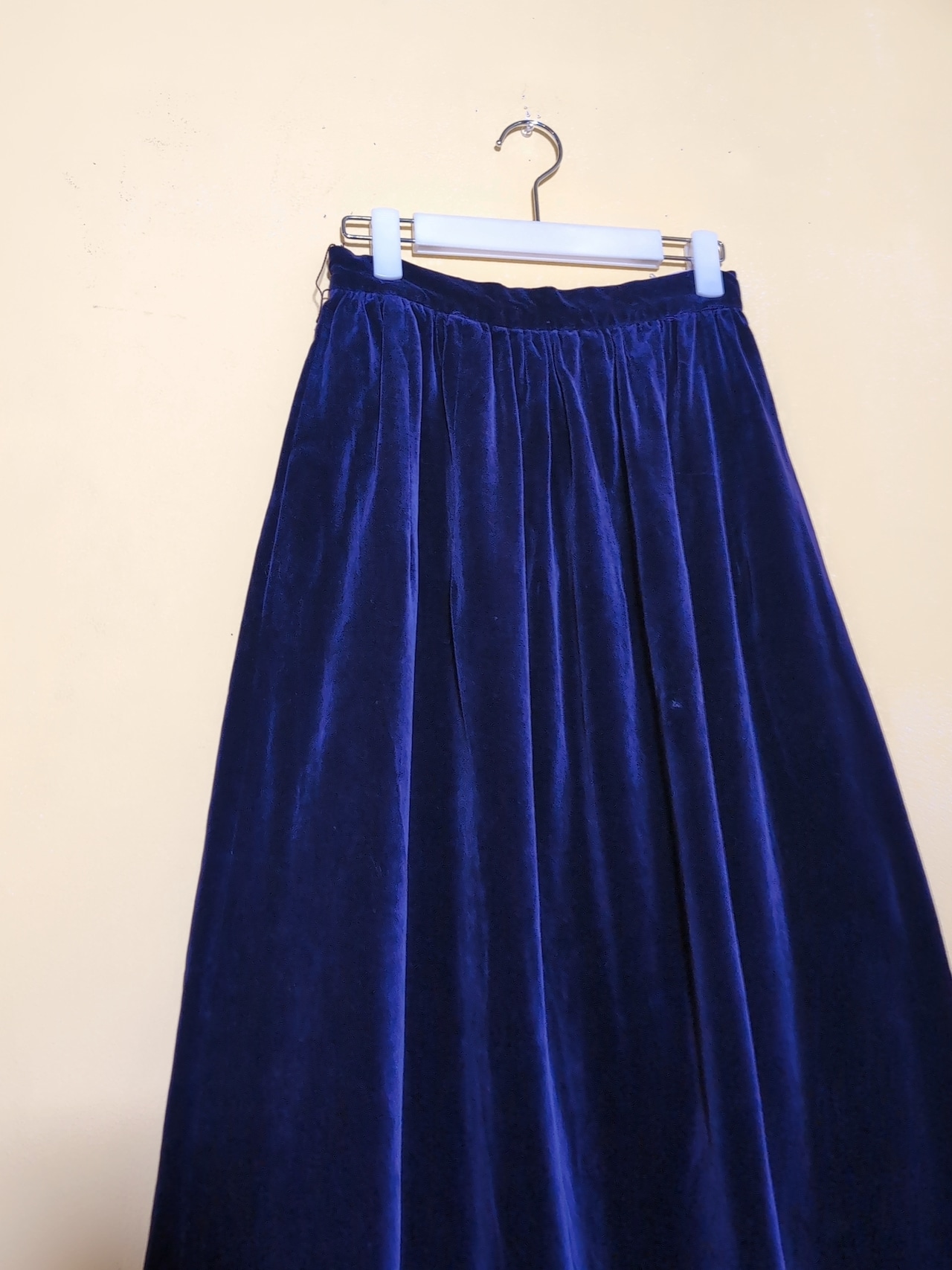 カラーのベロアスカートだーいすき。ブラックもいいですがニュアンスで色味がついていると光の加減で絶妙に変わる表情がよりいいです。