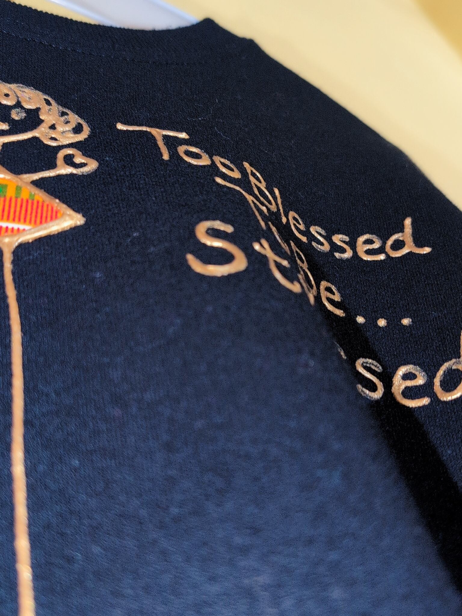サイズ感はゆったりめ、プリントありですがブラックベースで合わせやすさ◎アフガンバティックのスカートやワンピースにレイヤードしてもかわ良さそう。