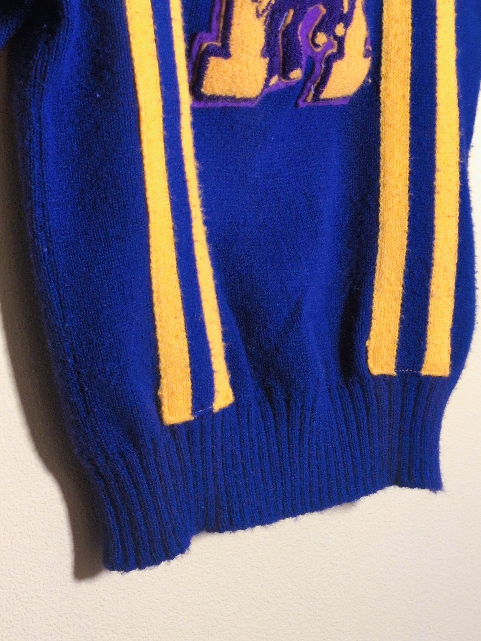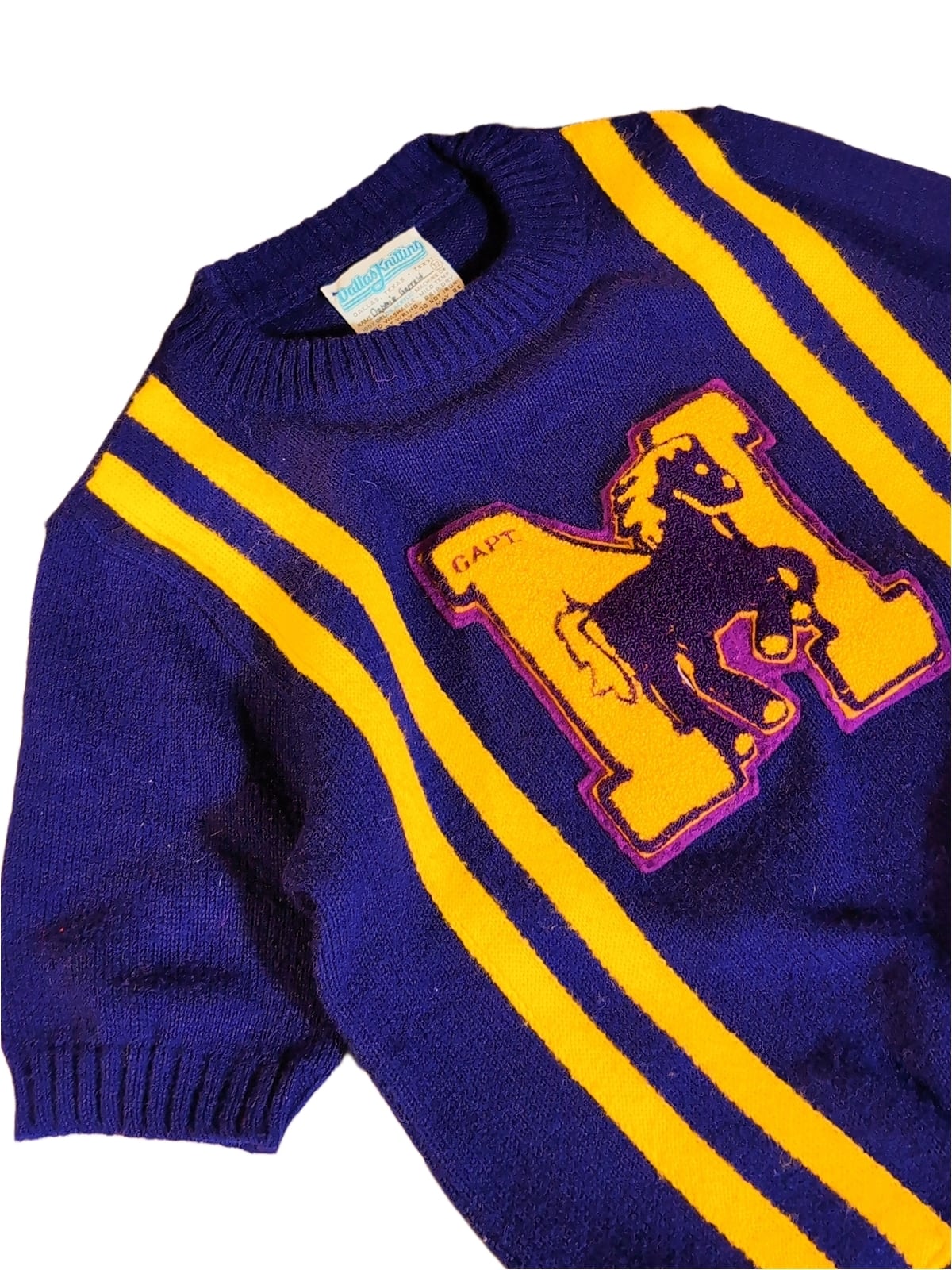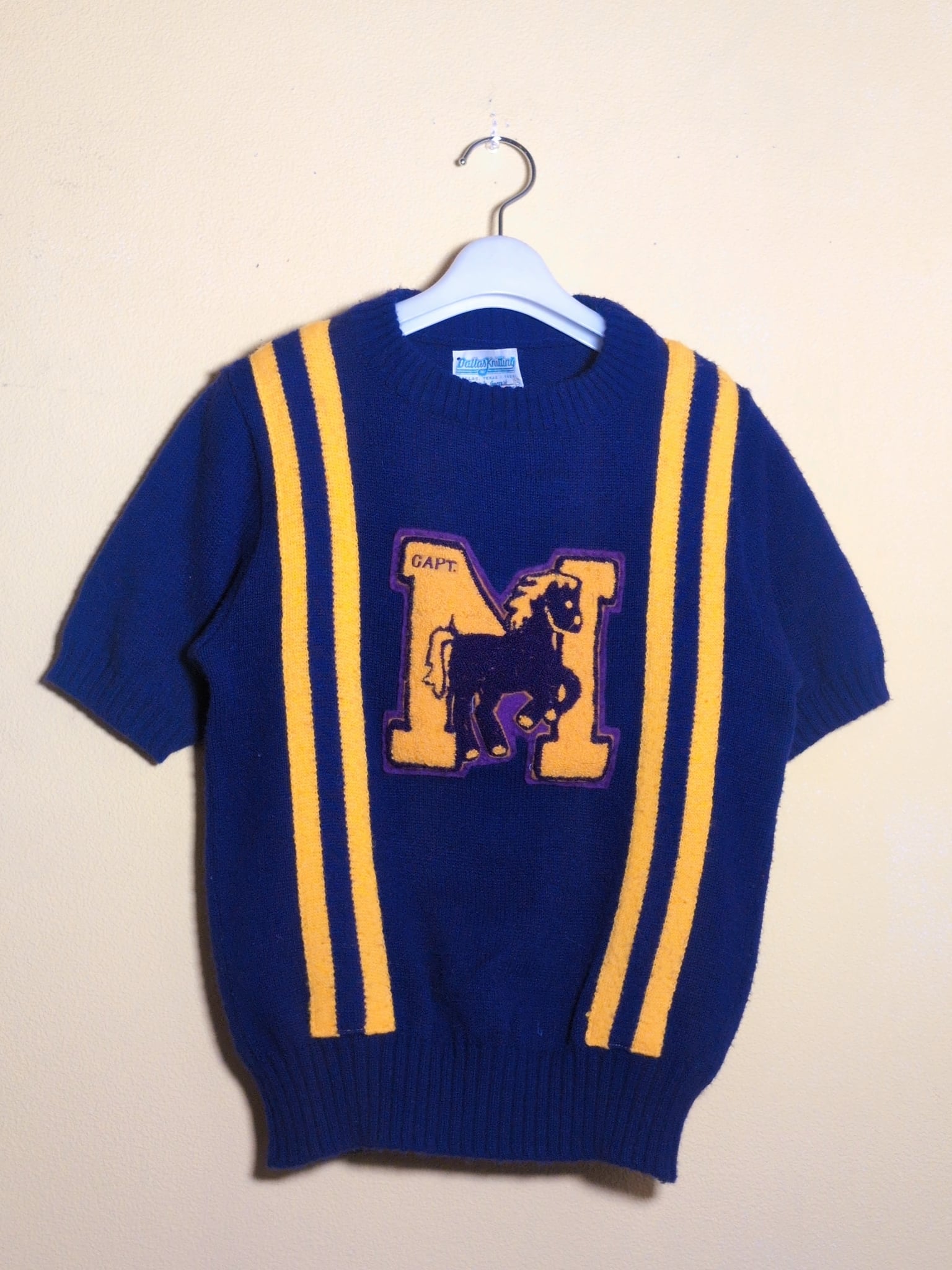 色味は、パープル×マスタード。レタードニットでTシャツタイプはなかなか珍。それだけじゃなくて色の配色とワッペン、ラインのバランスが秀逸だなと。