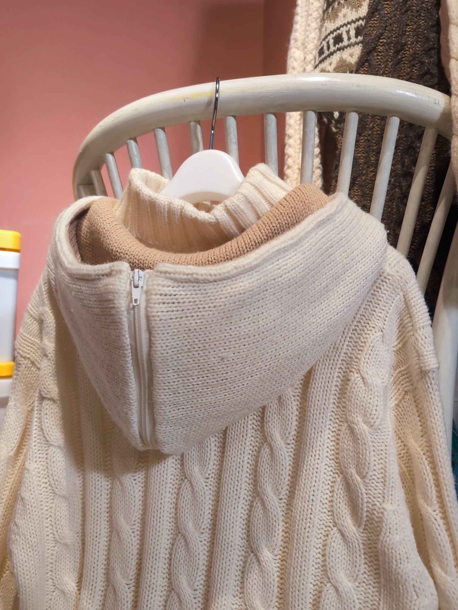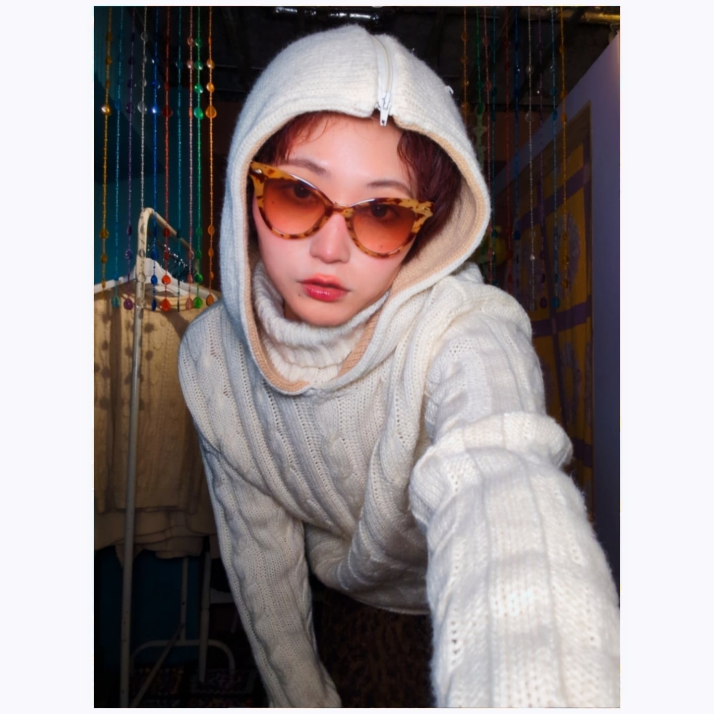 アクリル100のもちもちと質感と伸縮でやわらかな着心地。ジップを締めるとコンパクトなフードに、開けるとセーラーカラーでガラッと雰囲気が変わるのが魅力的◎