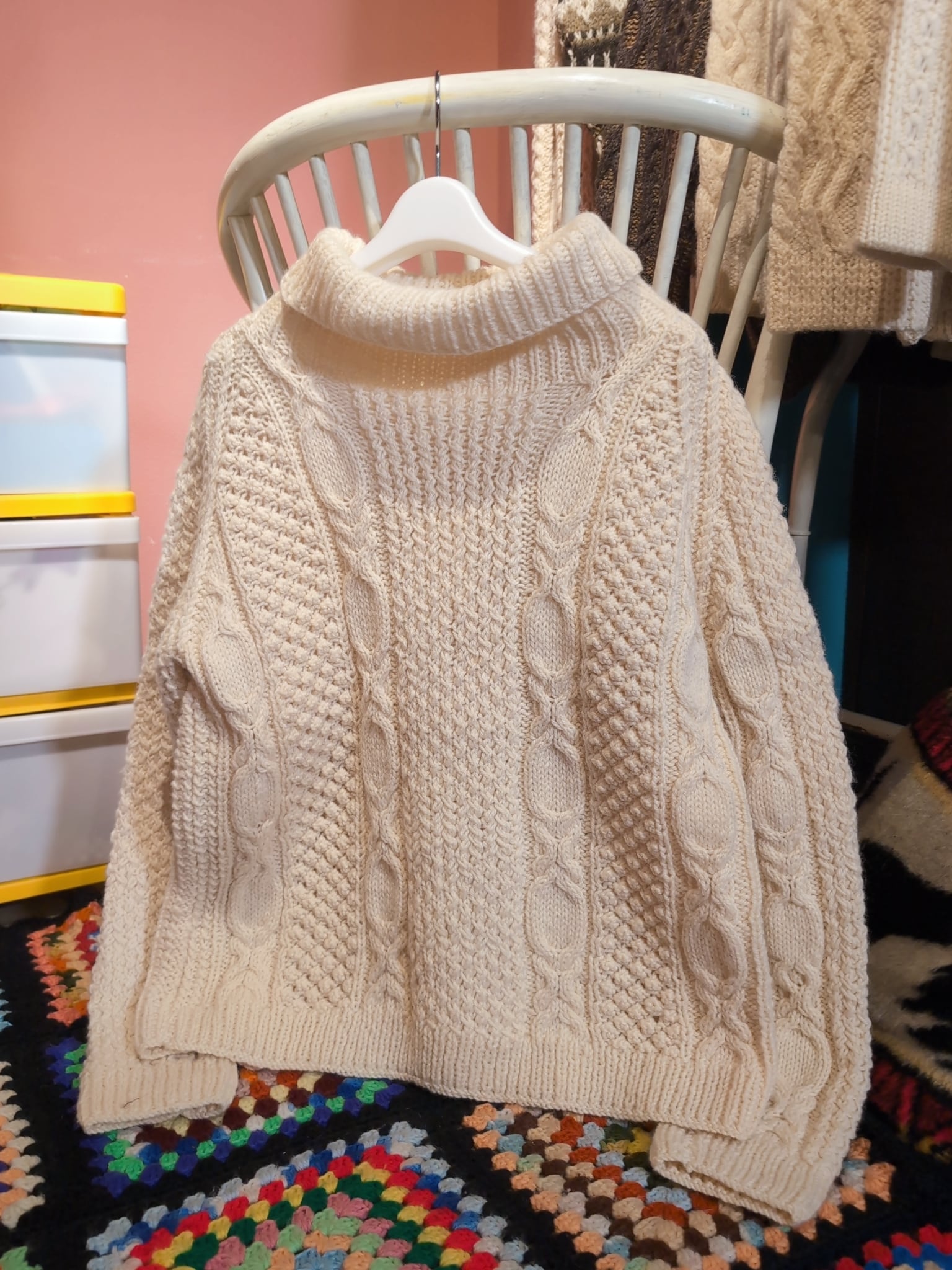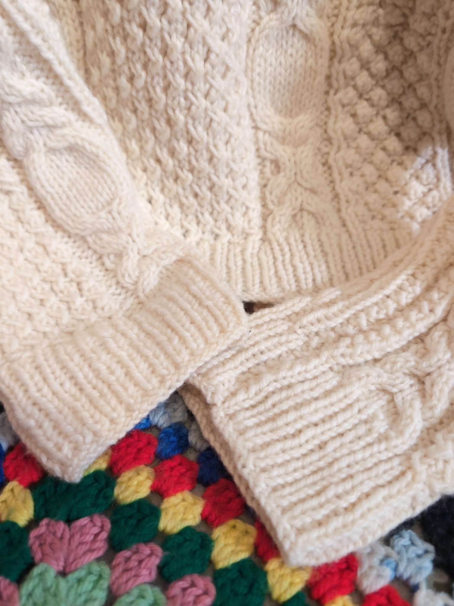 アランニットって結構どれも似たように見えますがそれぞれ編みやデザインを見比べだすと案外結構違うから面白い。