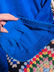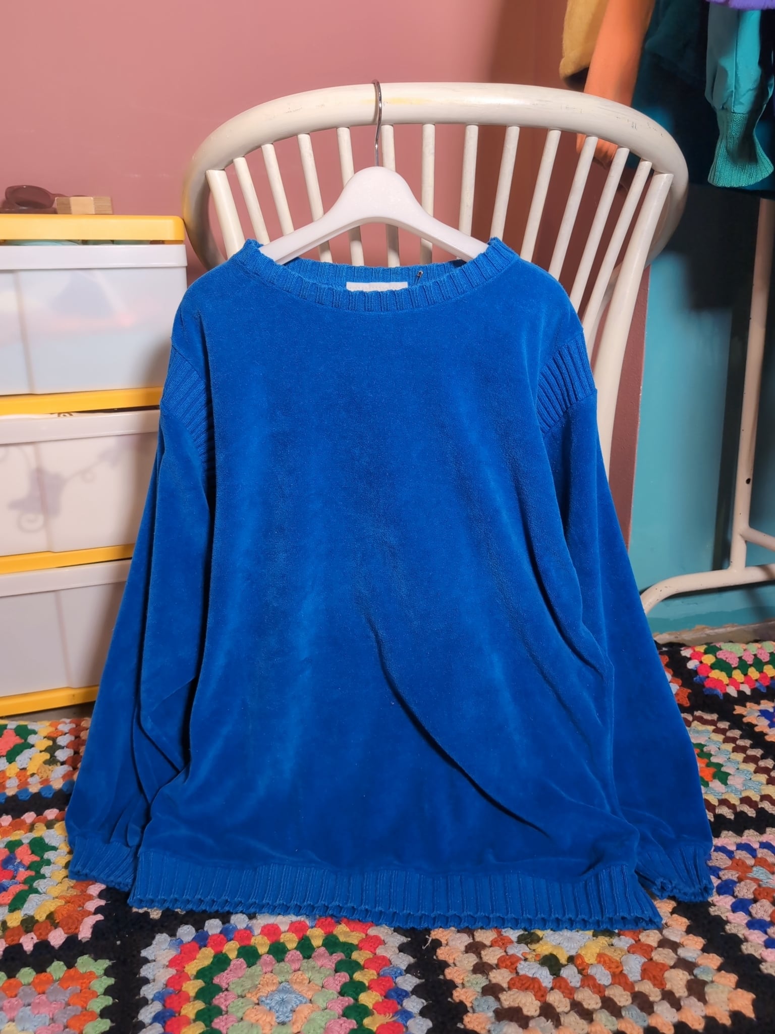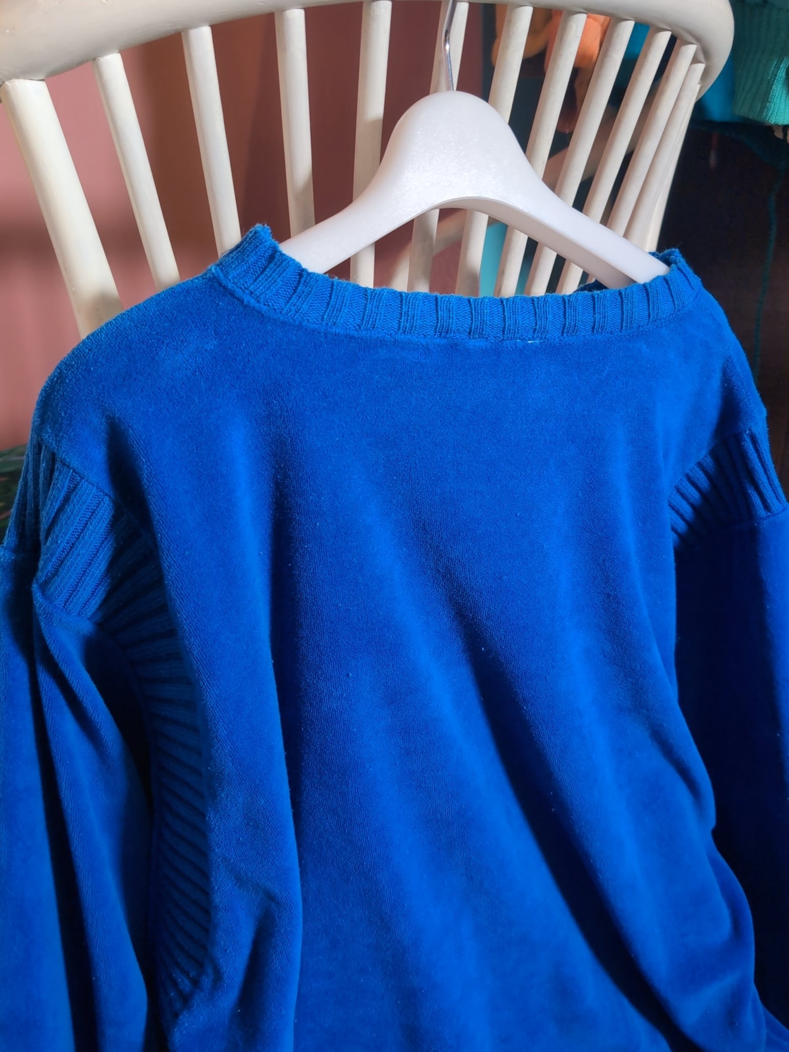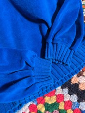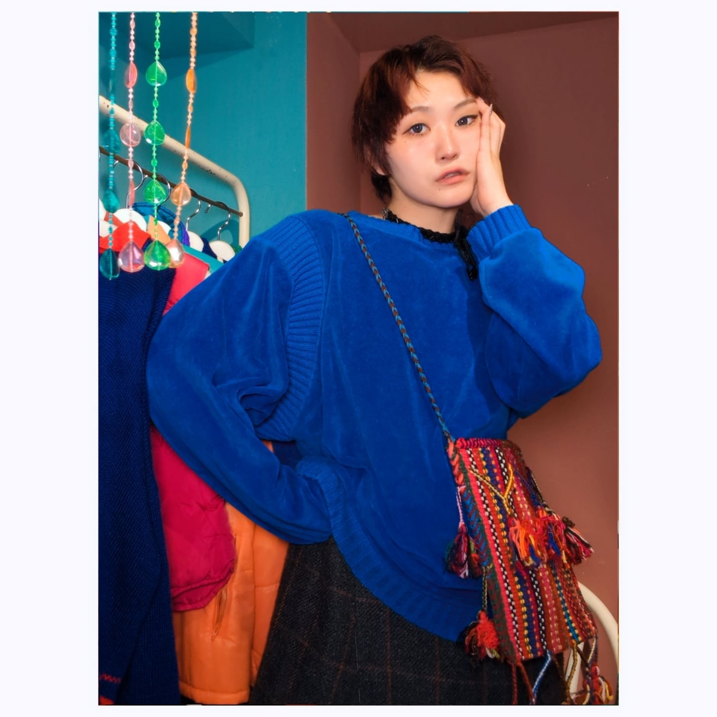 ふわふわとした滑らかな肌触りと、鮮やかなカラーリング。スウェットでもニットでもないこの感じ。上品に寄りそうな素材感ですがリブが施されていたり、身幅が広くゆとりのあるデザインがカジュアルな印象なのが素敵。