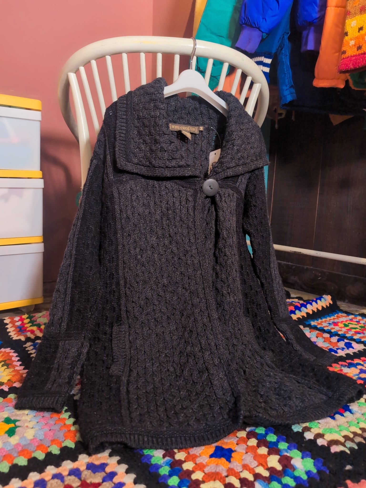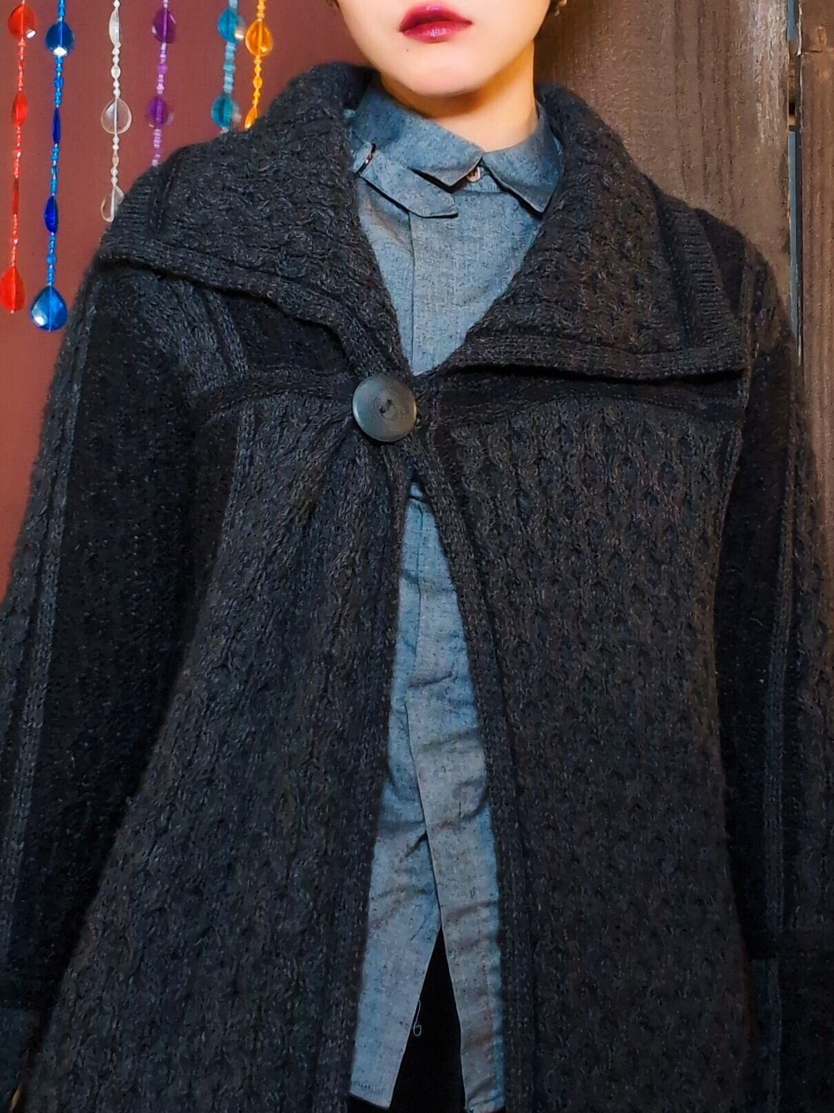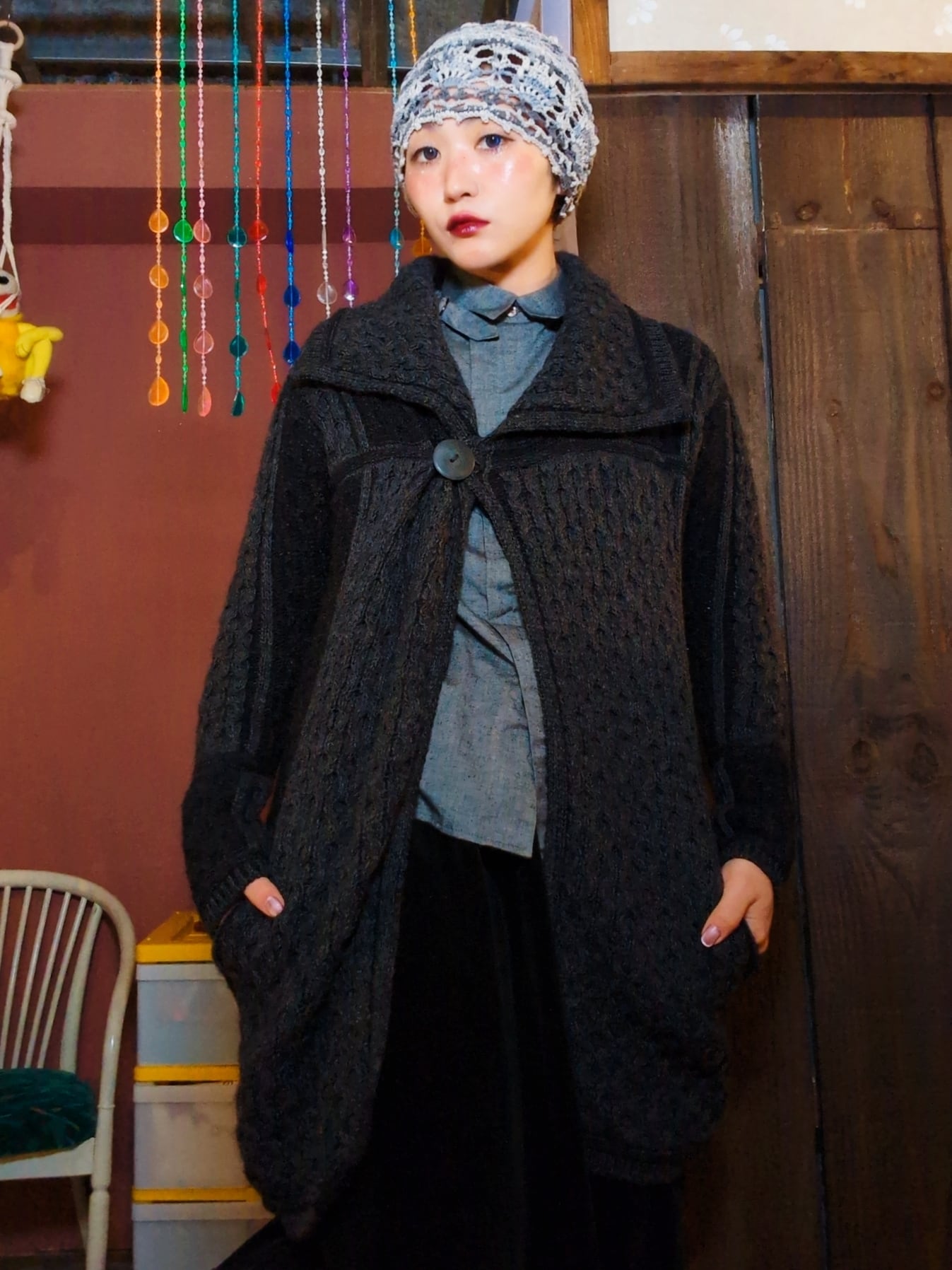 色味は、ブラック。パッチワークのように編みが変えられていて一辺倒じゃない立体感が魅力的。