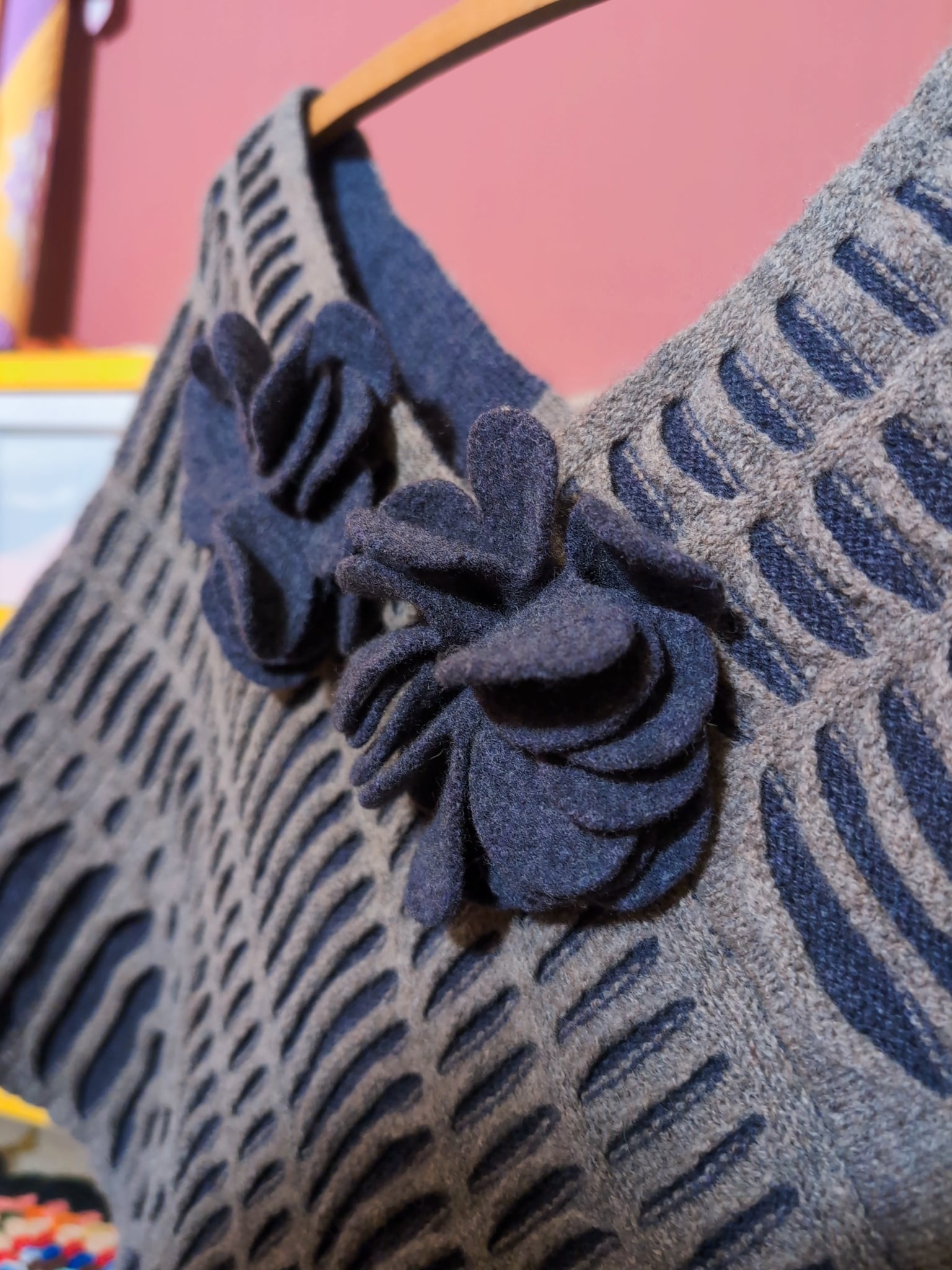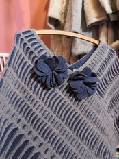 カットワークが可愛いテキスタイルに、ボリュームのある立体的なお花が可愛い一着。