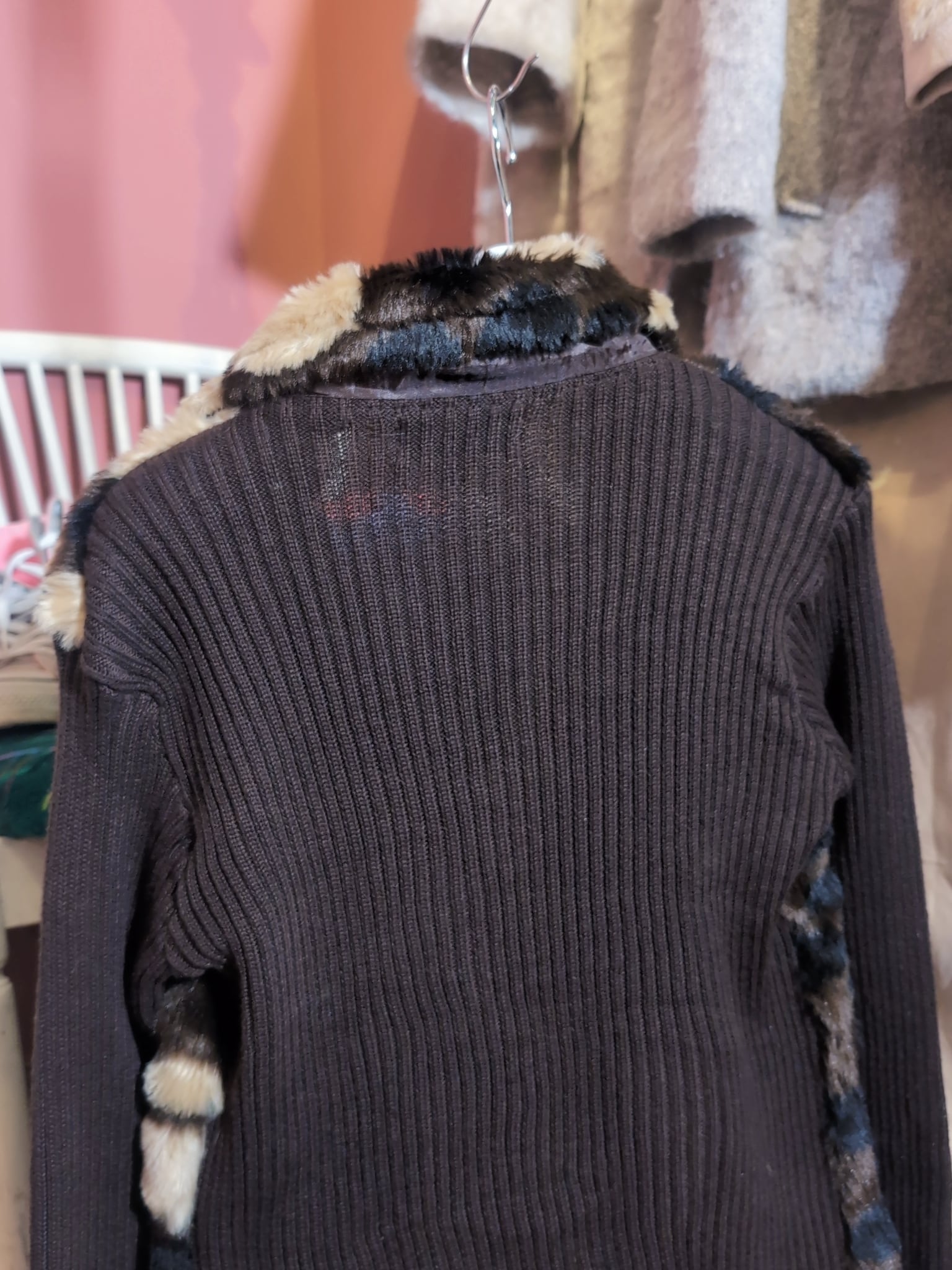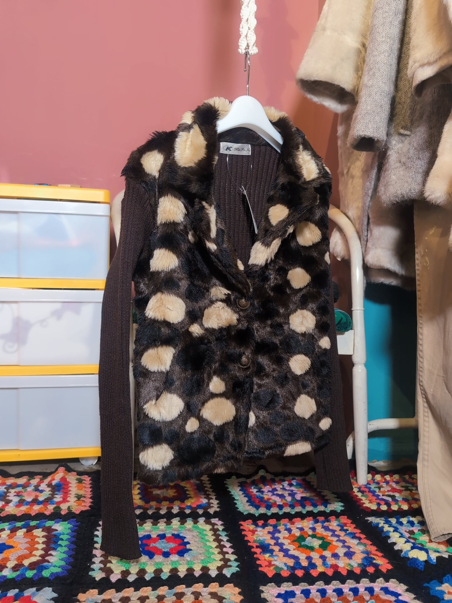 ジャケットのようなカチッとしたフロントながらも、まだら模様のフェイクファーとリブニットがとっても可愛い一着。リブニット部分は伸縮性も高く、ファーもボリュームが少ないためジャストなサイズの絶妙なバランスなのが魅力的。