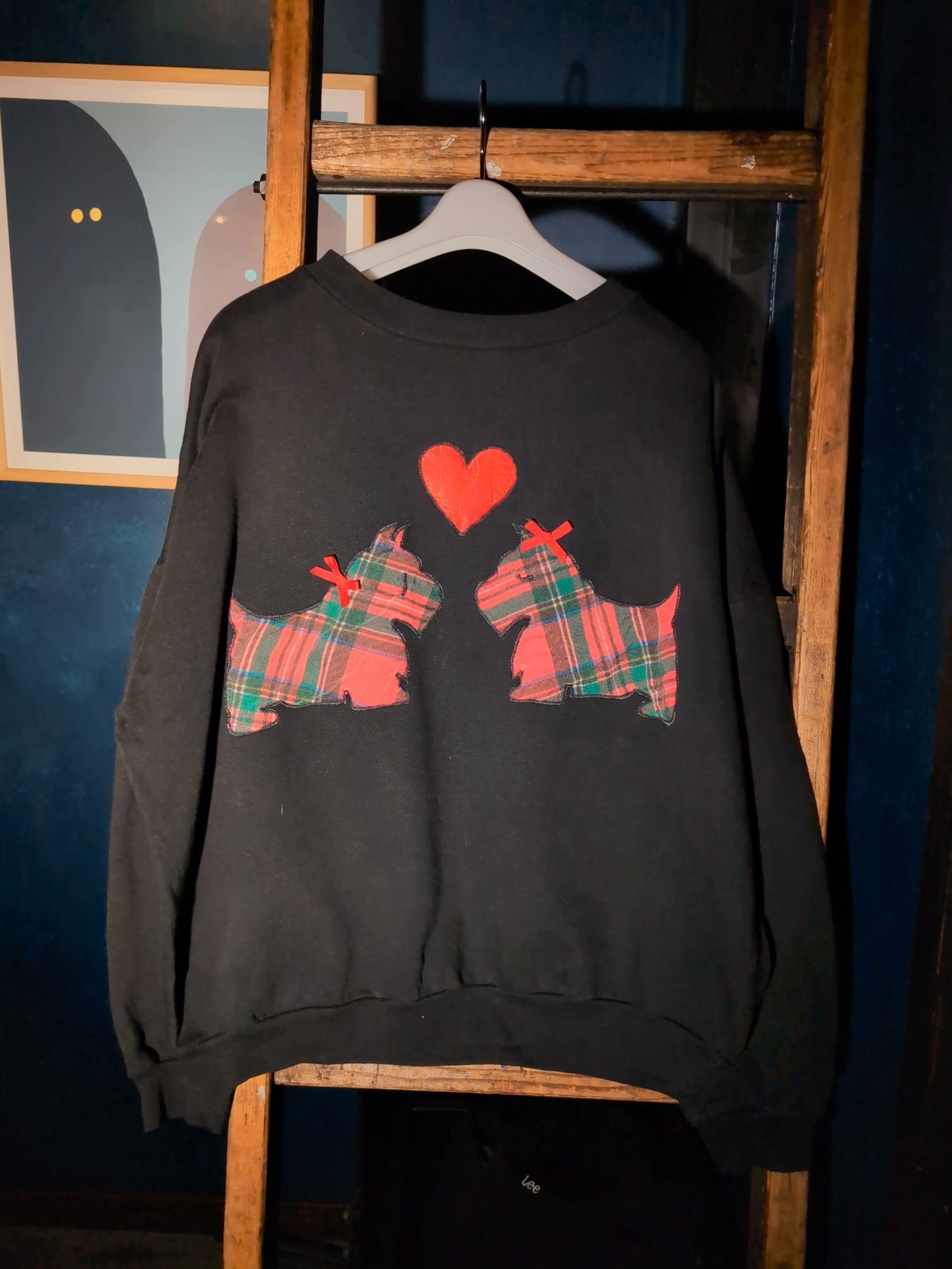 可愛らしいワンちゃんのシルエットのチェック、ラブリーなハート、可愛らしいチョコンとしたリボンでキュートに飾られた1着です。