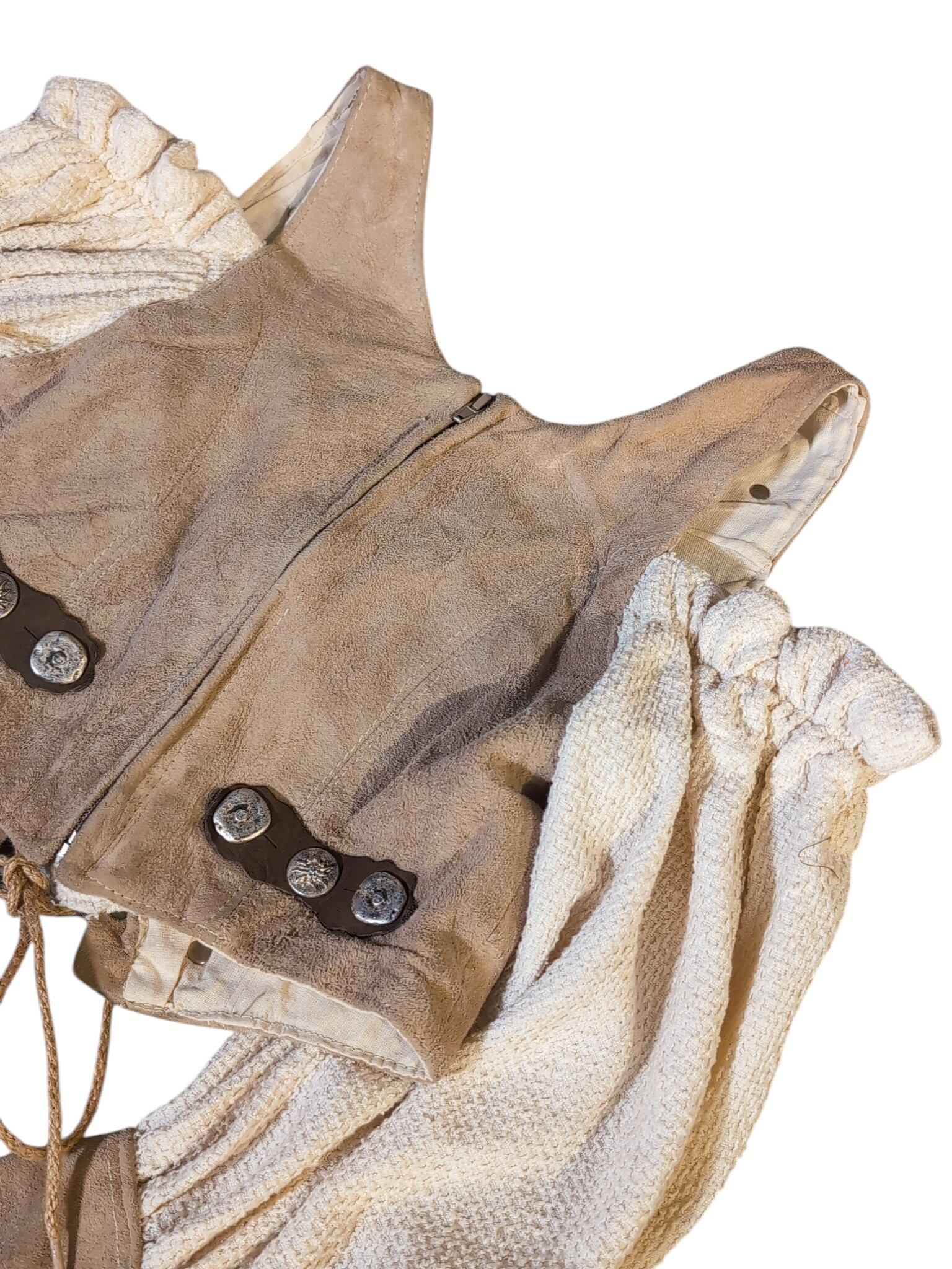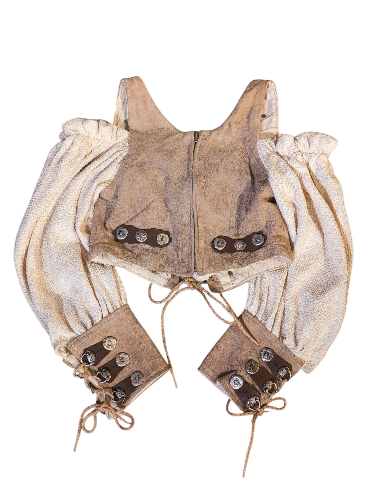 ビスチェ部分はさることながらリネンのボリュームたっぷりのアーム、豪華な刺繍と装飾が非常に贅沢な雰囲気。