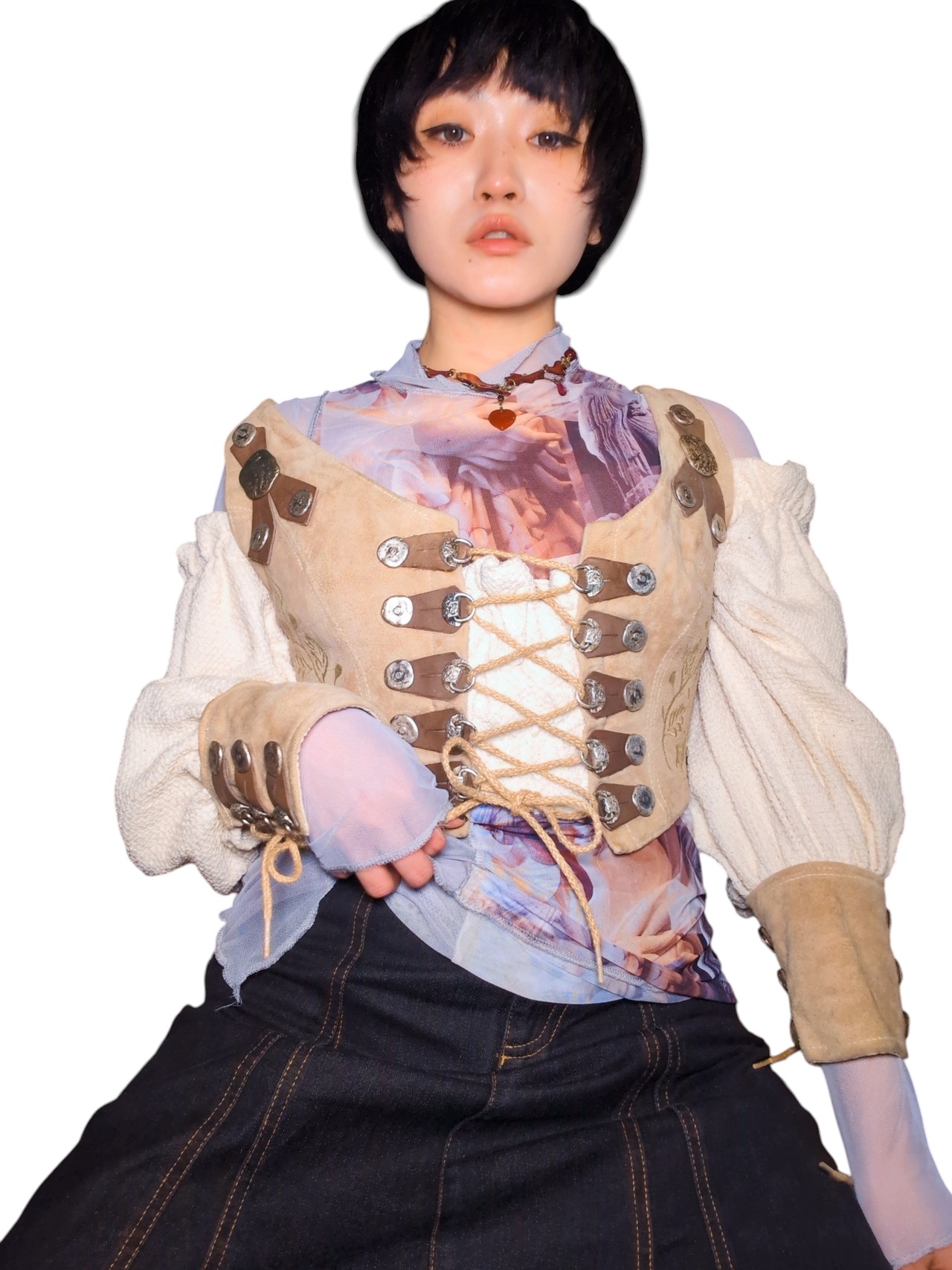 キャミソールのうえにオンしたり、ロンT、パワーネットトップスなどとのレイヤードも面白い。ディアンドルドレスなども好きですがトップスだとより遊びが増えてこれもまたいいなぁ。