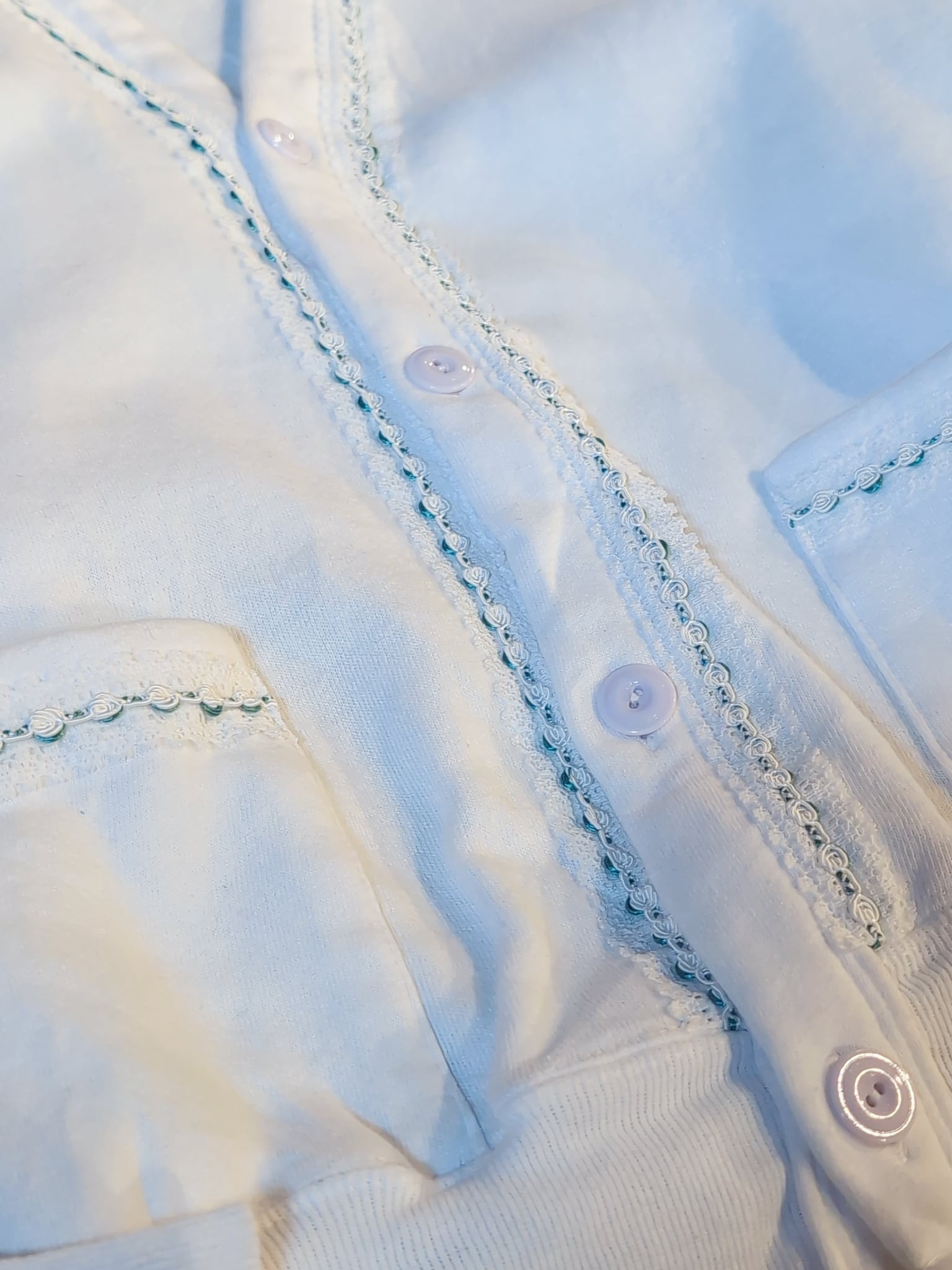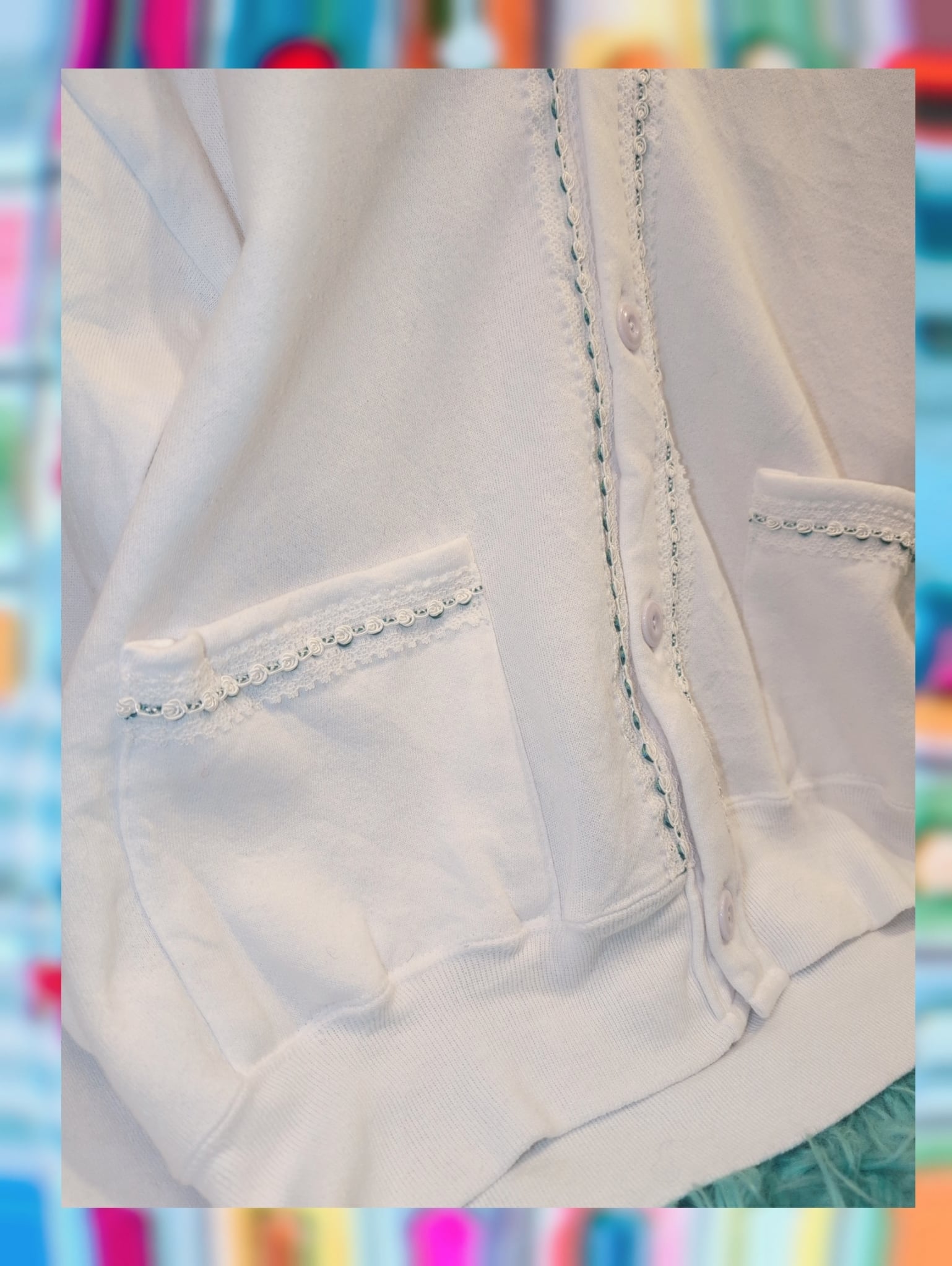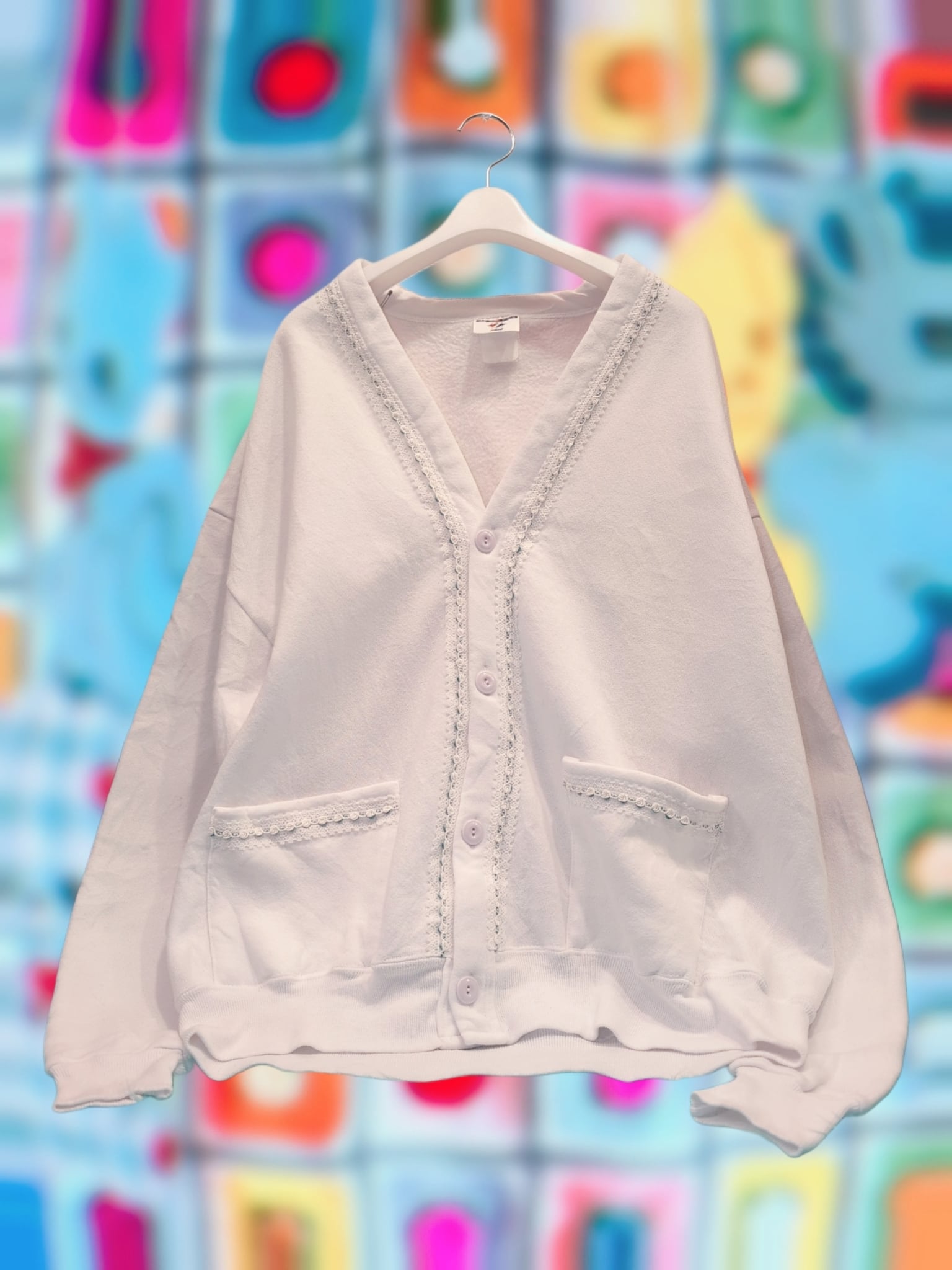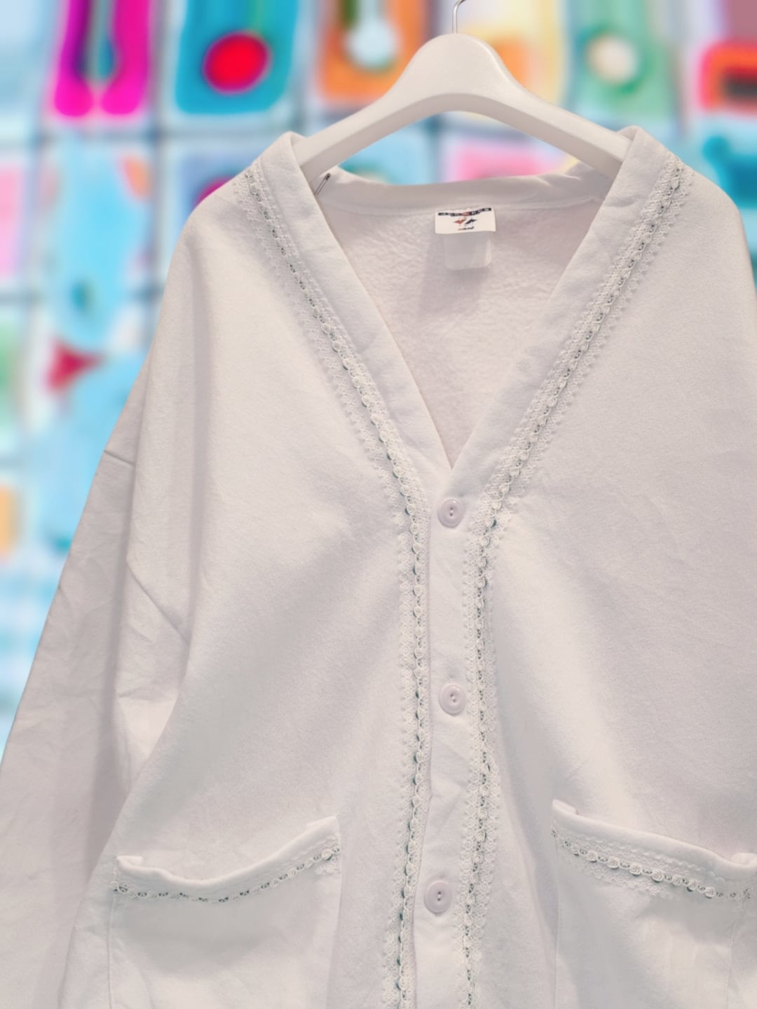 大きいサイズ、スッキリとしたホワイトのカラーリング×レースと可愛いボタンが絶妙。