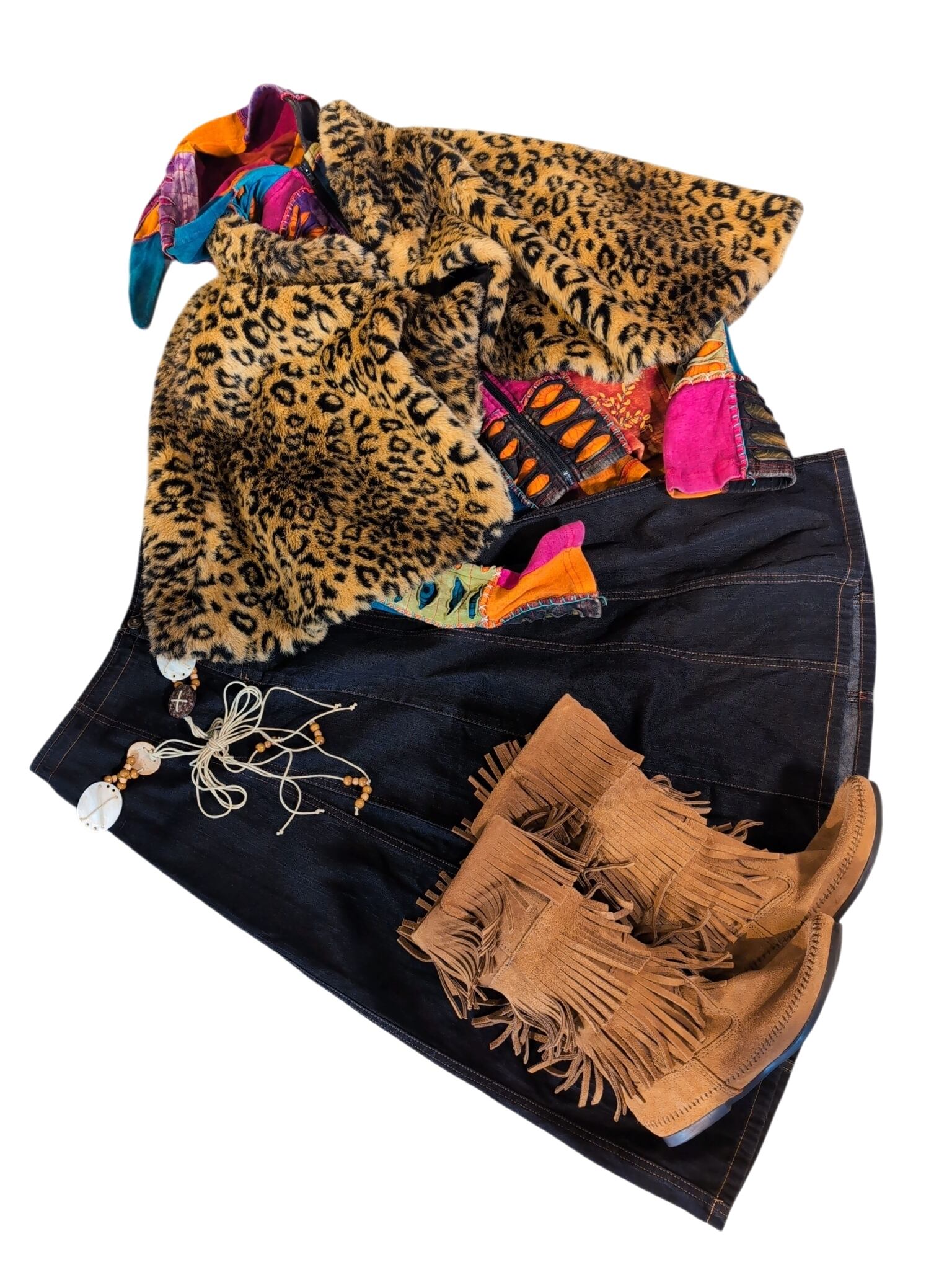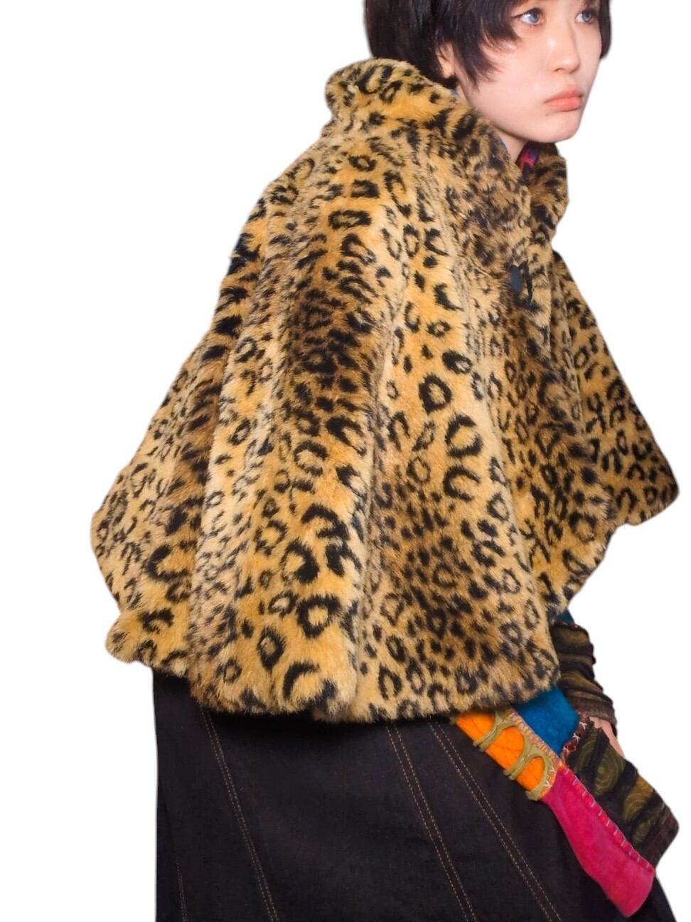 レオパード柄のケープ。フェイクファーのポワンとした厚み×たっぷりとしたフレアなラインと柔らかい形の組み合わせが非常に可愛い1着です。
