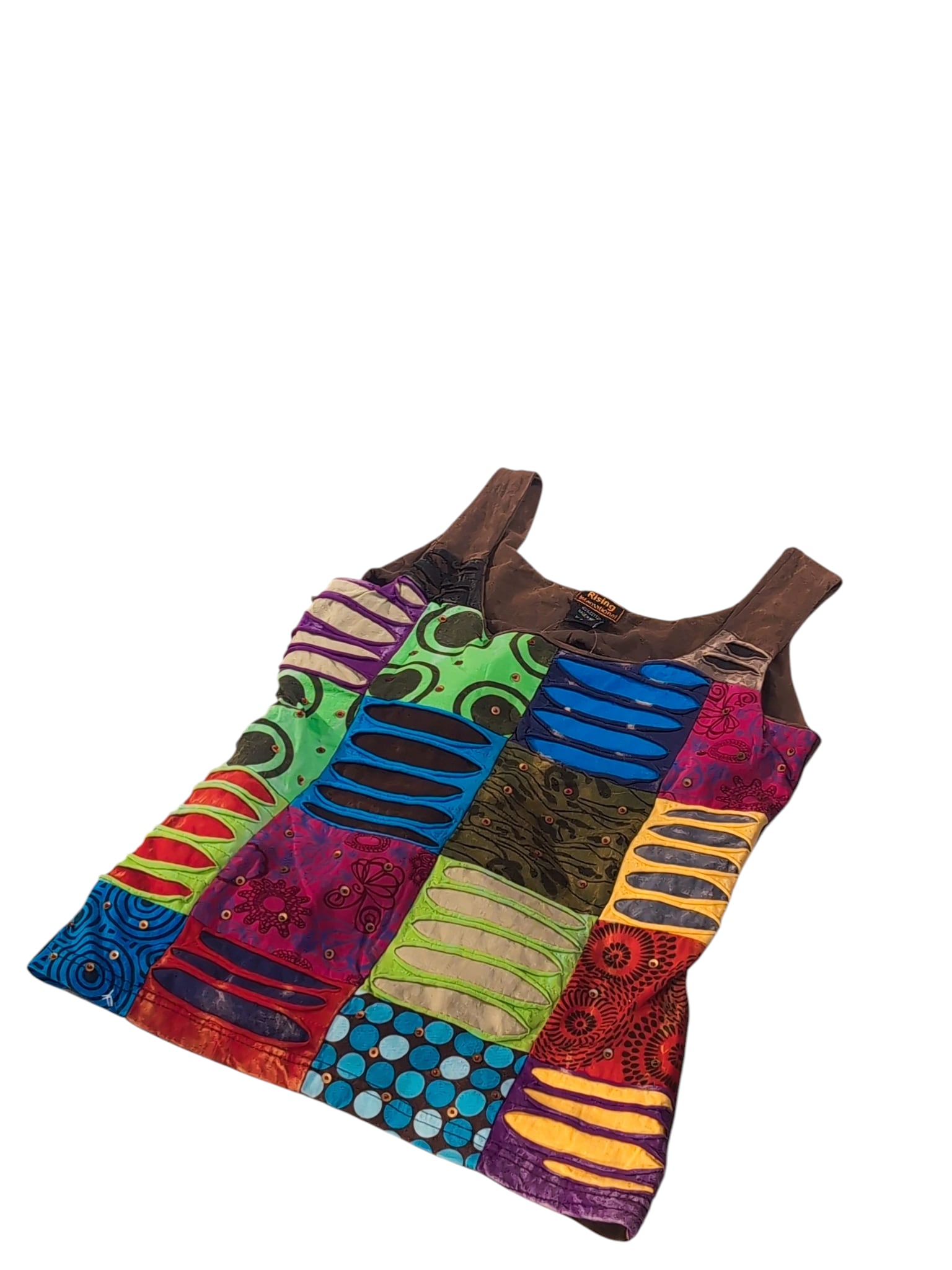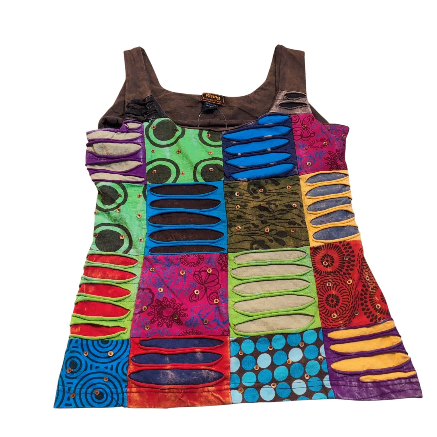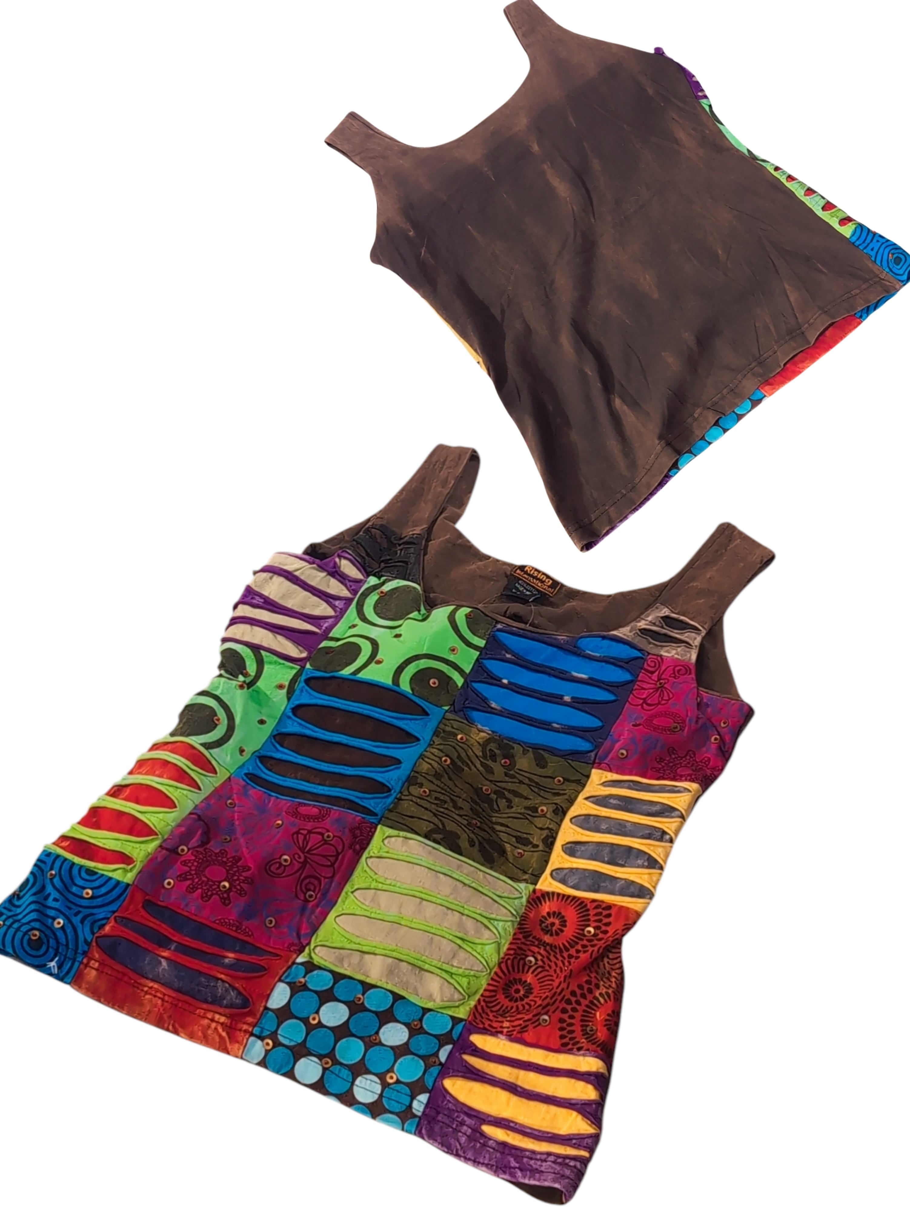 ネパールのパッチワークアイテムは好きで、パーカーをよく入荷するのですが…タンクトップもいいじゃん。