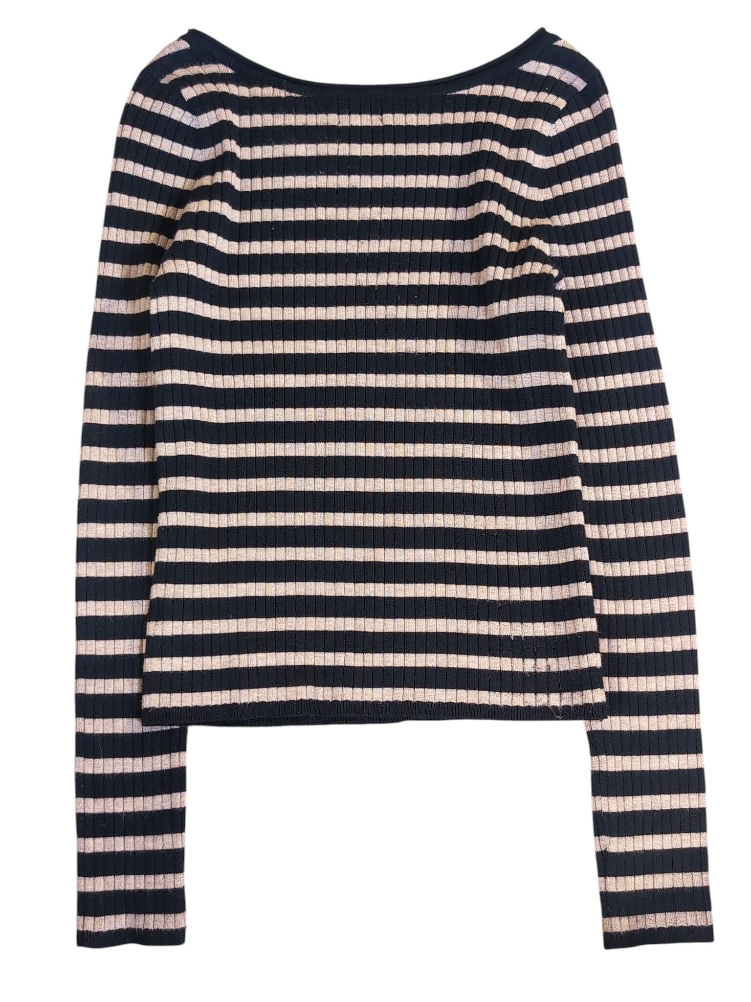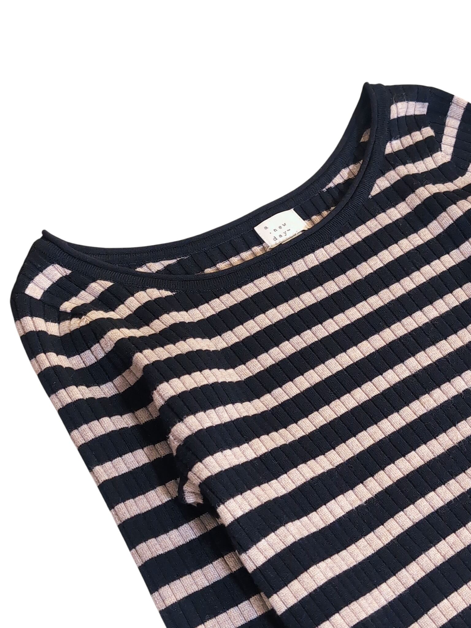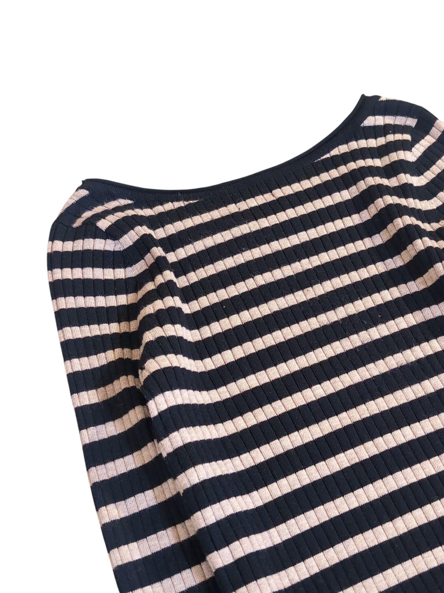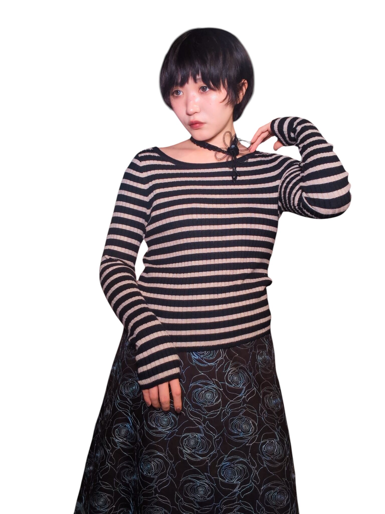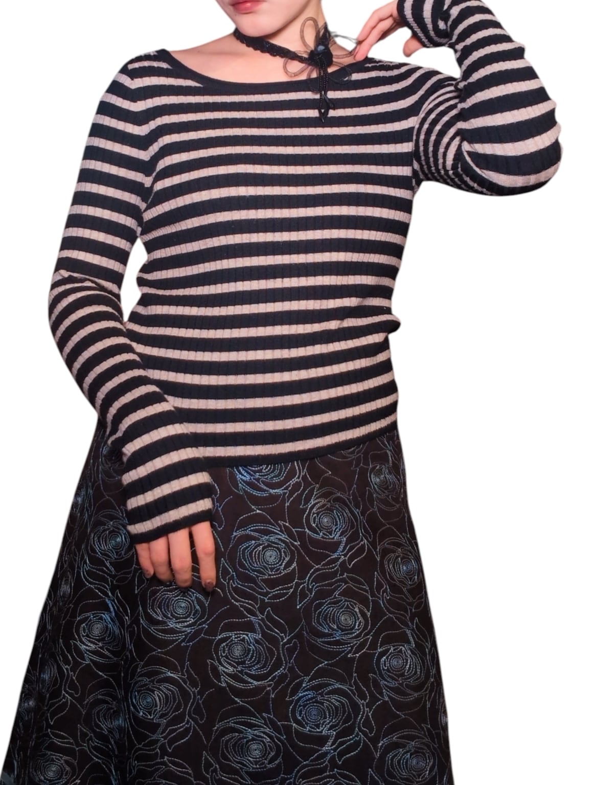 伸縮性がありカジュアルでありながらも、どこか女性らしさのあるデザイン。浅くラウンドした襟元が素敵です。