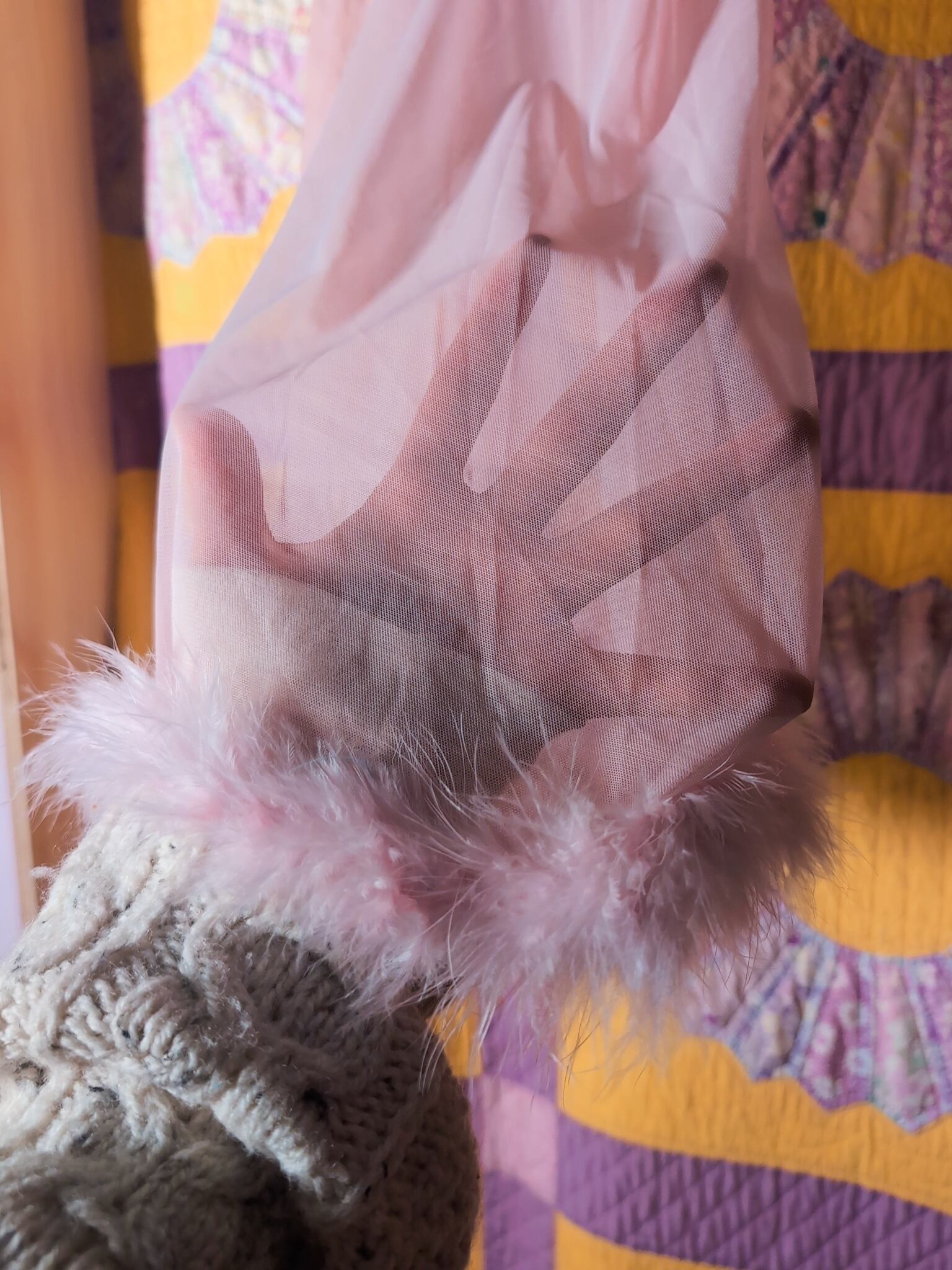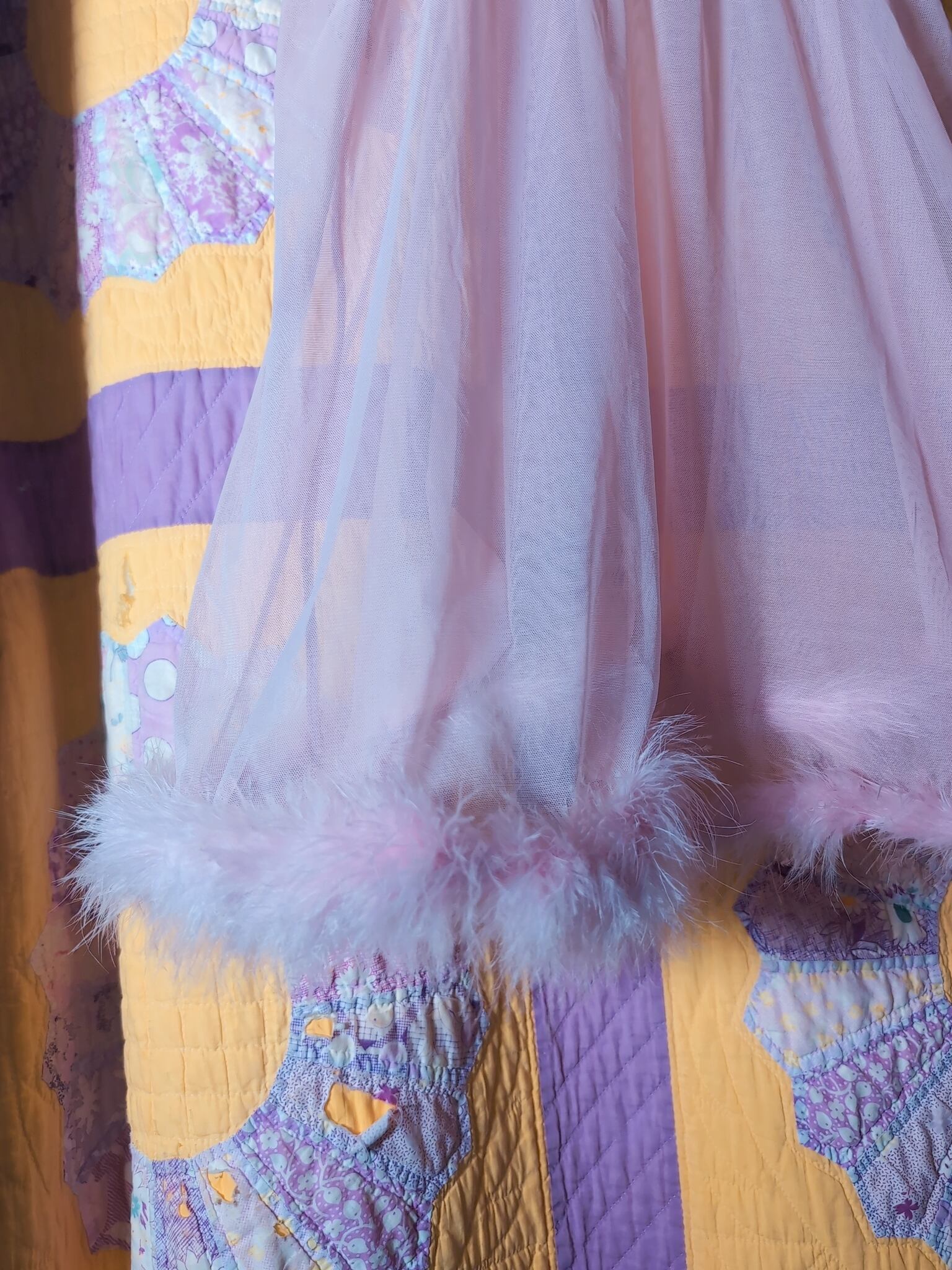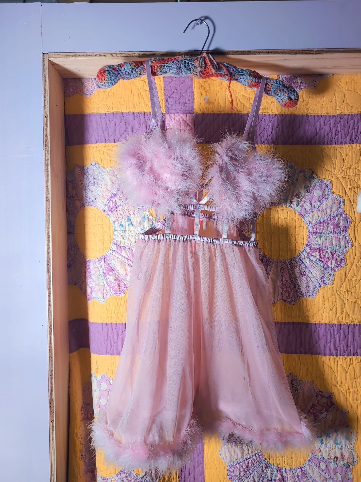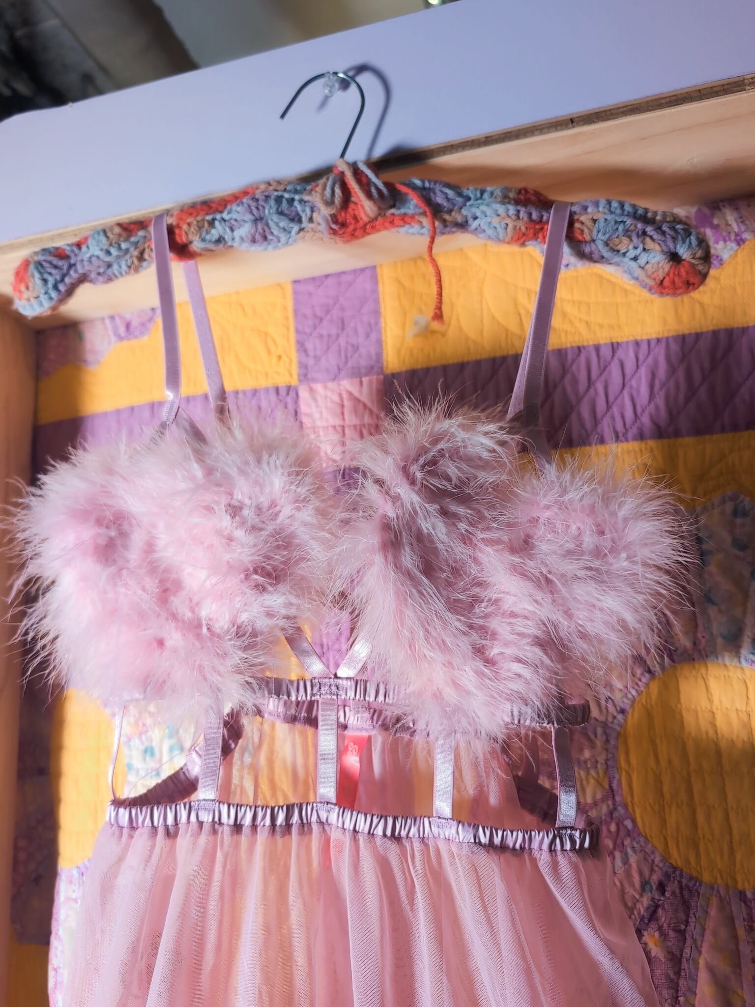 フェザー、みぞおちのデザイン、何よりもハートのモチーフってのが最高に可愛いです。ラブリーなカラーリング×シアー素材にもキュン。