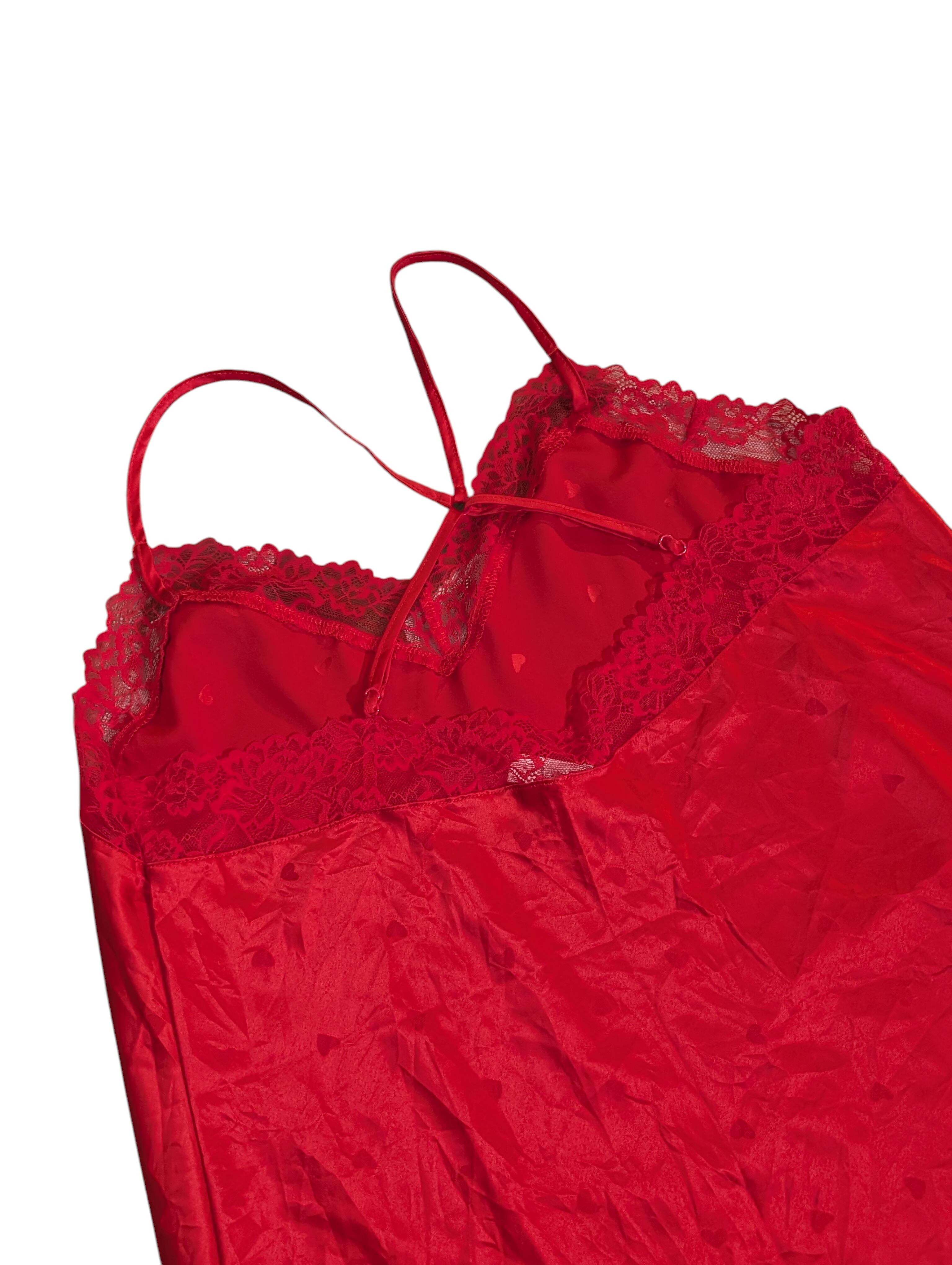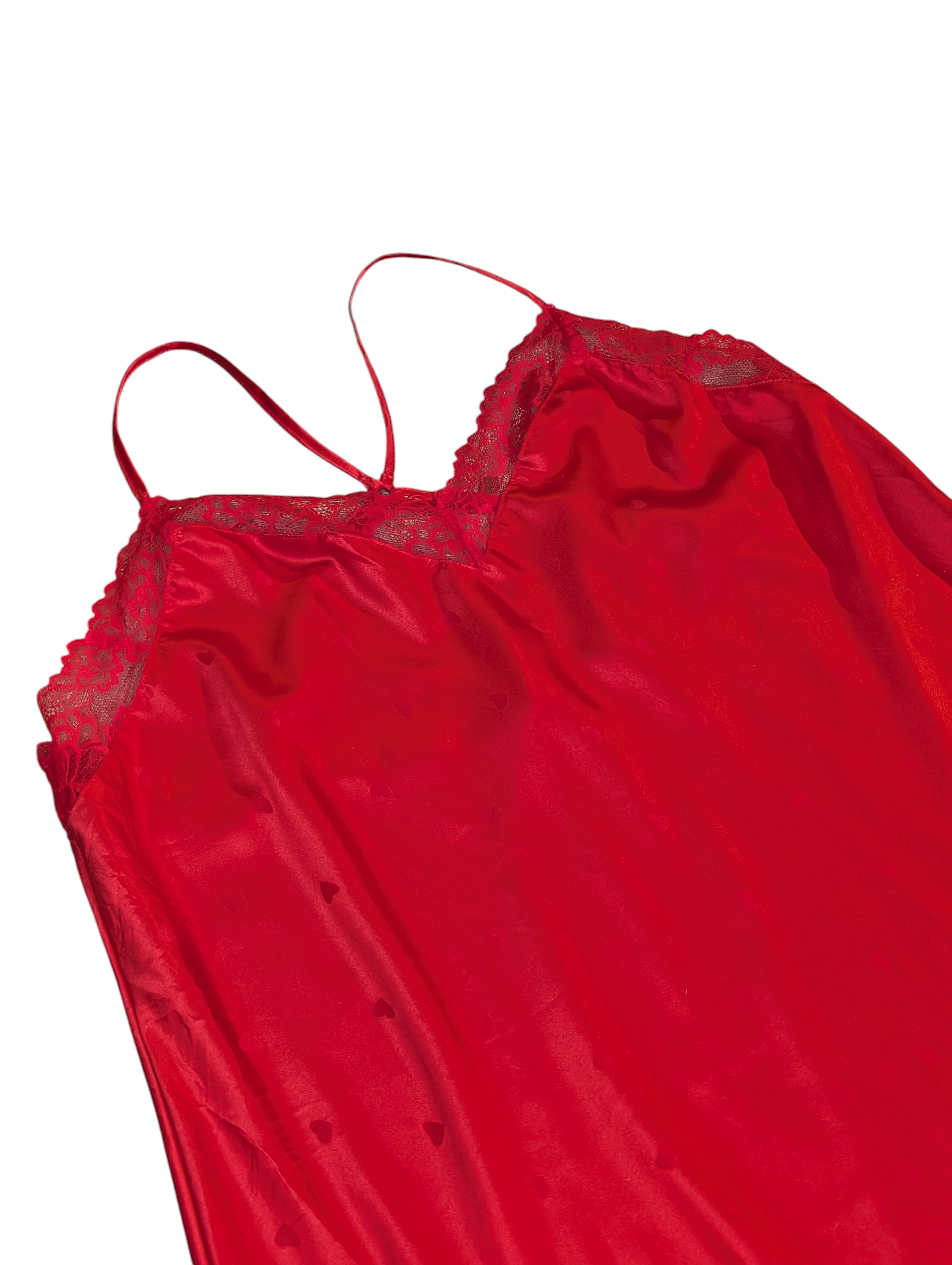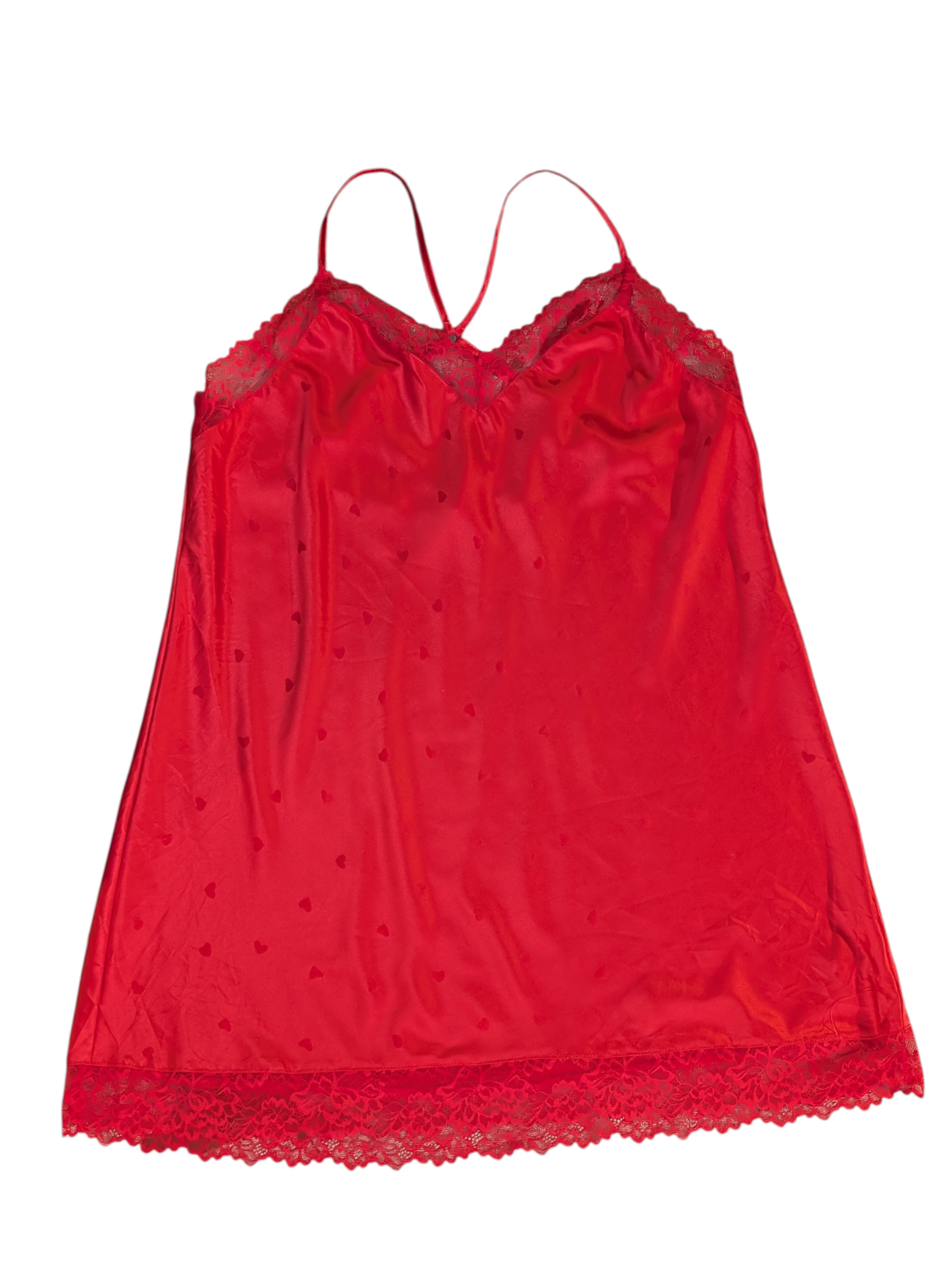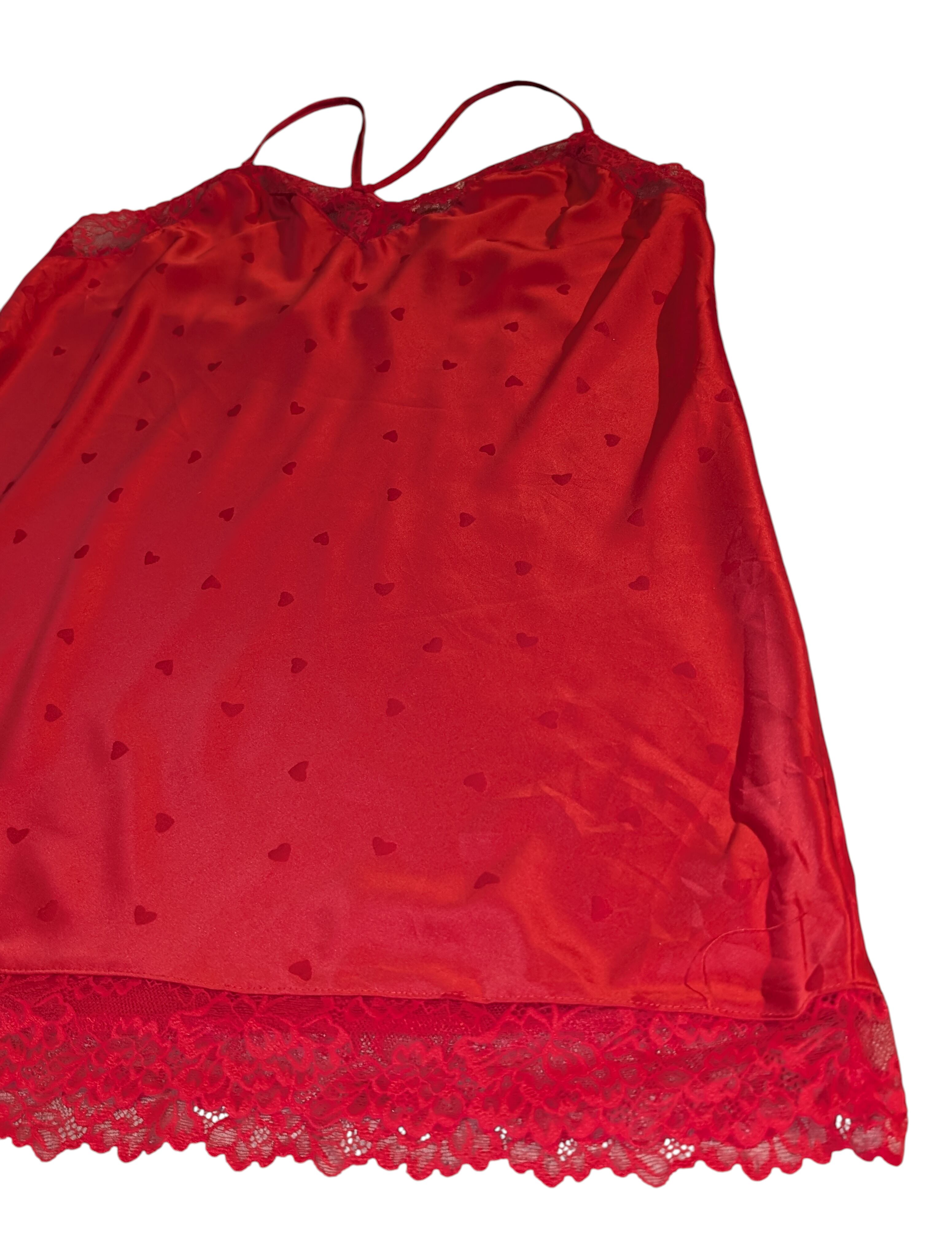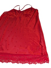 情熱的な赤とサテンが素敵。キャミソールはタイトだったり小さめなもののほうが多い印象ですがこちらはゆったりとしたサイズ感で、レイヤードのしやすさが魅力的。
