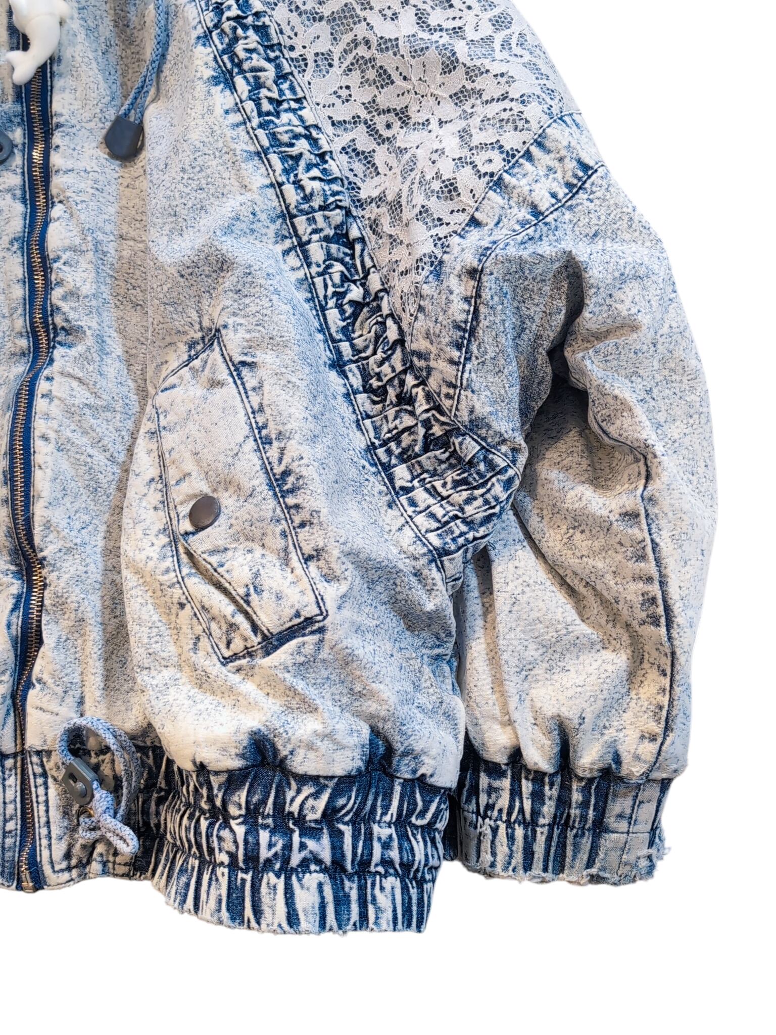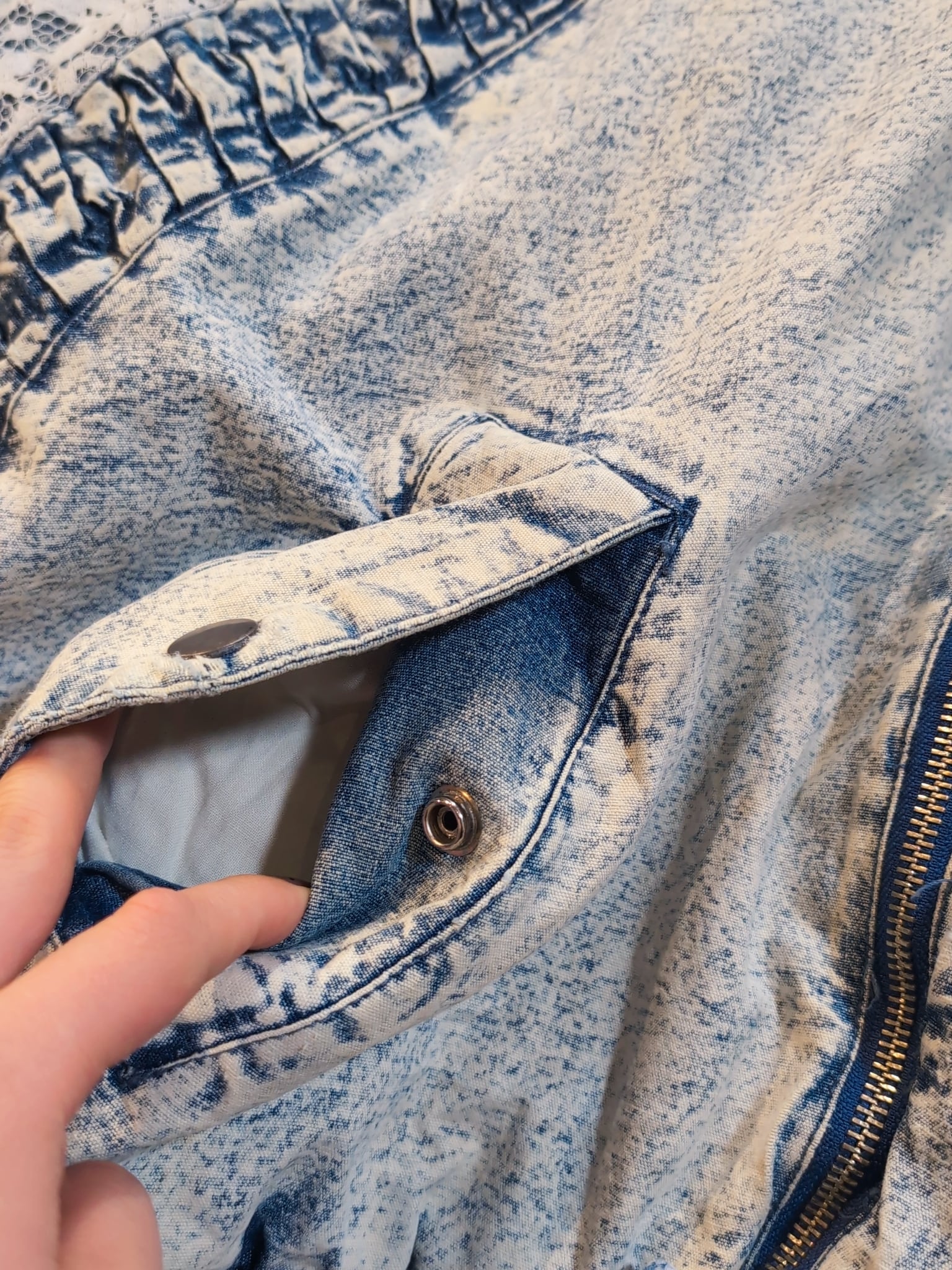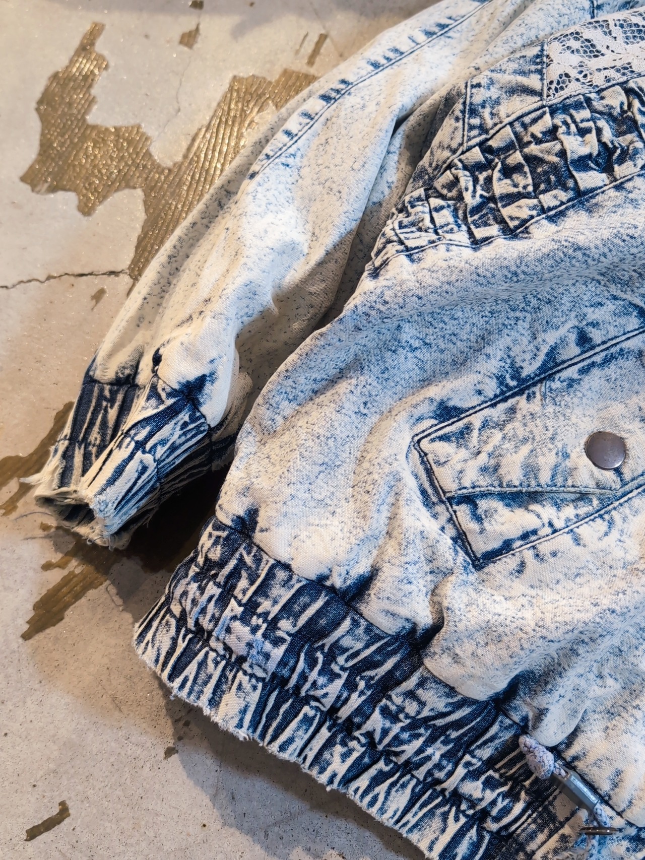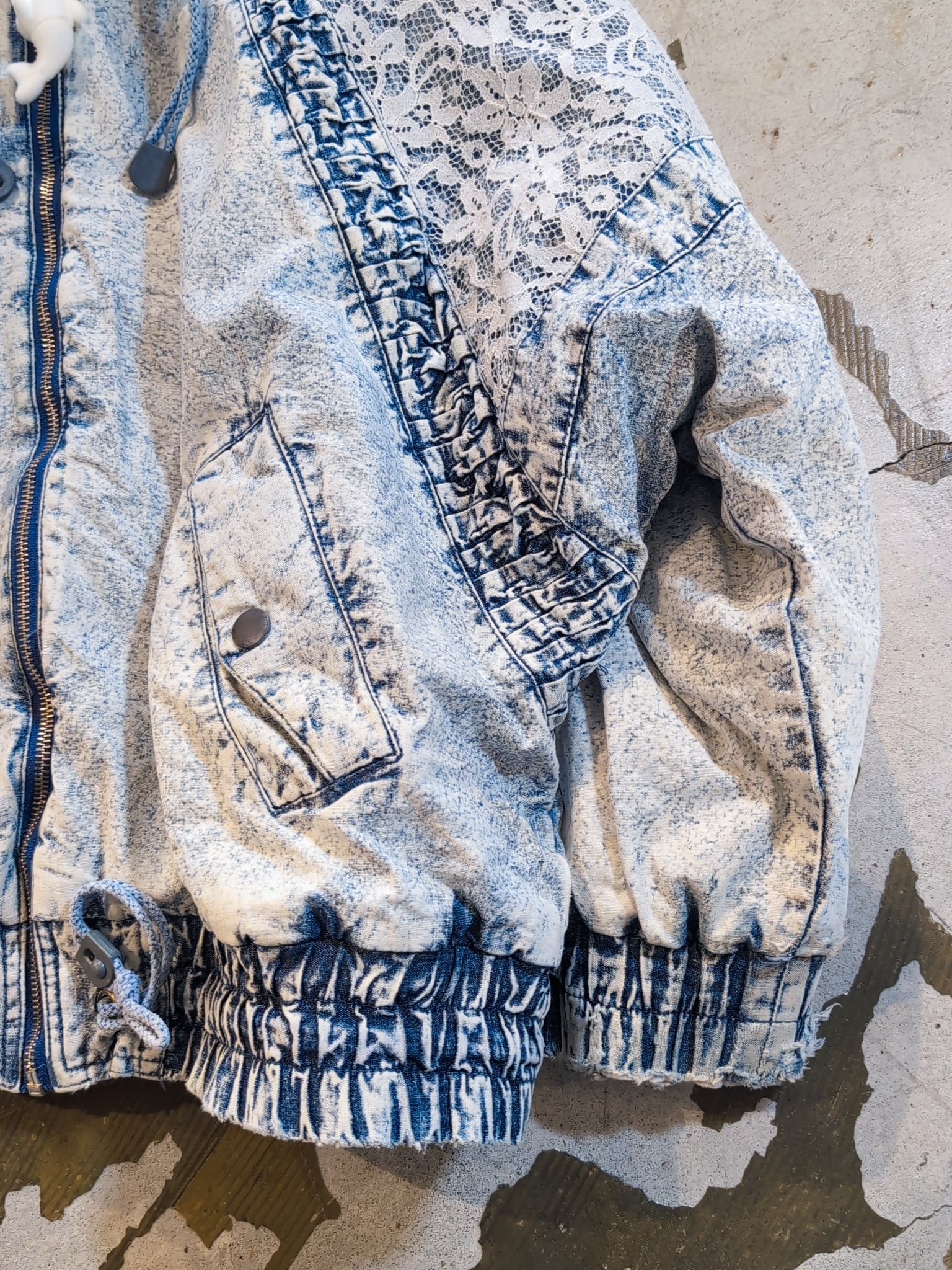 ケミカルウォッシュの古着らしい雰囲気×レースのアンバランスさが可愛い。