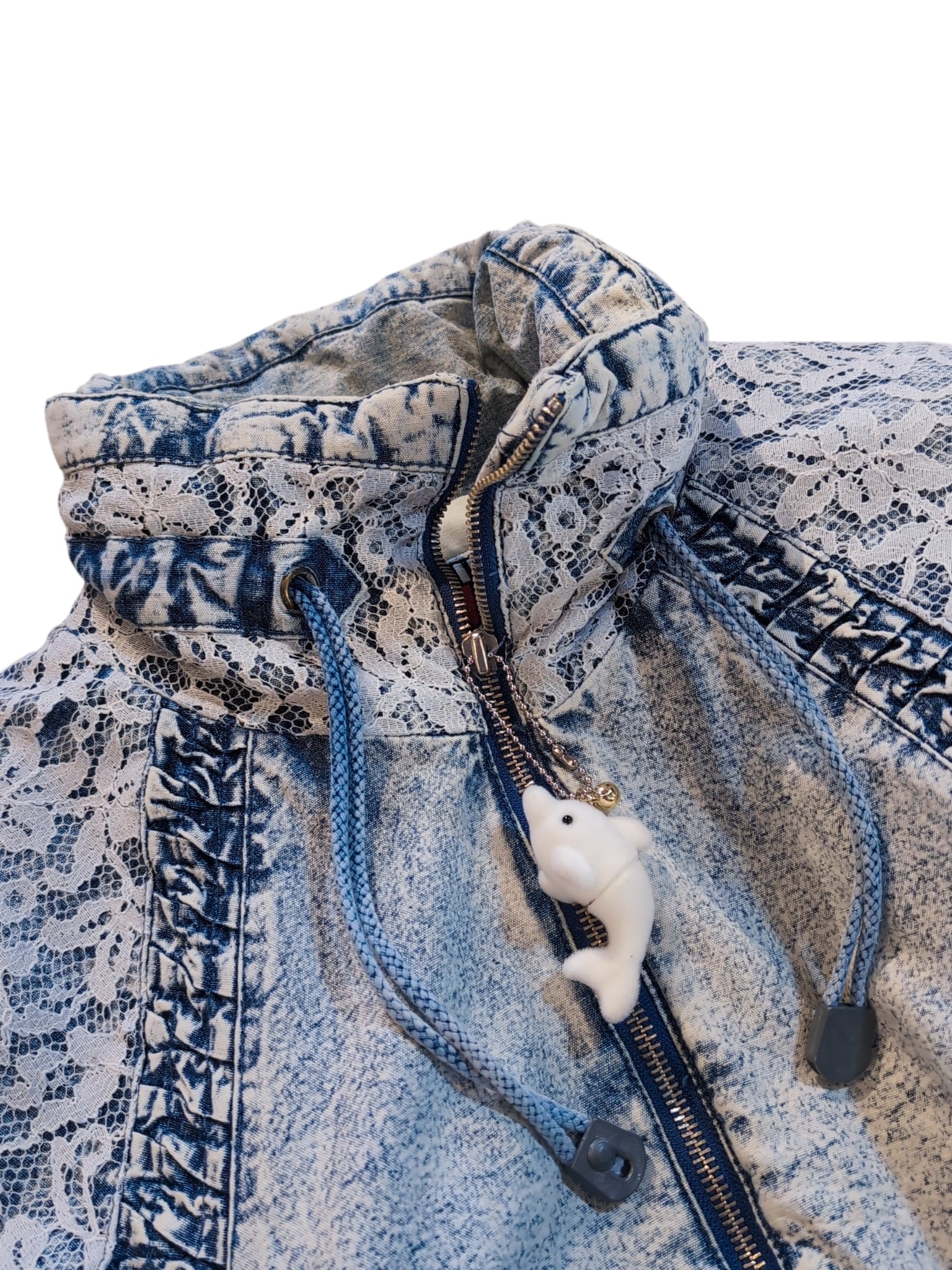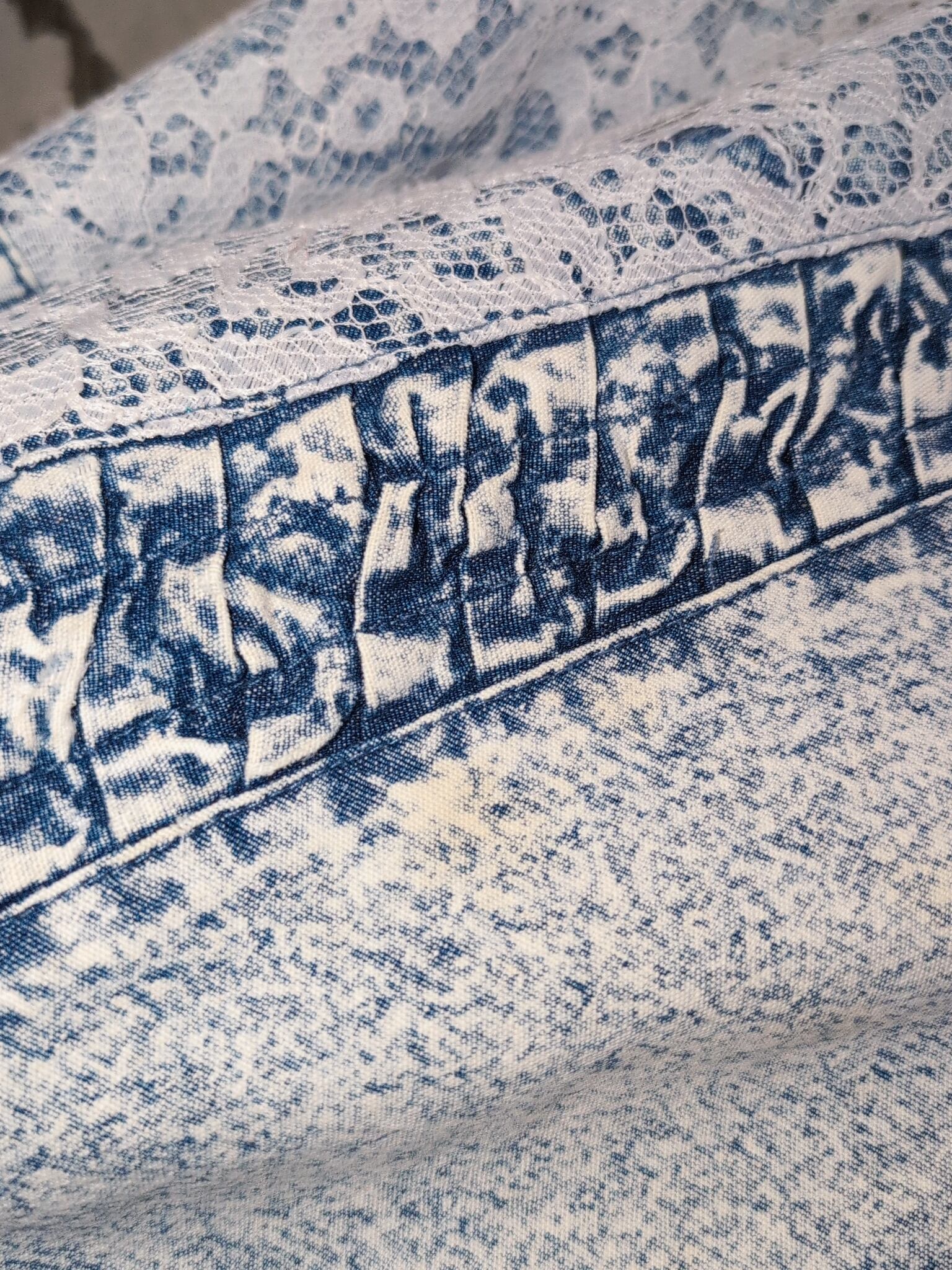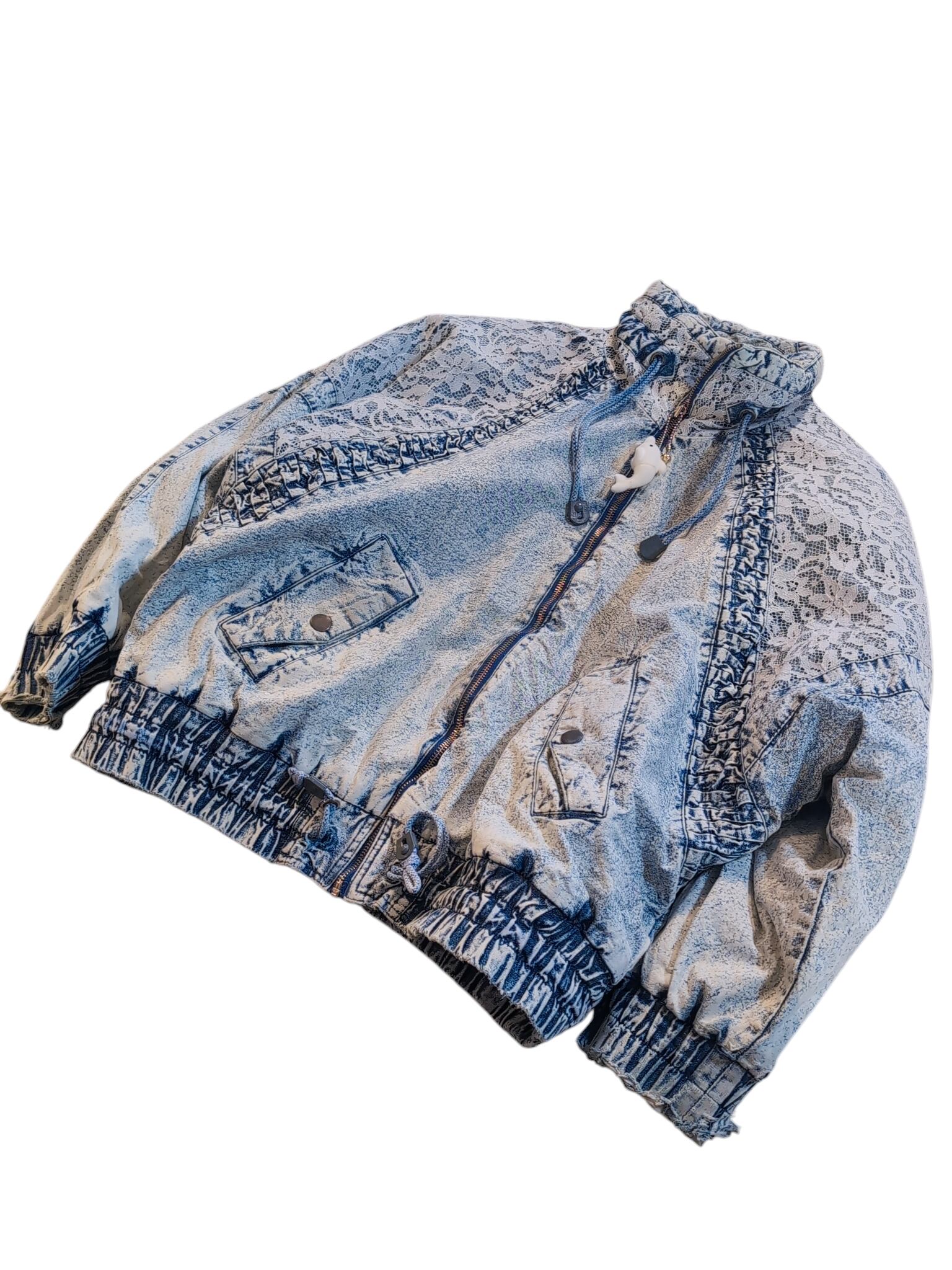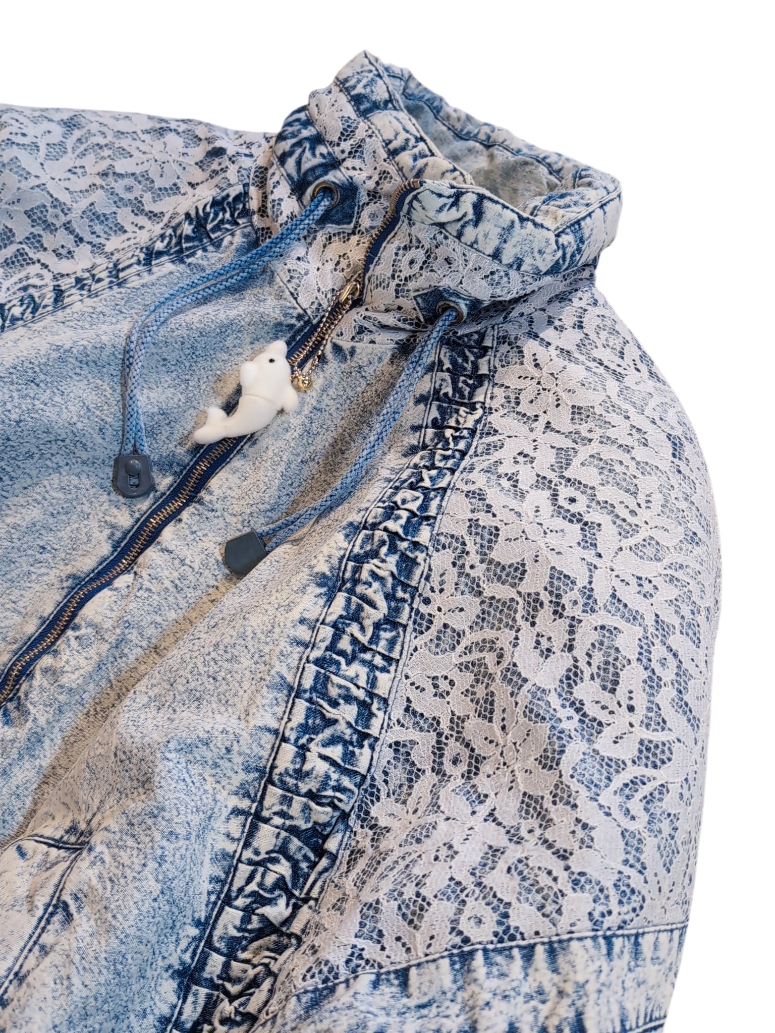ケミカルウォッシュの古着らしい雰囲気×レースのアンバランスさが可愛い。