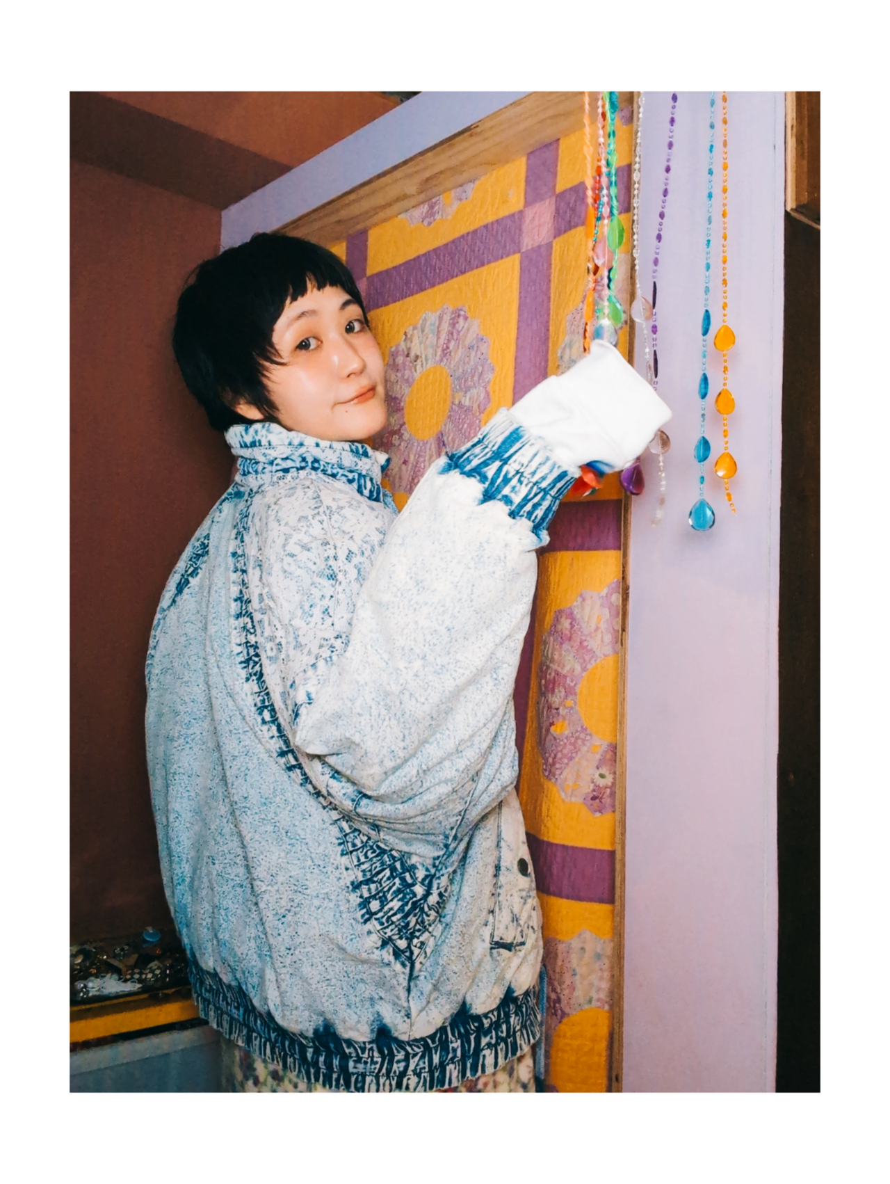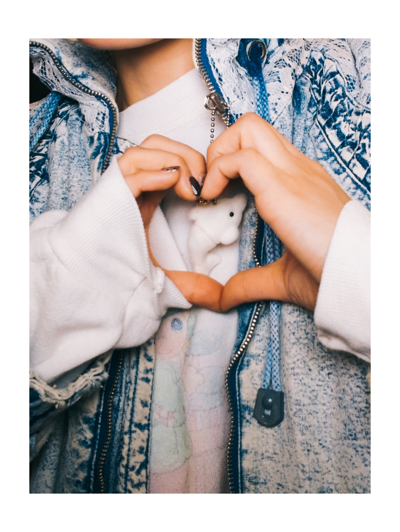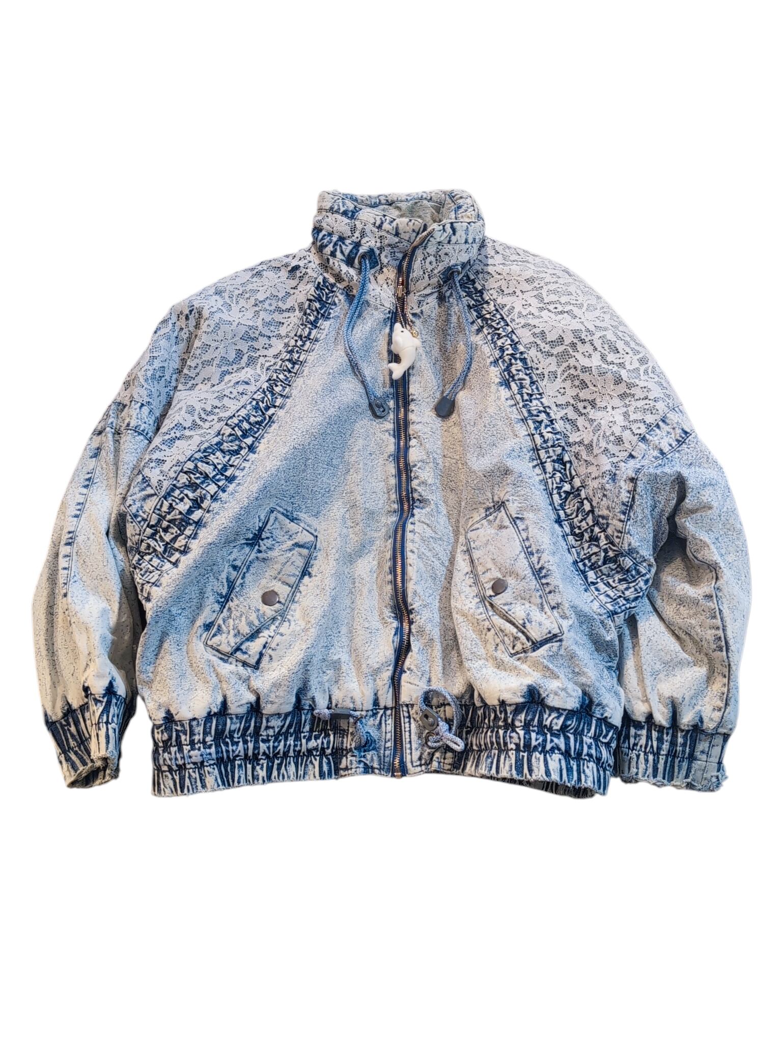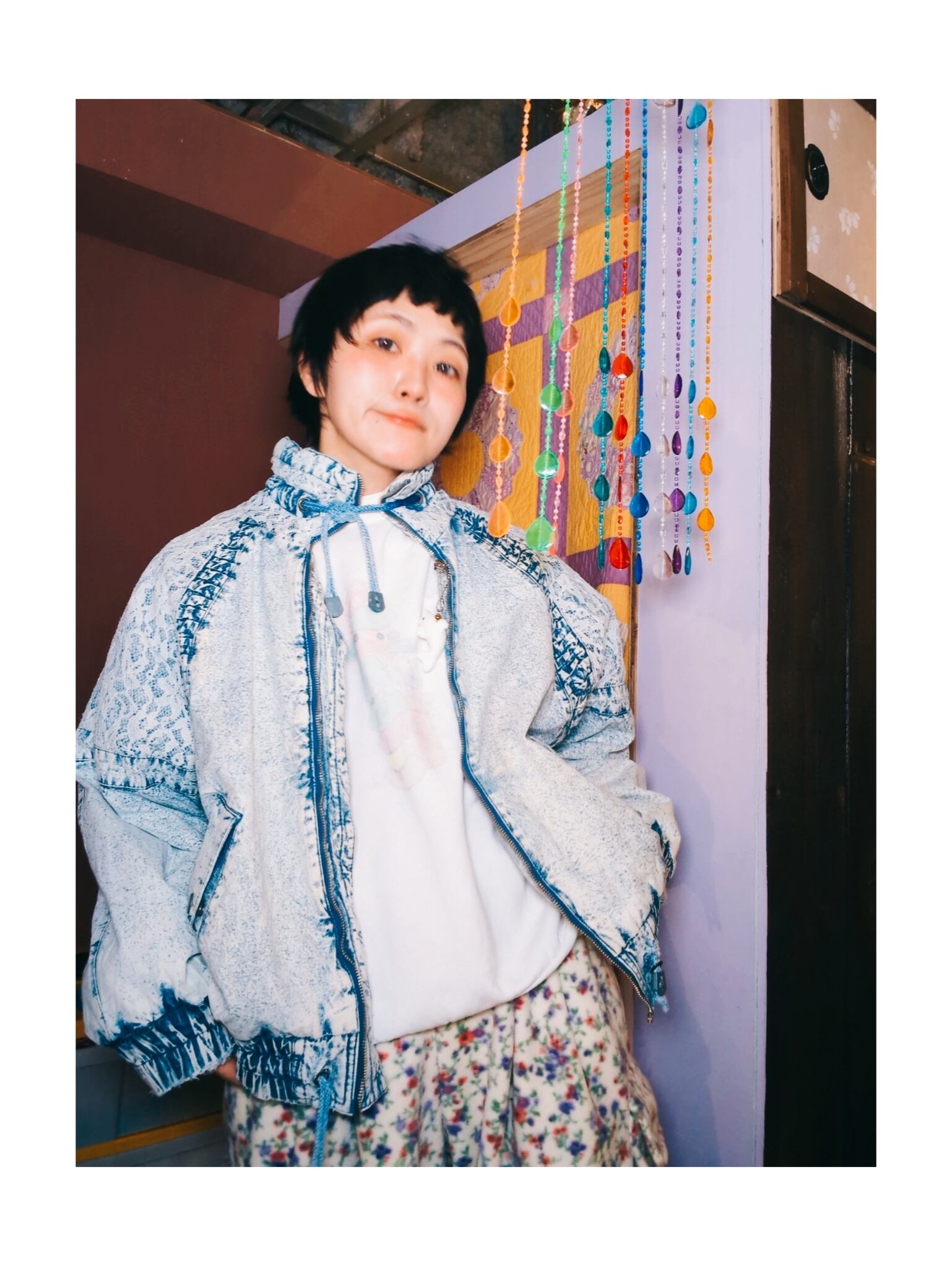 ケミカルウォッシュの古着らしい雰囲気×レースのアンバランスさが可愛い。