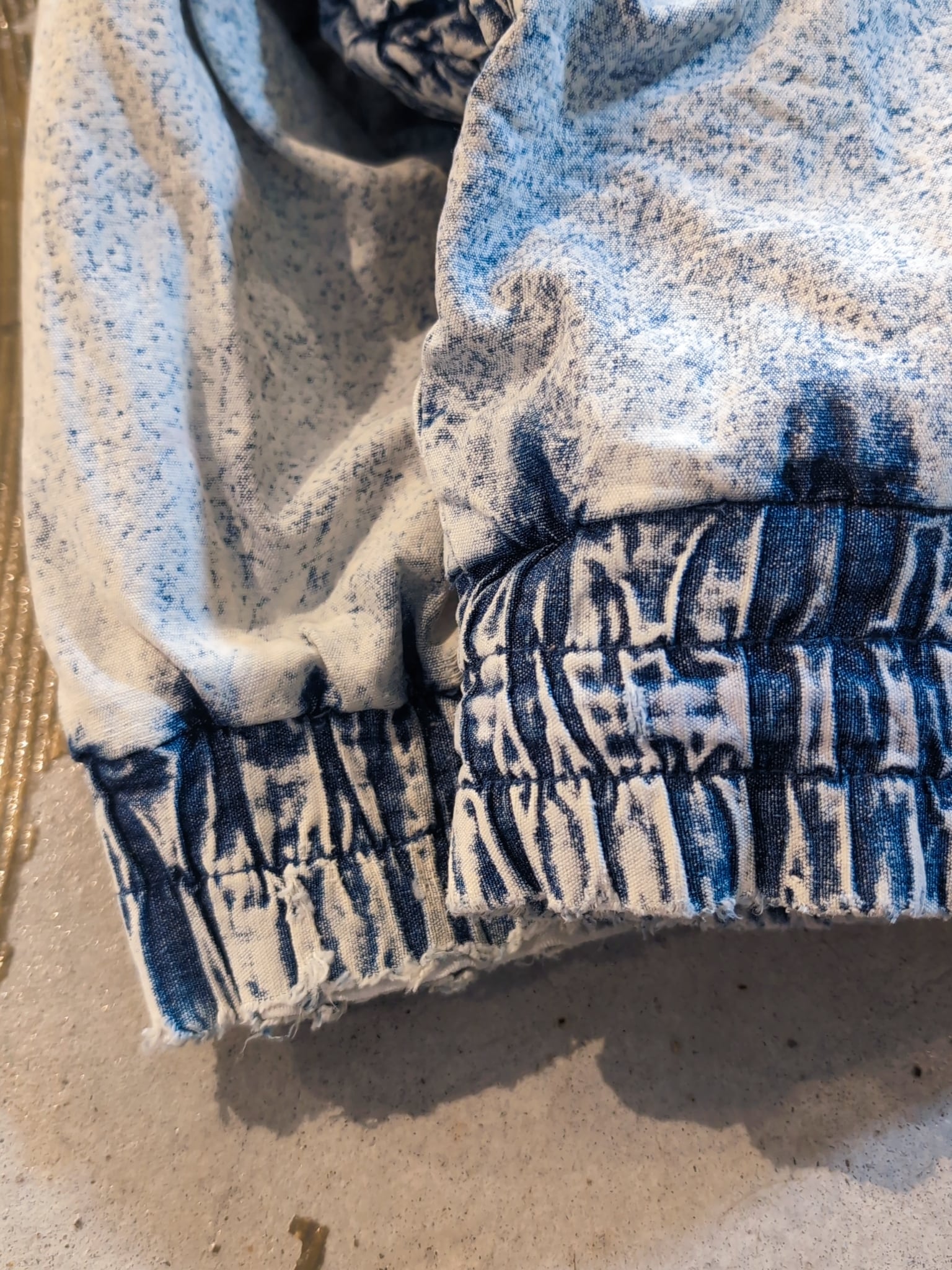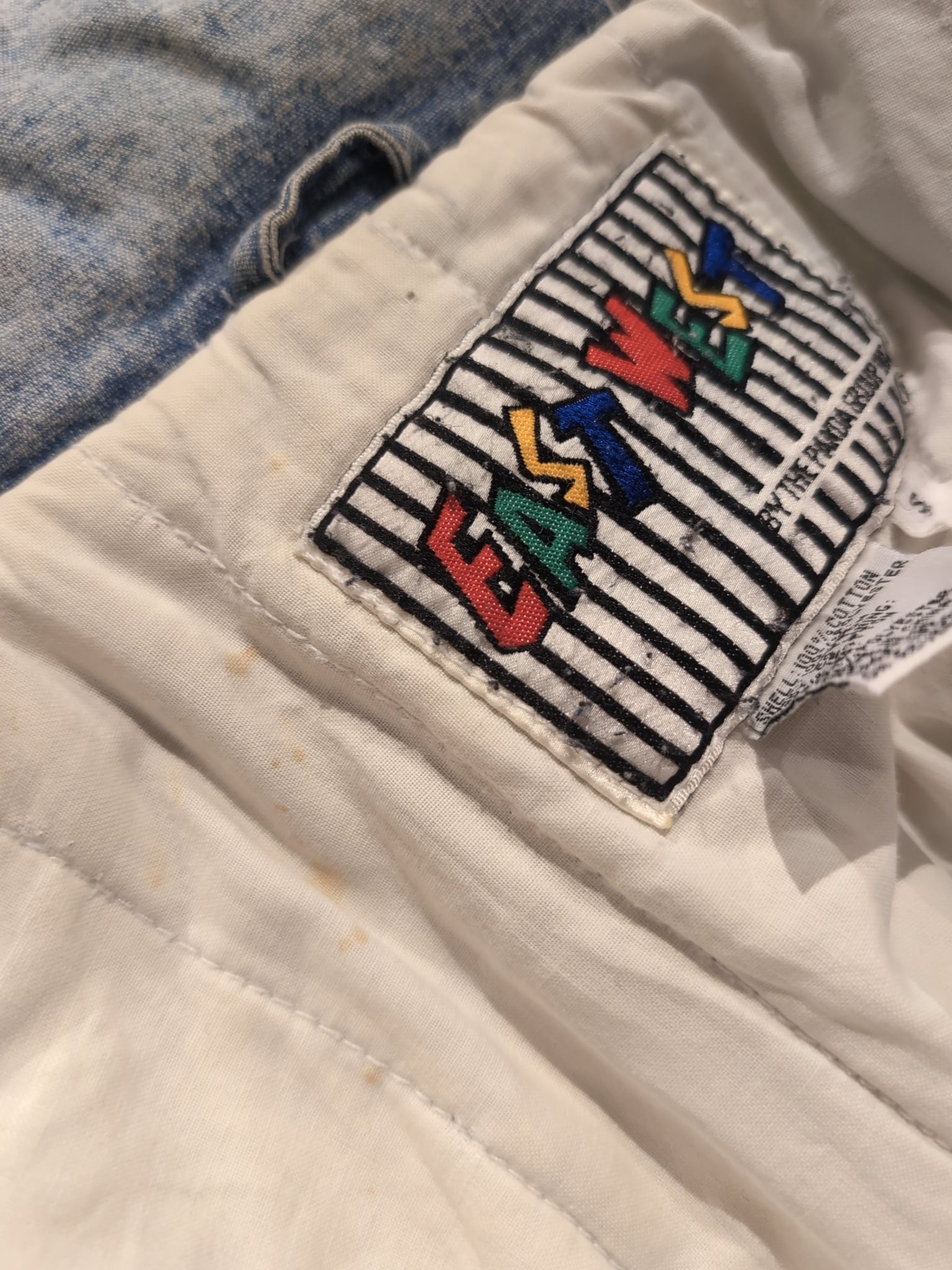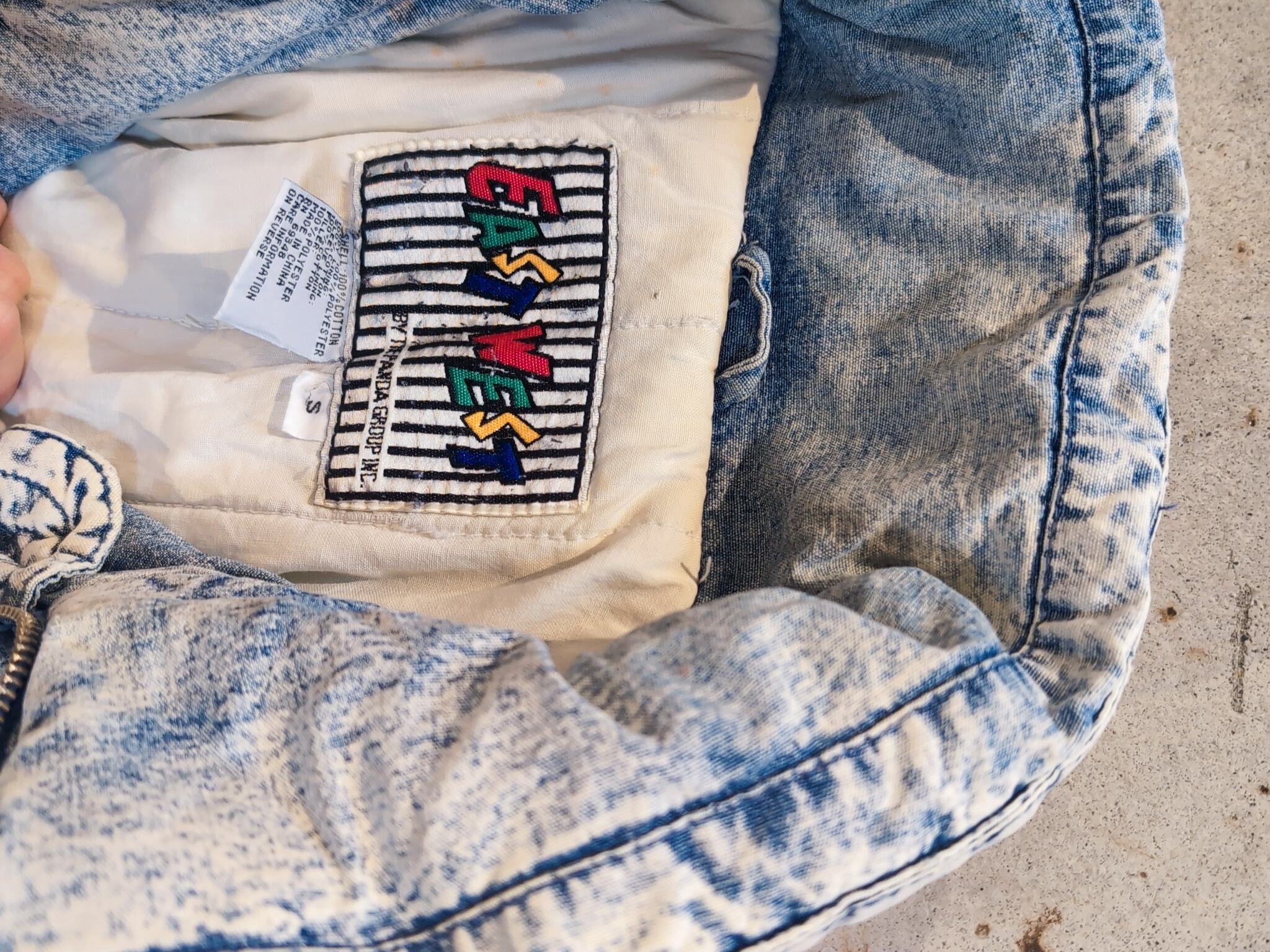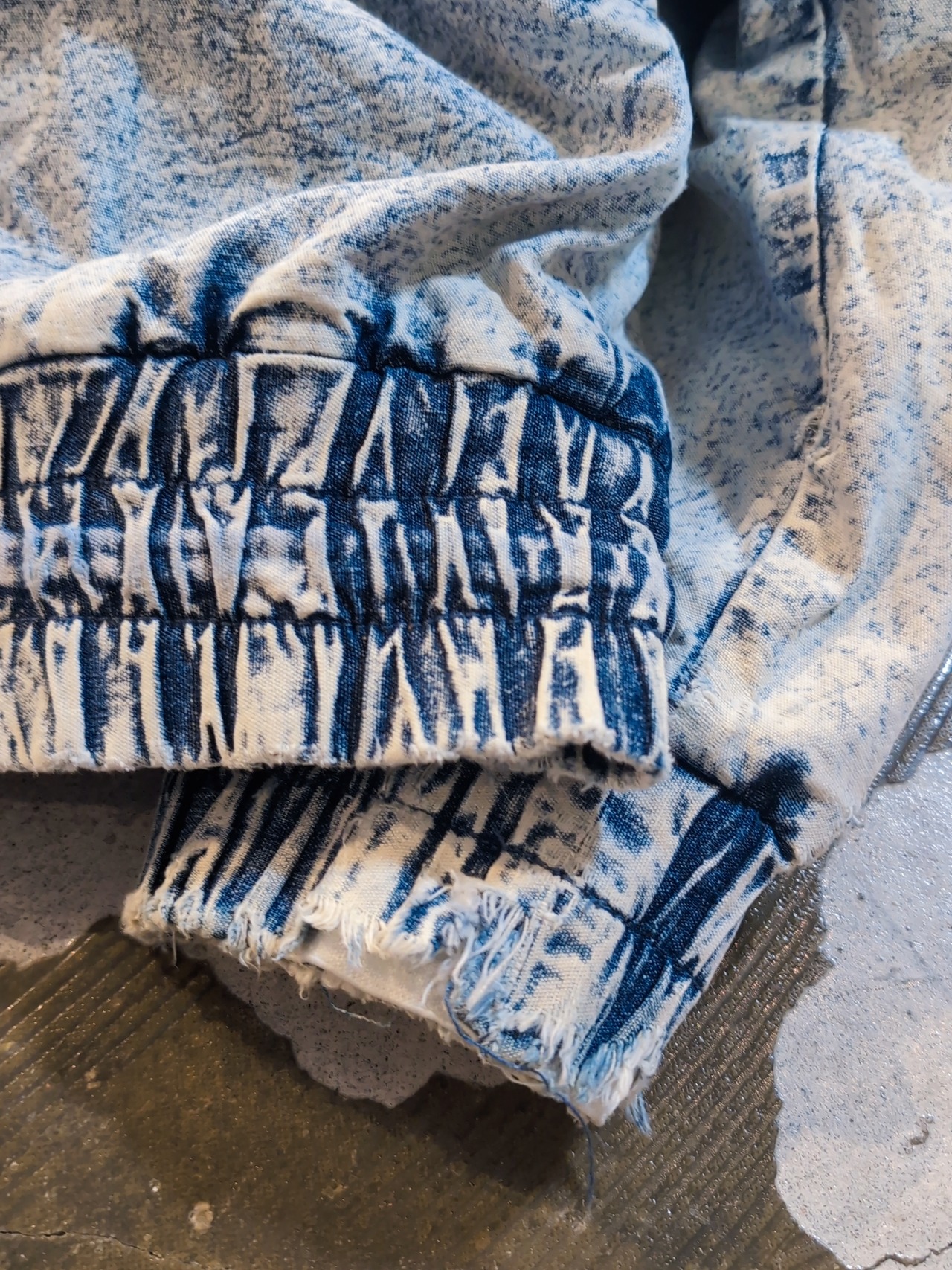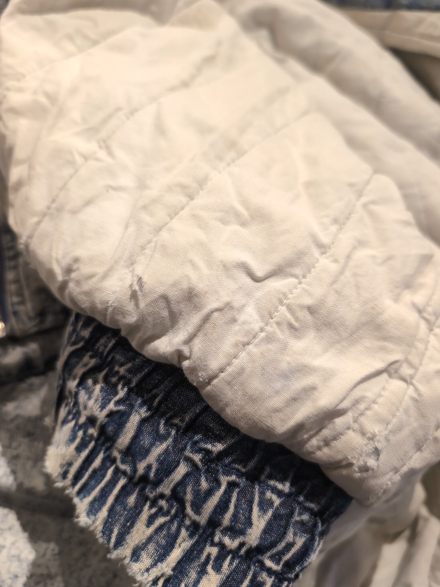 ケミカルウォッシュなので分かりにくいですが、薄っすらとしたシミ、裏地にもシミがございます。
