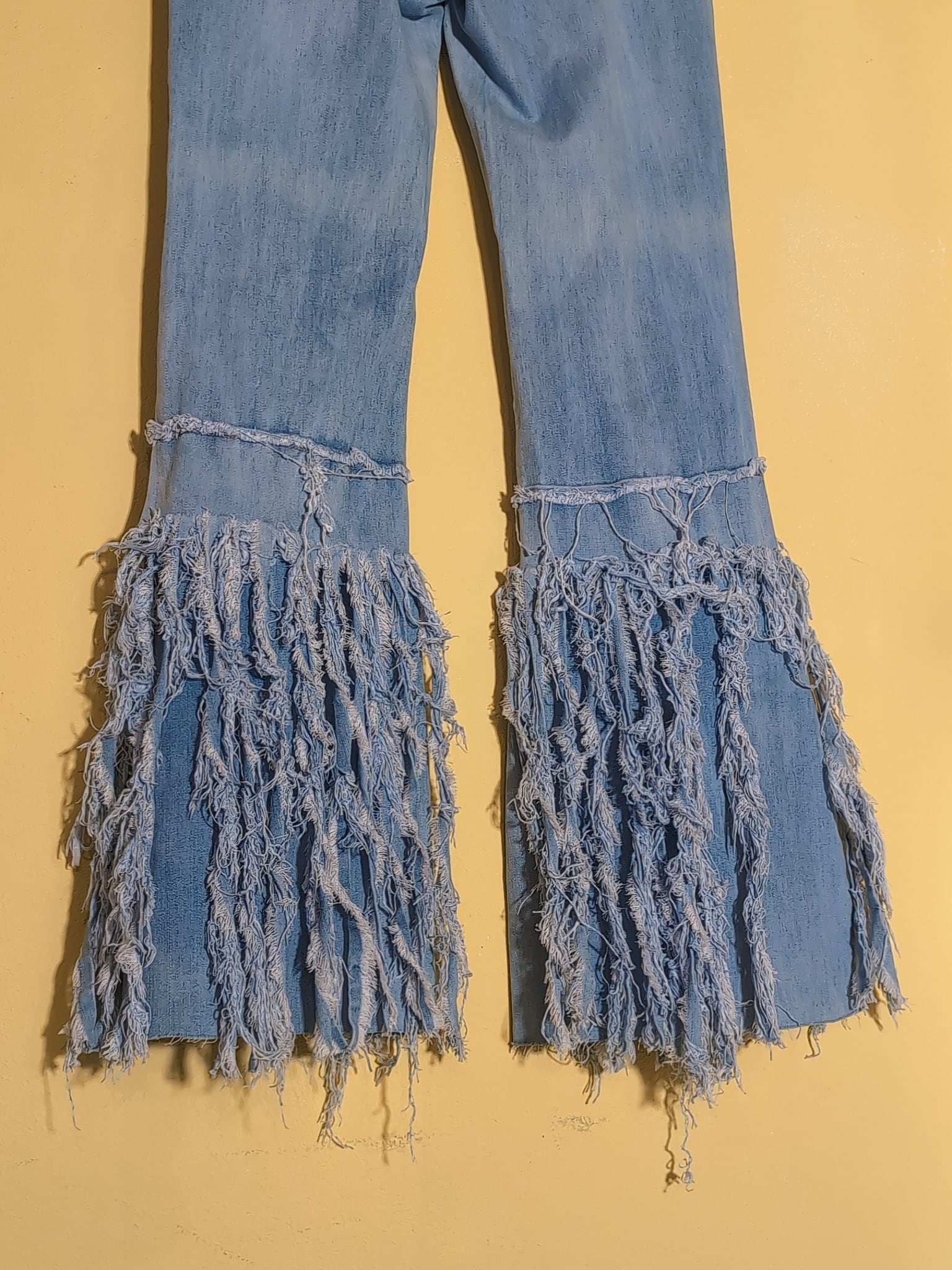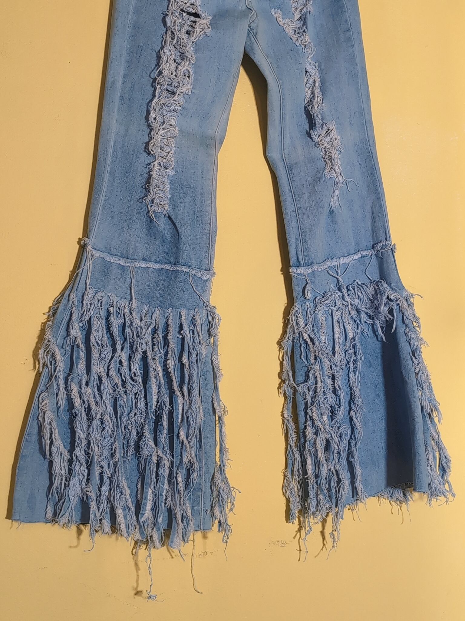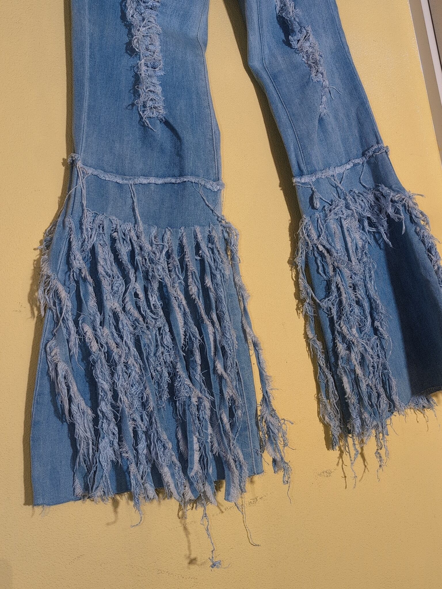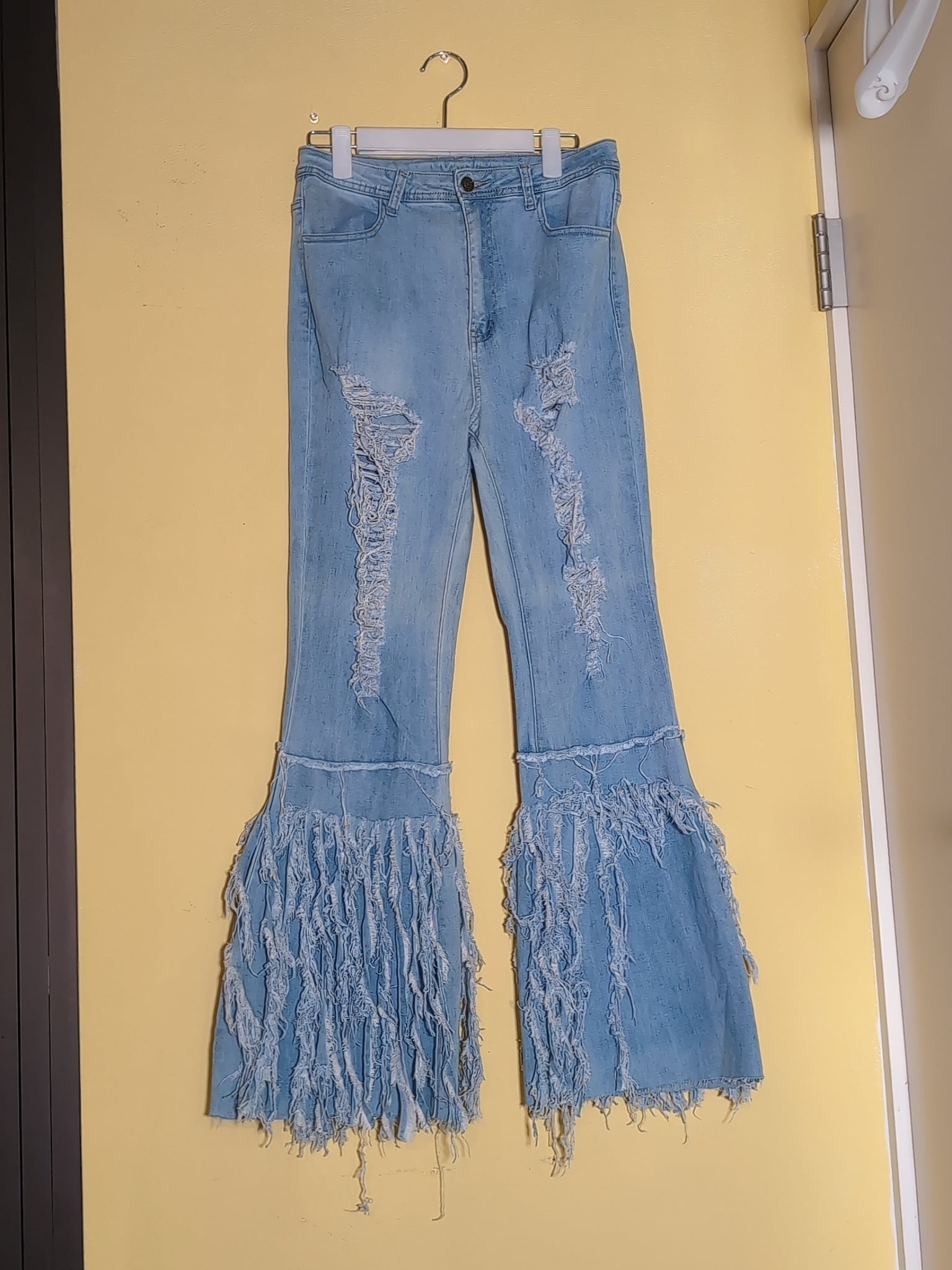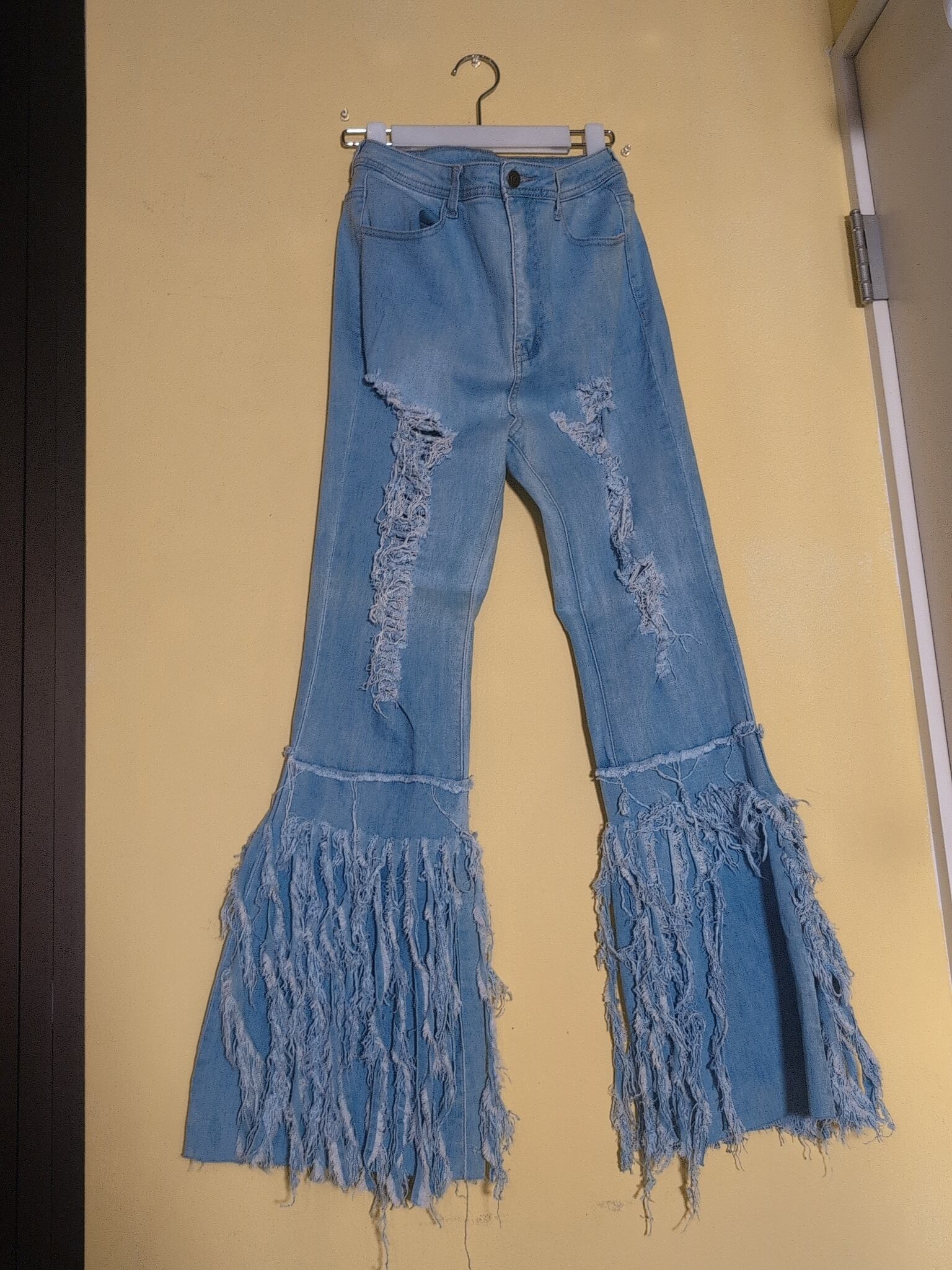 フリンジ部分やダメージが絶妙、ストレッチが効くので程よくフィットしてくれます。