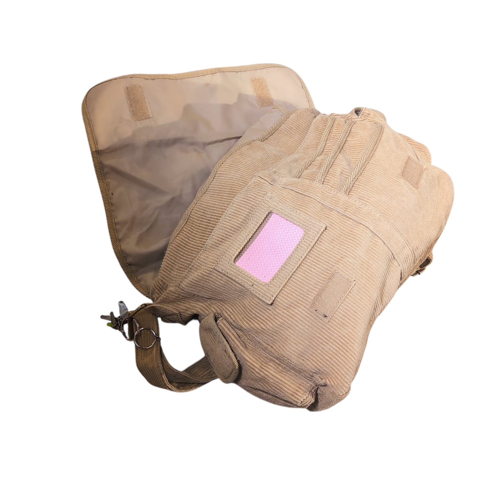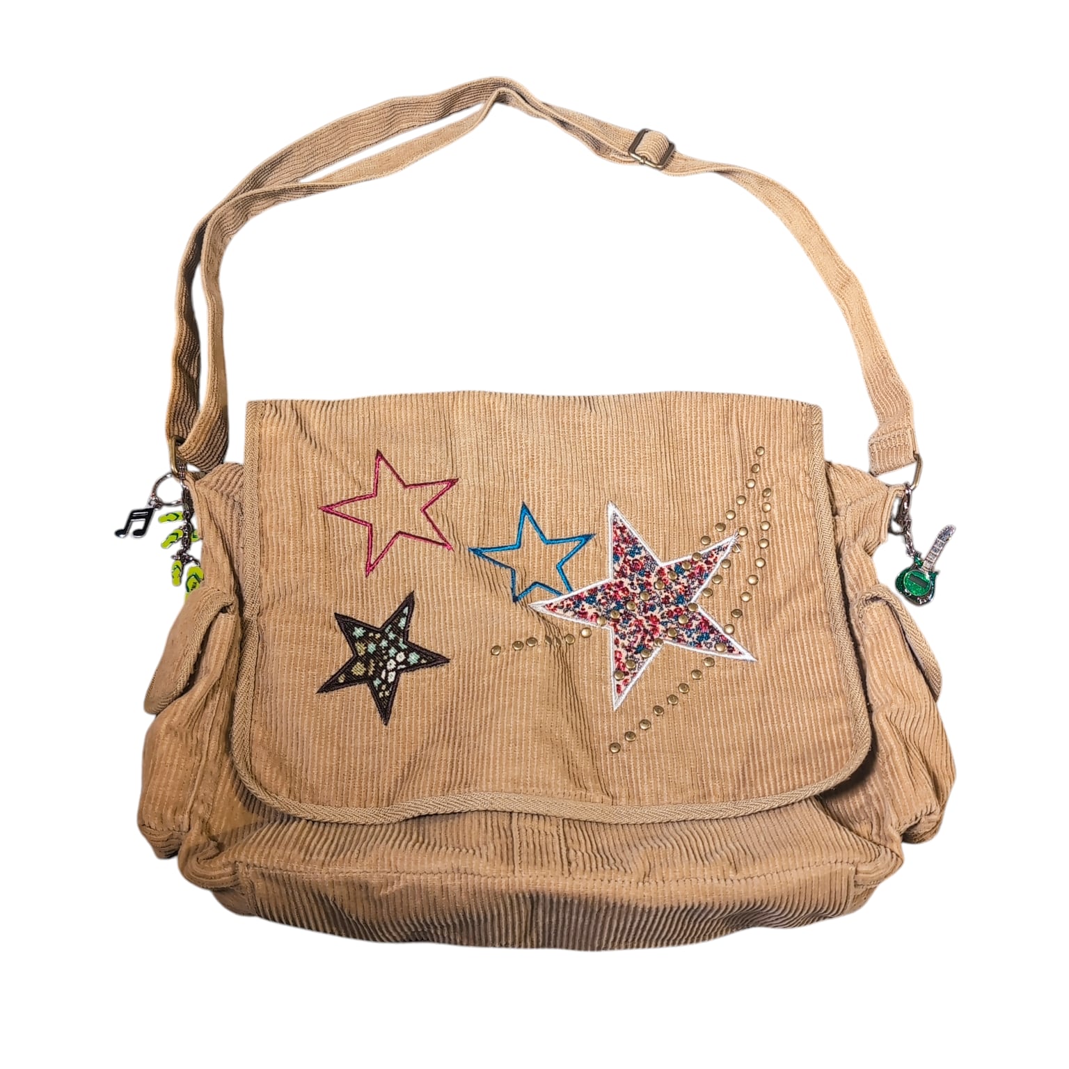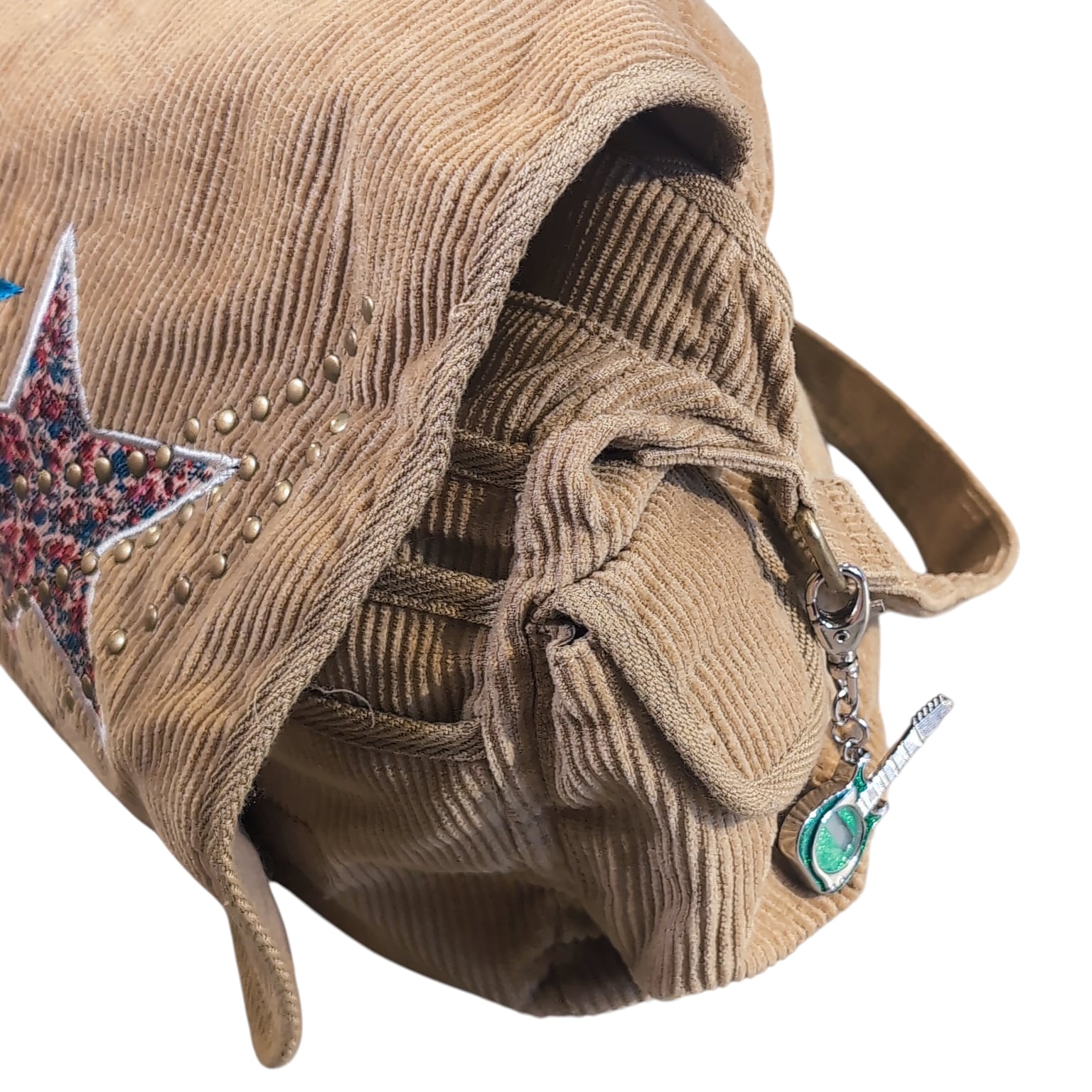 細畝のCORDUROYにお星様のパッチワーク、後付けなのだろうかキーホルダーがチャラッと付いてます。キーホルダーのセンスも絶妙でナイス。