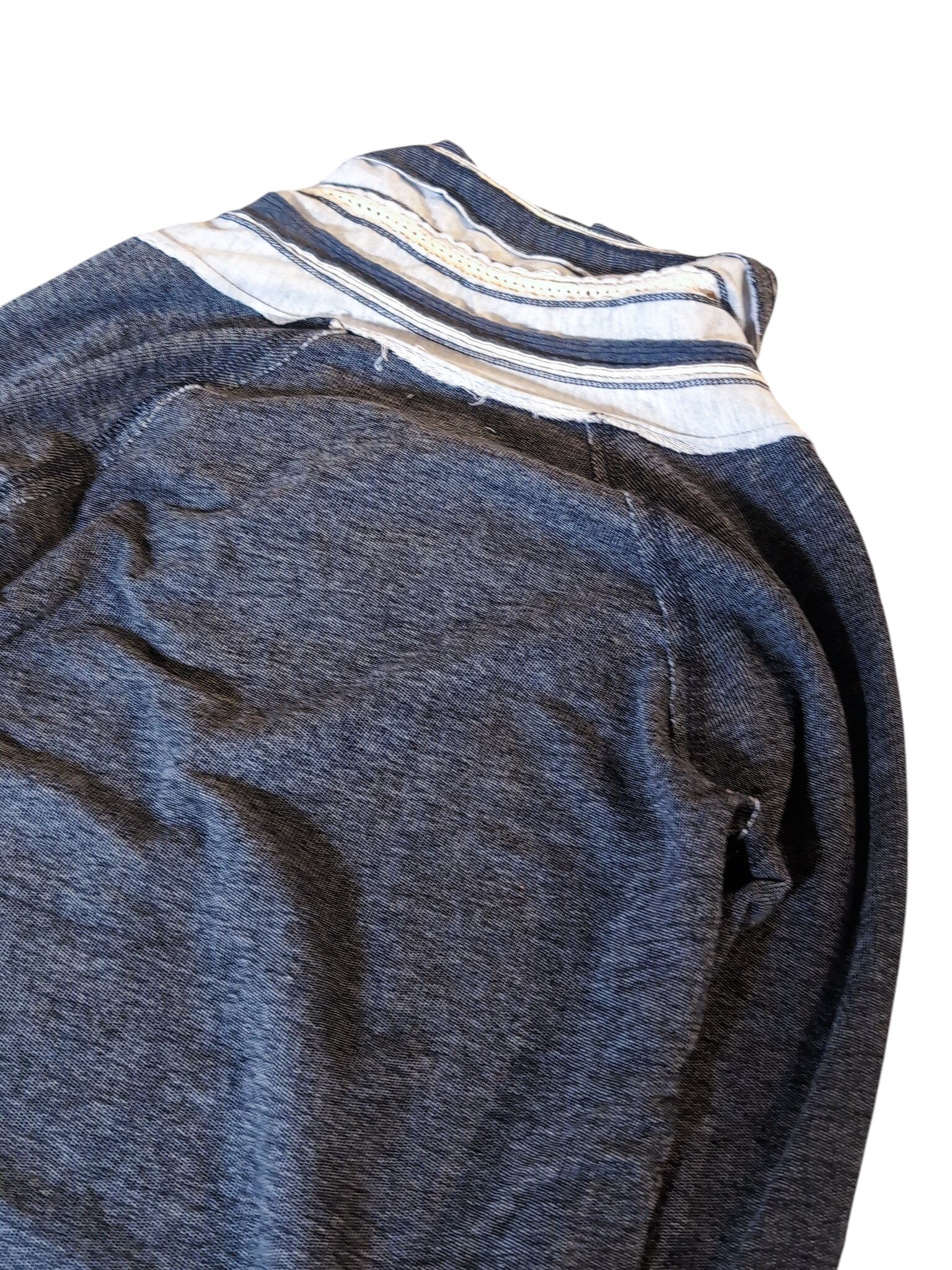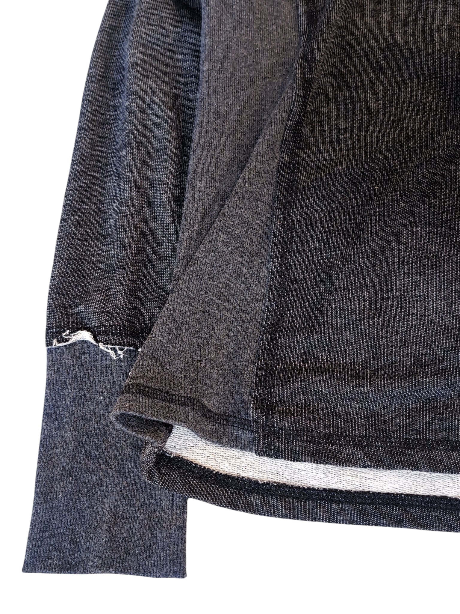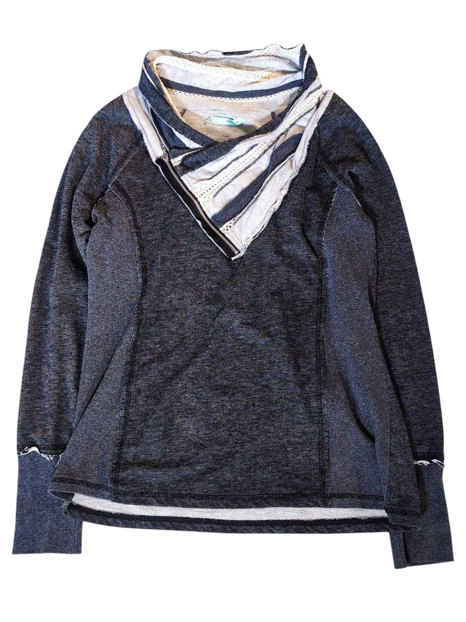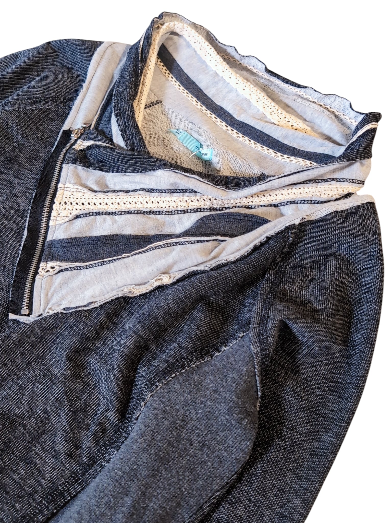 クタッとしたちょっとダメージ感のある質感と、ジップやレースのアクセントが魅力的な一着です。薄手のスウェットのような素材感で使い勝手良し。