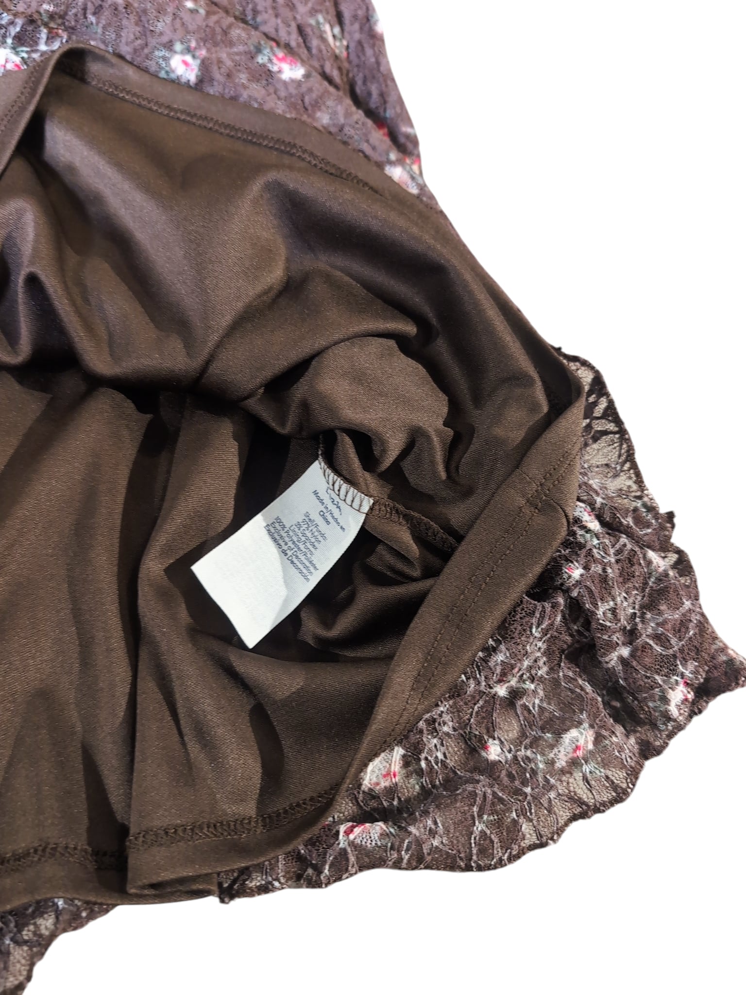 ブラウン×ピンクのお花がらが可愛らしい一着。