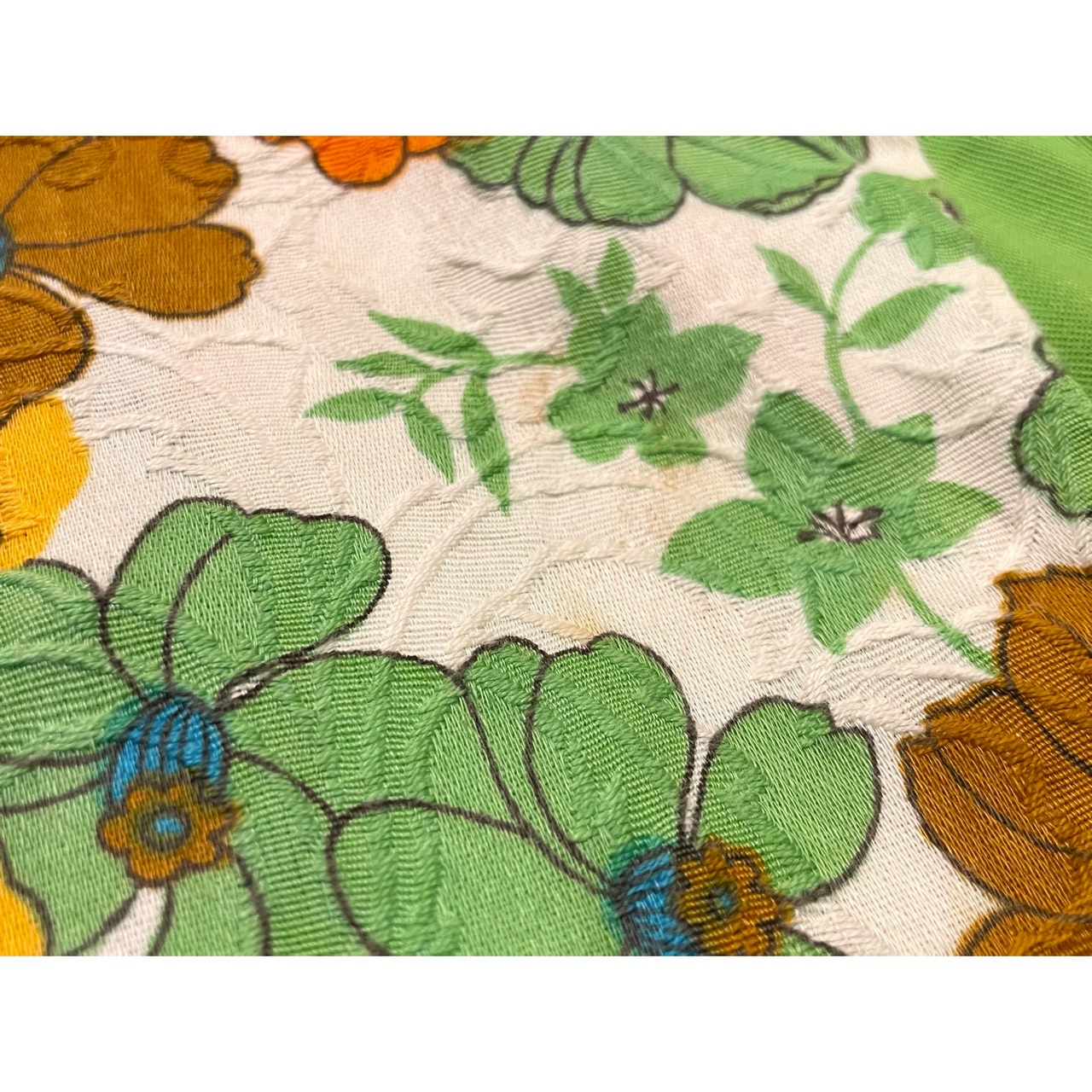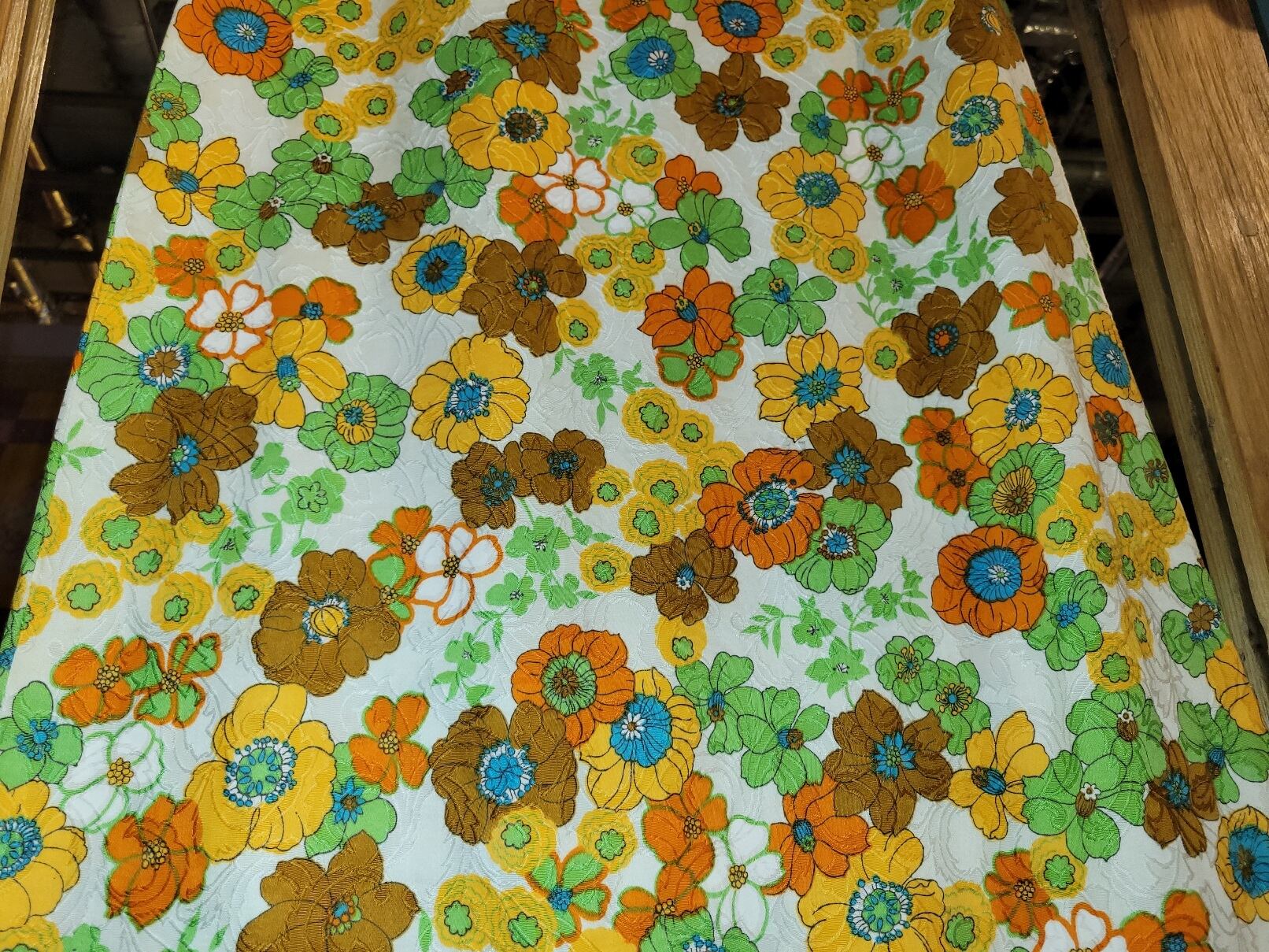 レトロなお花柄のプリントに立体的なジャガード生地が素敵なテキスタイル。