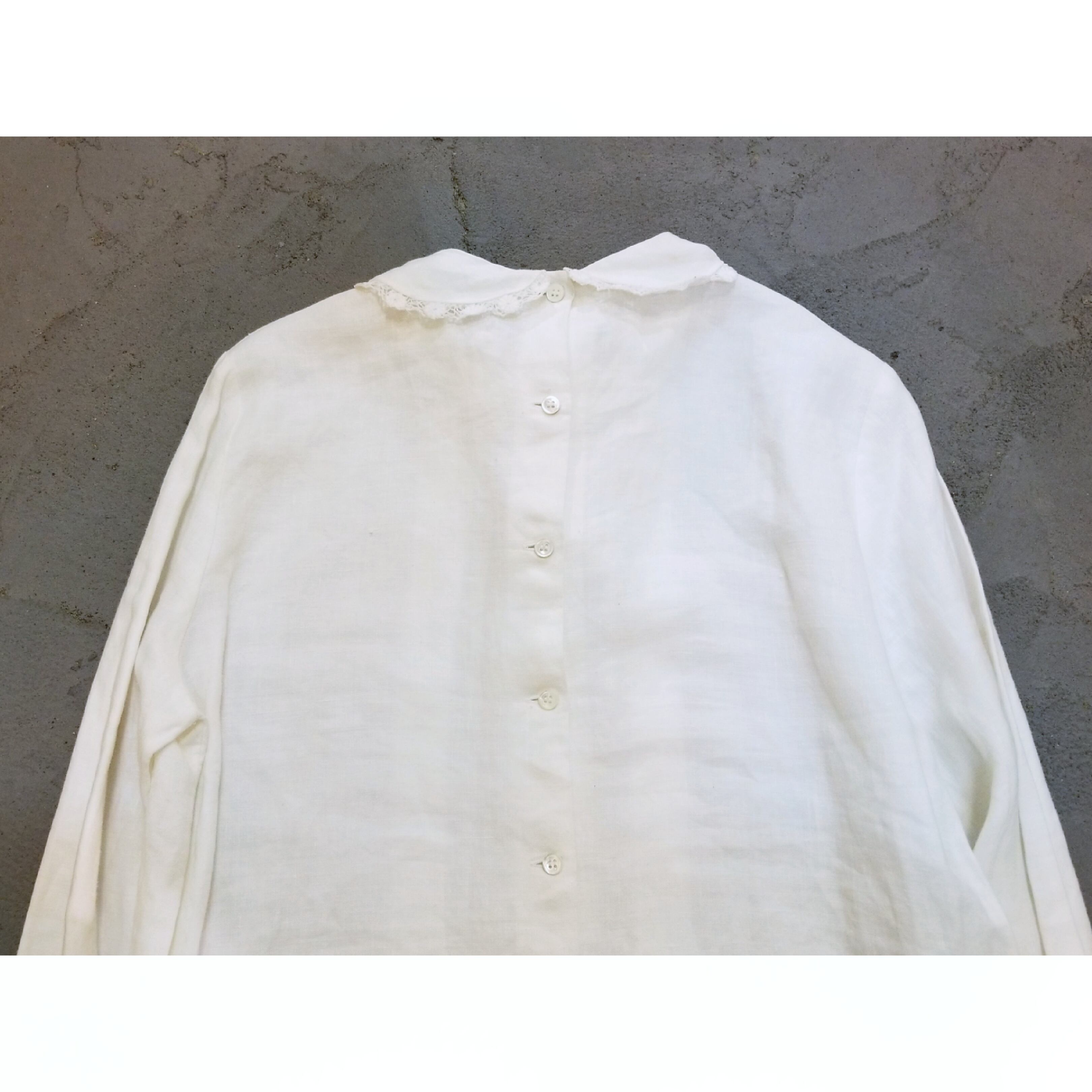 色味は、ホワイト。可憐なデザインに、控えめに施された襟元のレースとフロントのデザインが魅力的です。ボタンは背面にあり、シンプルにデザインそのものを頼めるのも◎使い回しのきく一着です。
