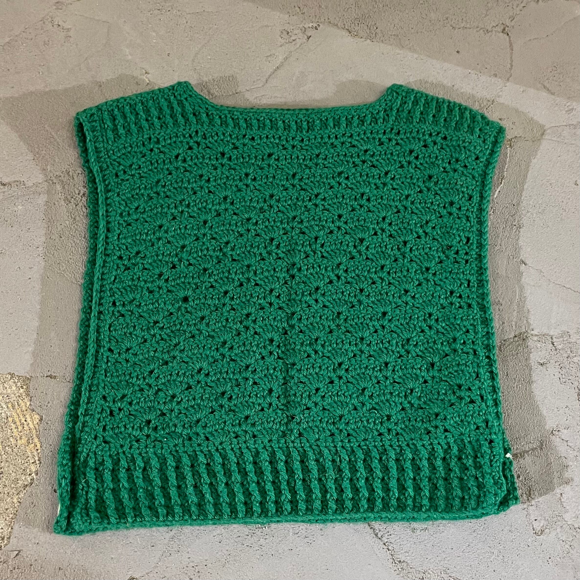 細かな編みと、サイド下でボタンを留めるデザインの1着