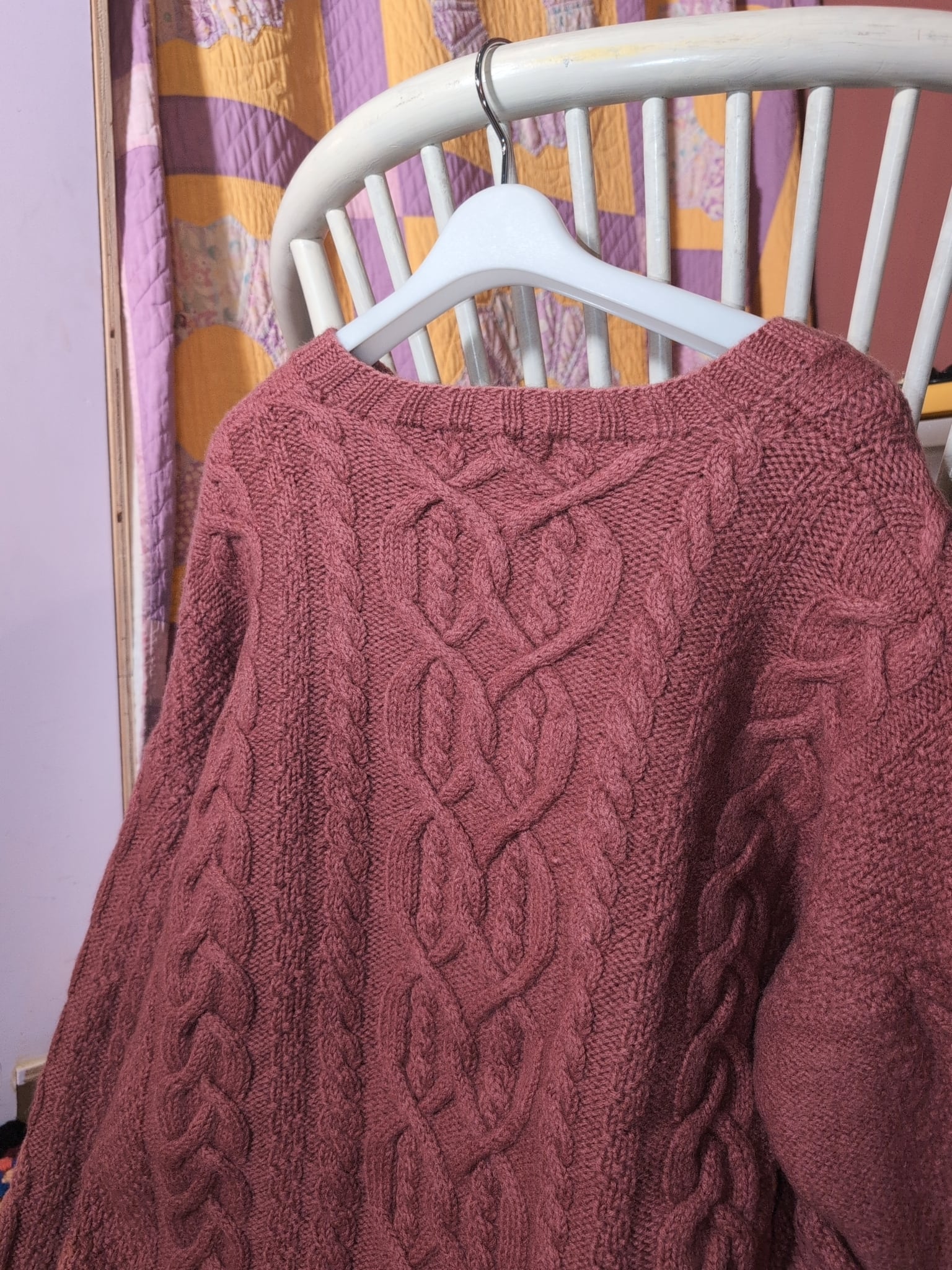 色味は、ダスティピンク。立体的な編みでのもっちりとした質感が魅力的。ゆるっと着やすいサイズ感も◎落ち着きのあるピンクで幅広いかたにおすすめです。