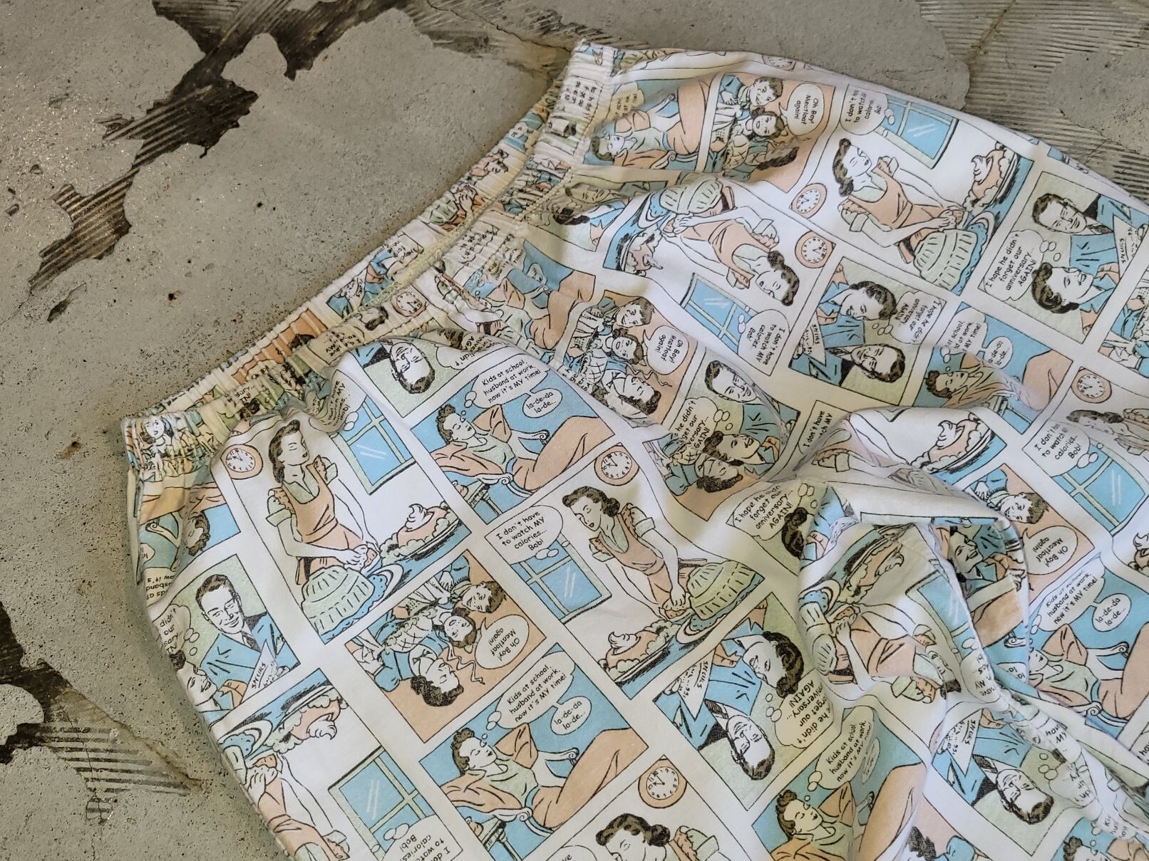 色味は、ホワイト × ブラック × ライトブルー × ベビーピンク。アメコミ柄がキュート。アメコミ柄というとビビッドな色味のイメージがありますが優しいパステルなのがより魅力的。