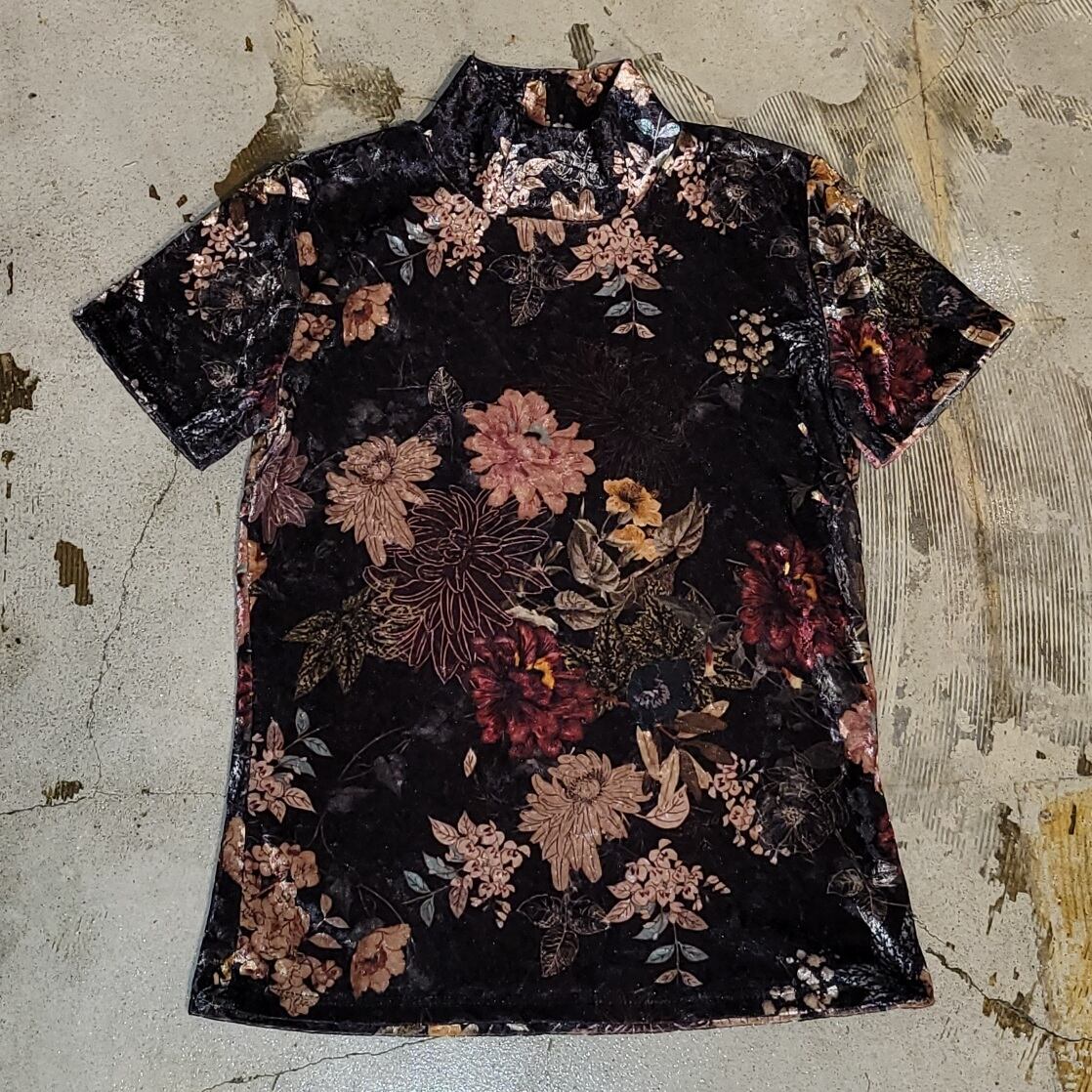 OLD FLOWER PRINT VELOUR TEE