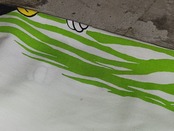 色味は、ホワイト × レッド × グリーン × ブラック。草原からガサッとこちらをのぞくミッキーがかわいいです。タグは劣化で見えなくなってしまい定かではないですがブートっぽい雰囲気のあるミッキーの表情がかわいいです。