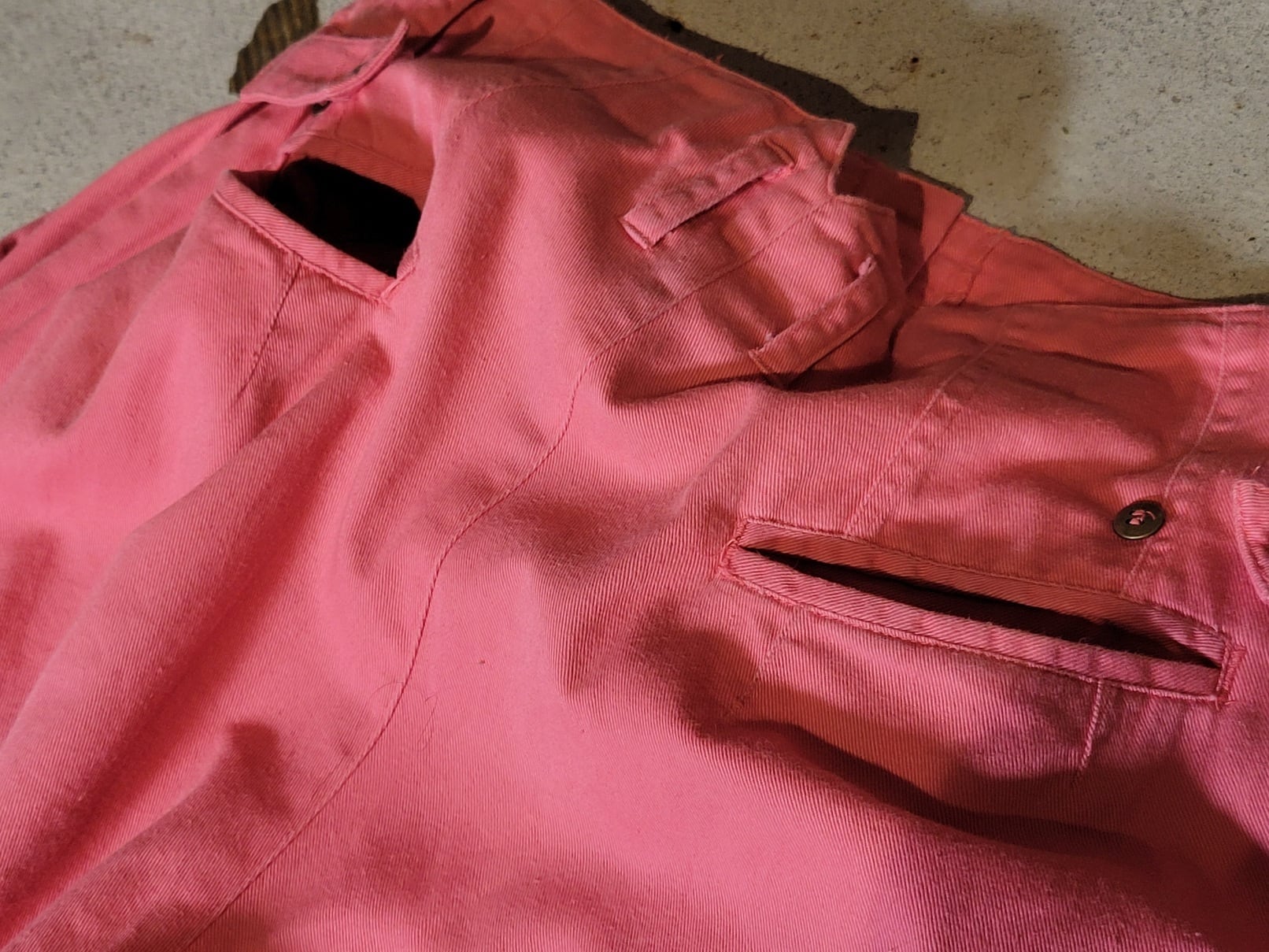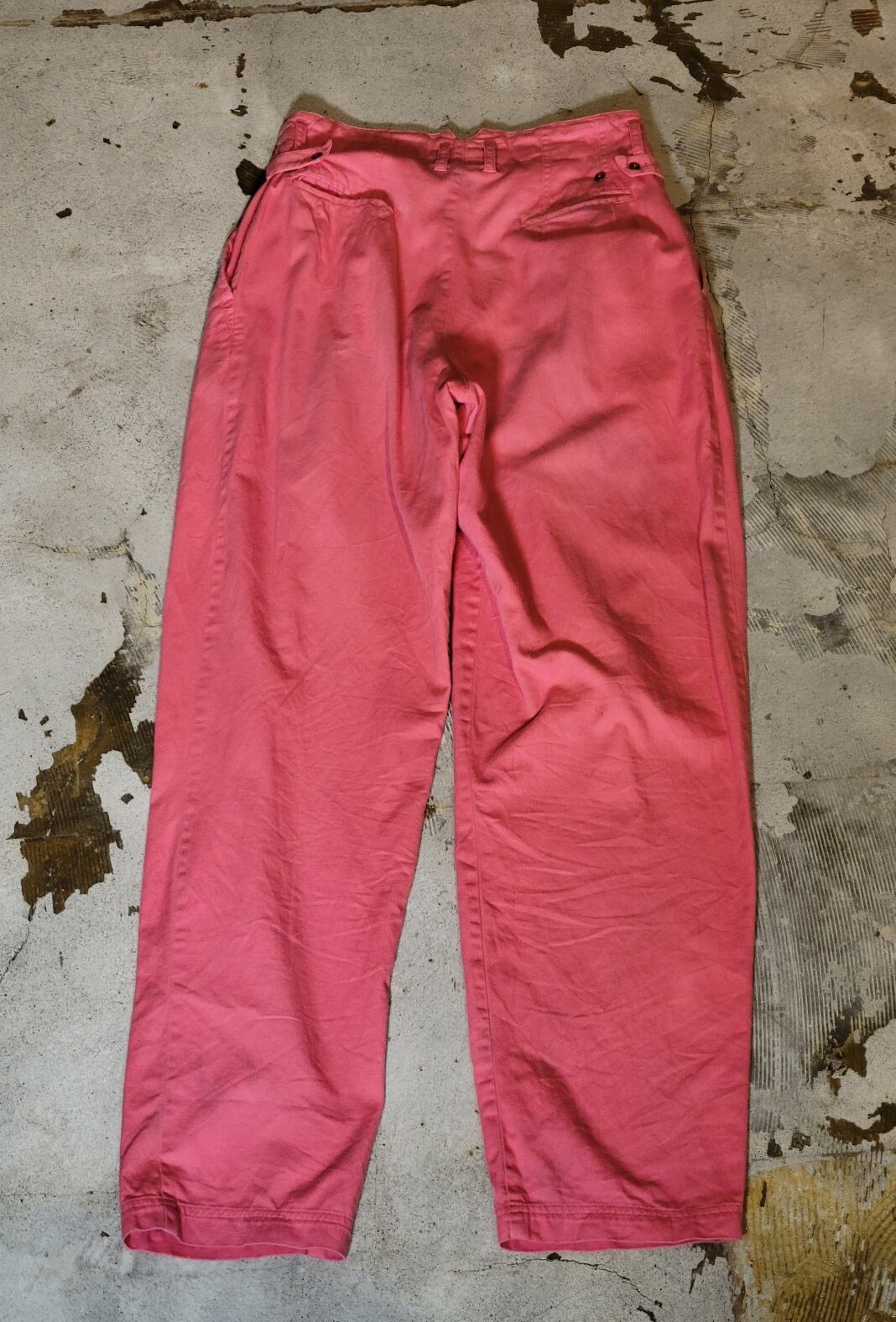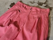 色味は、ピンク。ギュギュっとハイなウエストに、ゆったりした太腿まわり。そこはかと無く80'sっぽいシルエットが可愛いです。潔いカラーをまとってパキッとした一日を、どうぞ。