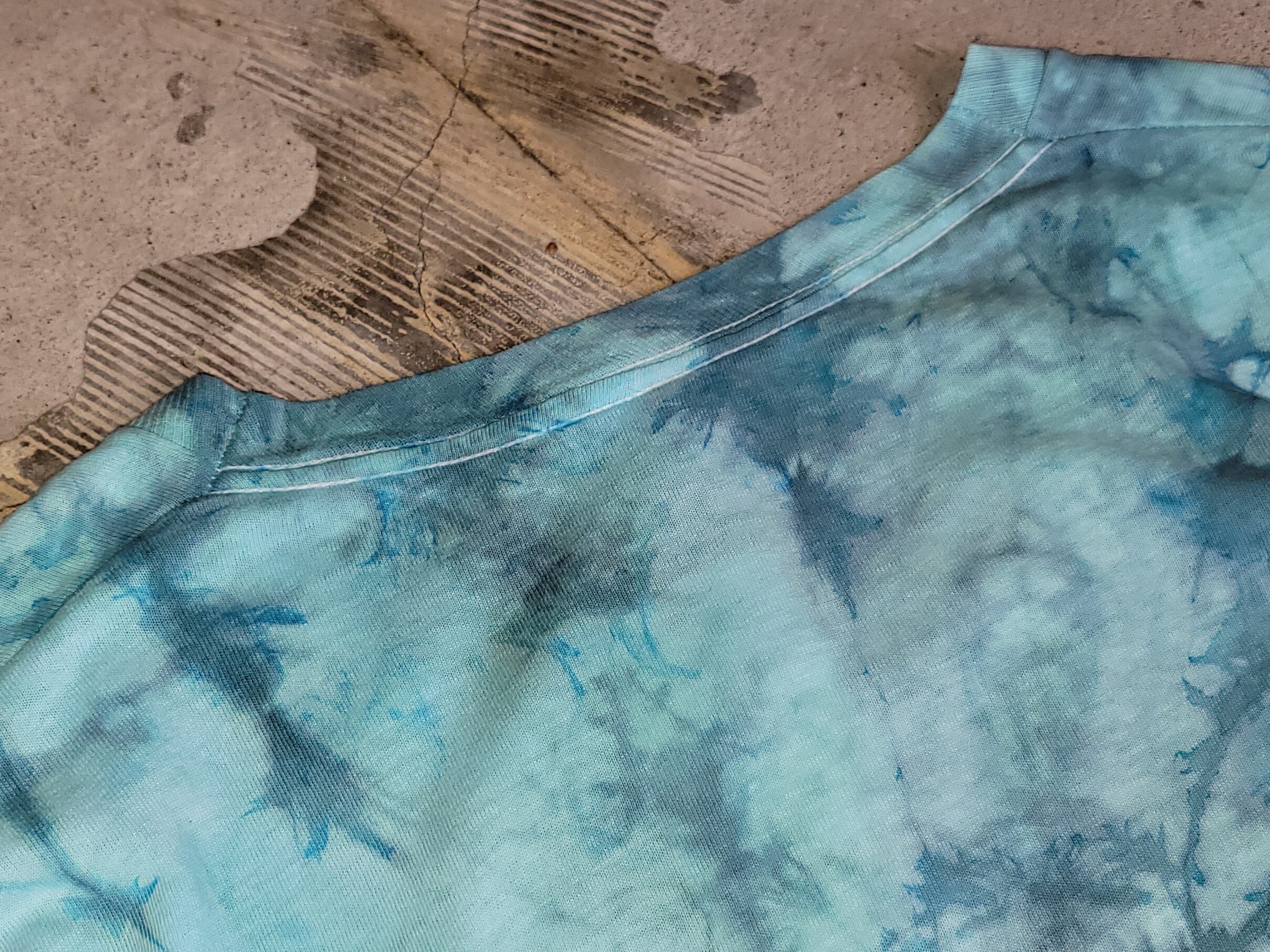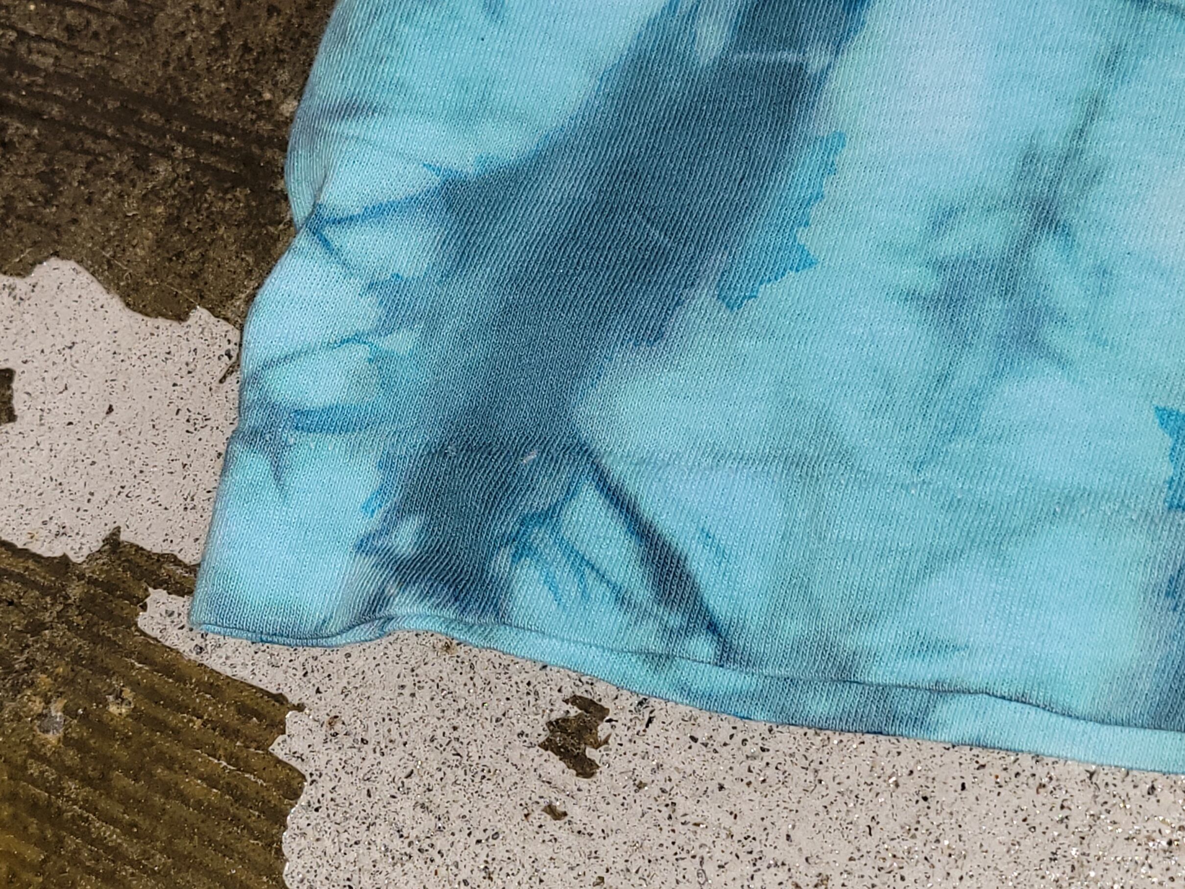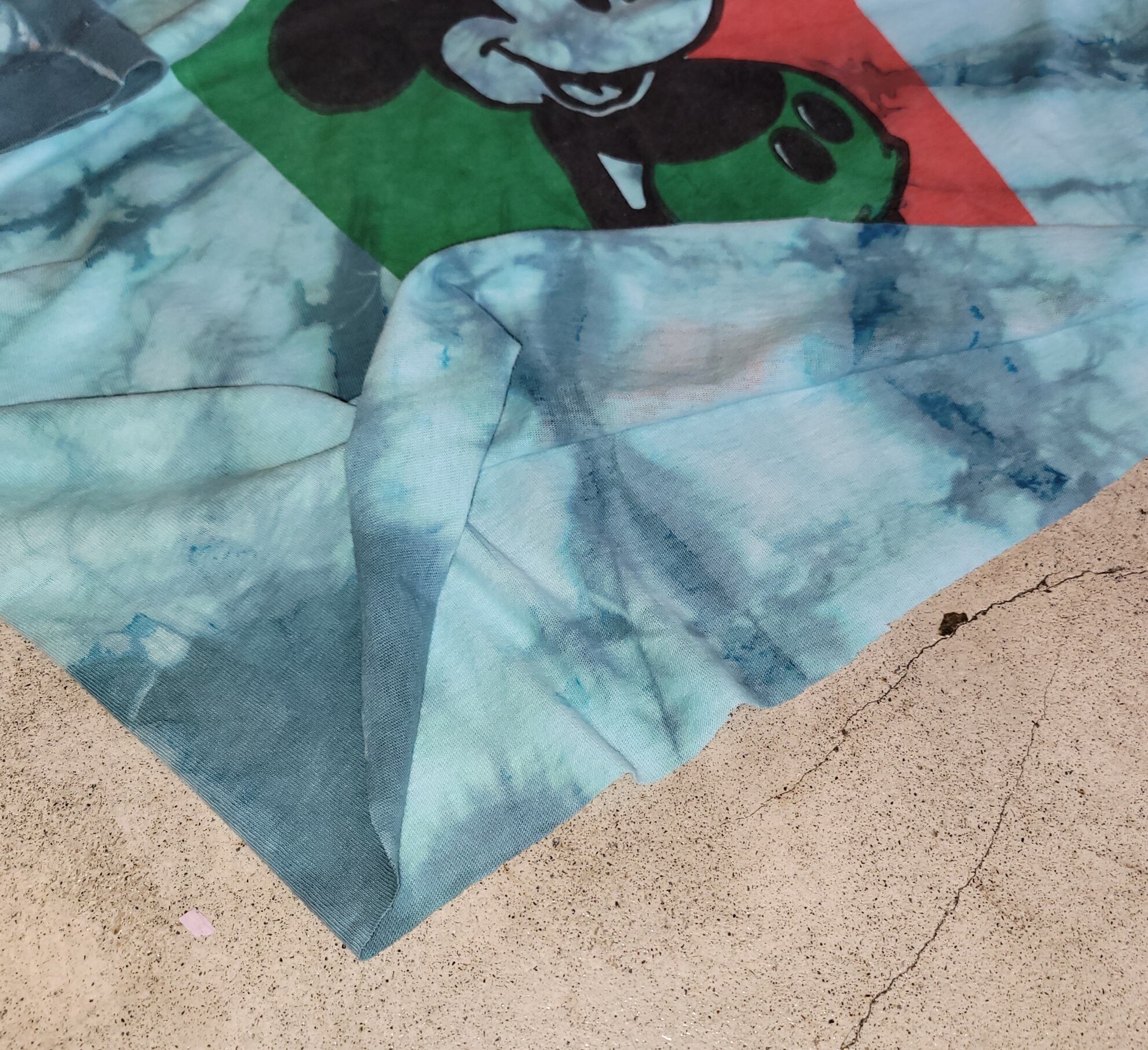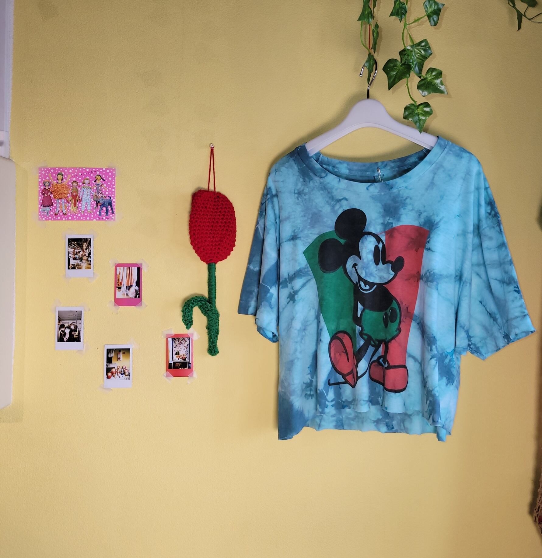色味は、ブルー × グリーン × レッド × ブラック。インパクトのあるタイダイ × ミッキーというタッグ。イタリア国旗を背負っているのか?アンバランスさと短めの丈がなんだか可愛い。
