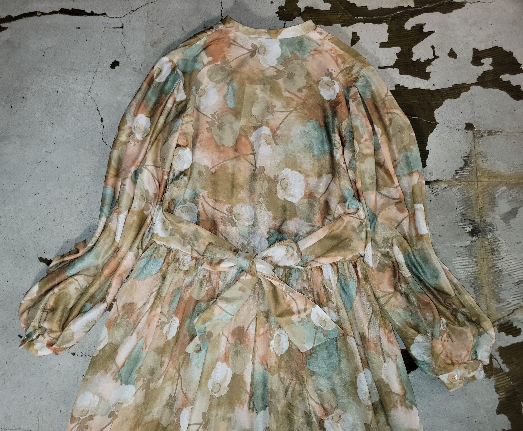 色味は、ベージュ × ホワイト × グリーン。シアーな素材感と、ボリュームのあるポワンとした袖口が素敵な一着。太さのあるひもぶぶんも可愛らしいです◎