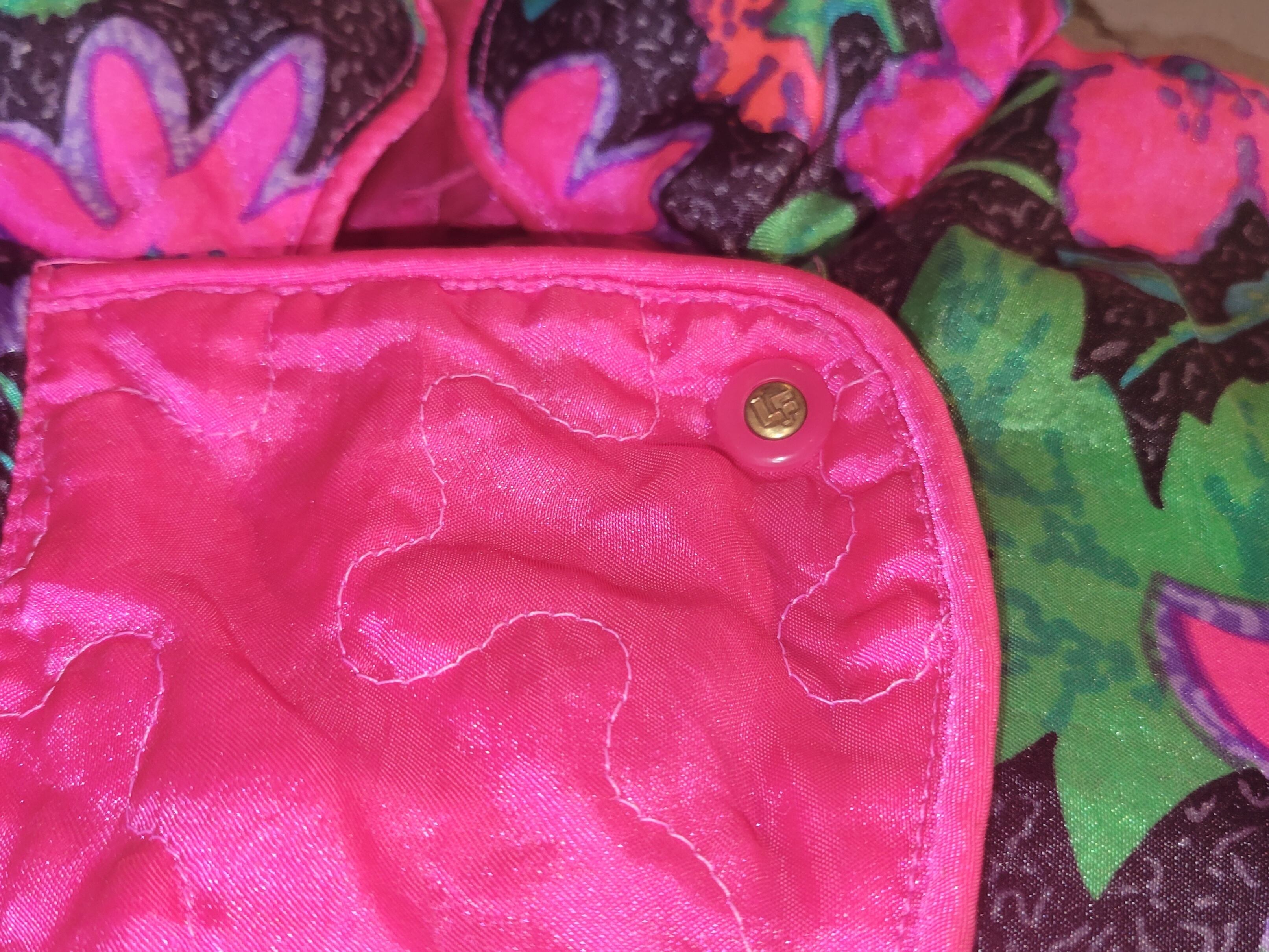 色味は、ブラック × ピンク × グリーン × パープル。トレンチコート等々のアイテムできっと皆さんも目にしたことは多いであろうロンドンフォグ。こんなに攻めたデザインのものもやっているんだ?面白いね。ヒラヒラと波打つライン使いや、パッと目をひく大きなお花のプリント大胆な雰囲気がユニーク。