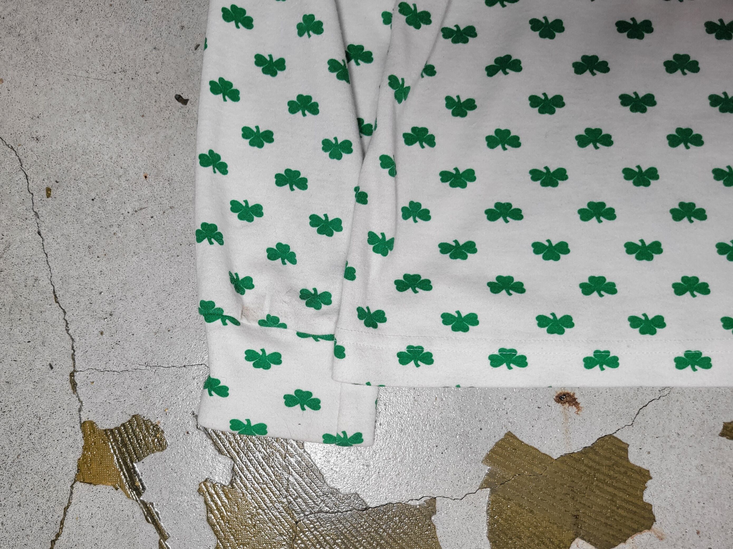 色味は、ホワイト × グリーン。規則的に並ぶ模様はみつばの葉っぱ。細やかな模様が可愛らしく、サイズ感はゆるっと。重ね着の楽しいこれからの時期のレイヤードとしてももちろん、ざ インナー、なにかを重ねなきゃ着れないわよ。という雰囲気ではなく独立した一つのアイテムとして着られる汎用性も◎