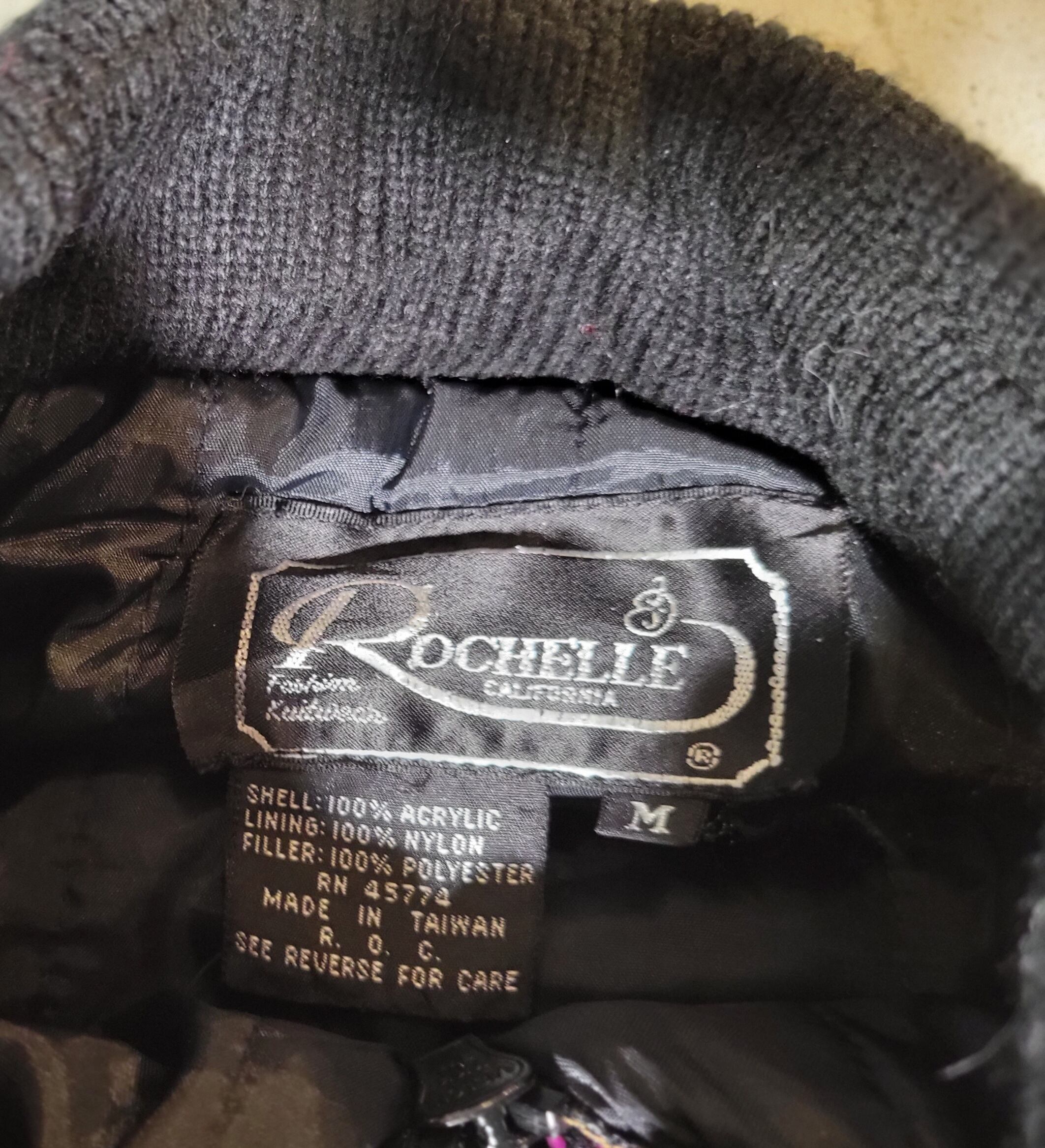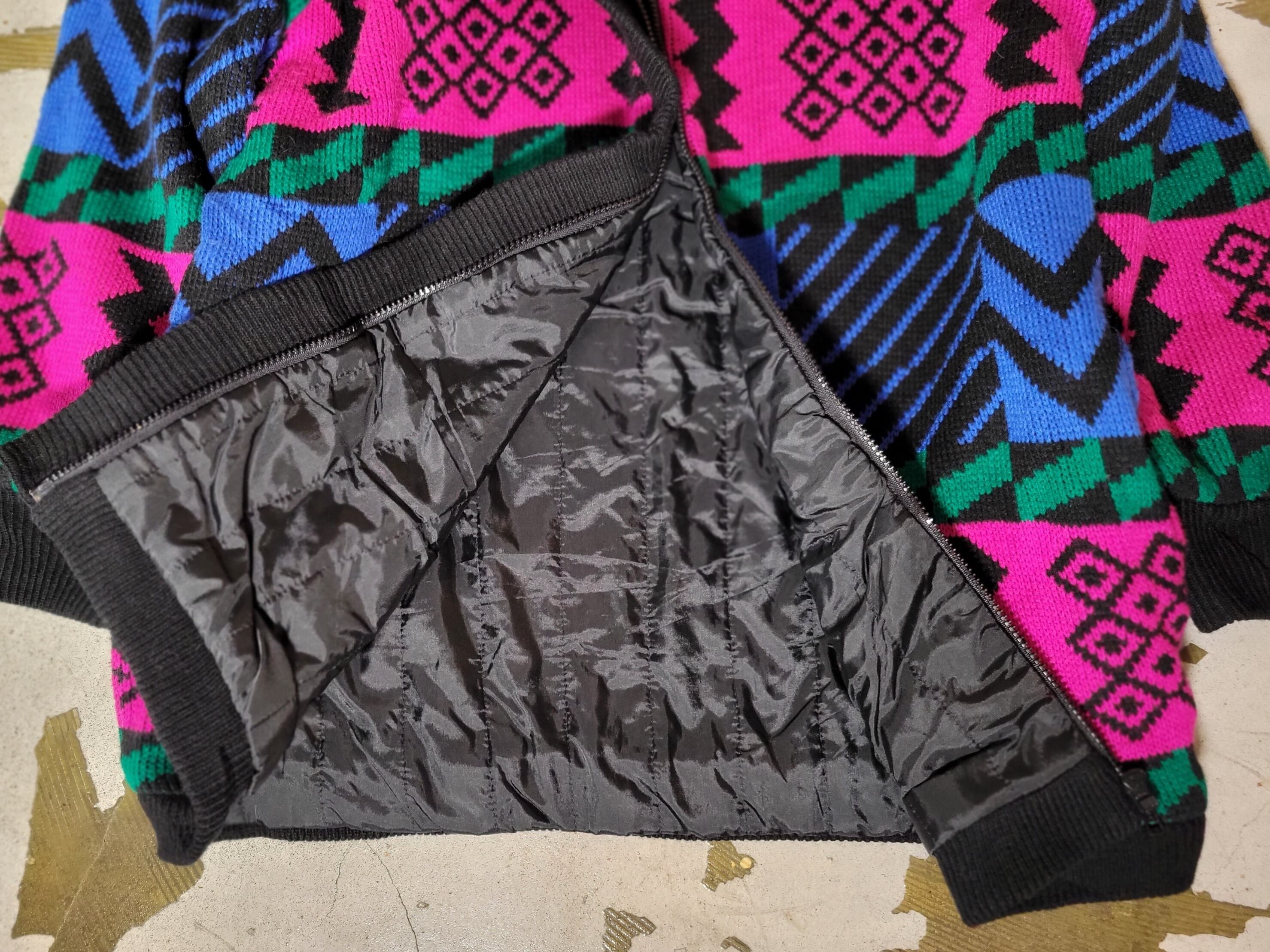 色味は、ブラック × パープル × グリーン × ブルー。幾何学的な不思議な模様、ポワンとしたシルエットやきゅっとしまるそで元のリブ、キラキラ光るボタンが魅力。お洋服の雰囲気そのままに、ミステリアスな印象で着るもよし、アクティブなアイテムと合わせて遊び心のあるスタイリングもおすすめです。