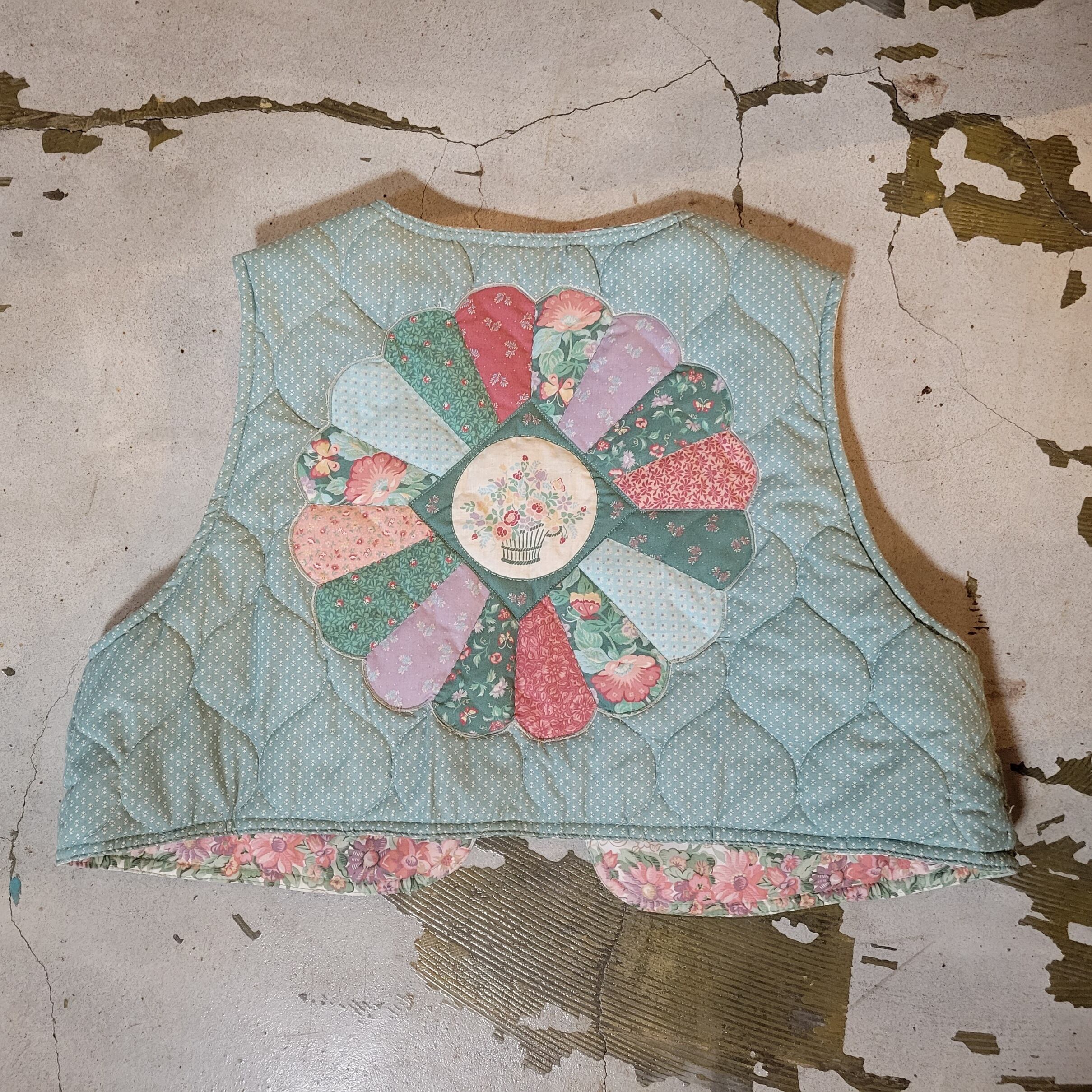 色味は、ペールグリーン × ライラック × ホワイト × イエロー。淡く優しいカラーリングと、背中のお花モチーフがなんとも可愛らしい一着。リバーシブルかつゆったりとしたサイズなので重ね着の幅も効くのが嬉しいポイント◎