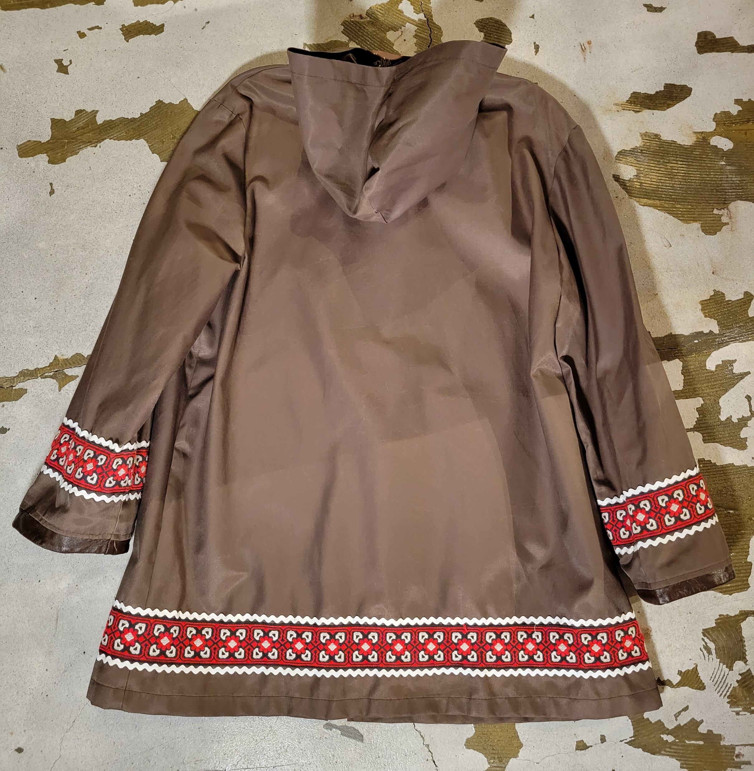色味は、ブラウン × レッド × ホワイト × ブラック。コットンとナイロンのシャカっとした軽い素材感。存在感のある太いチロリアンテープとその上を囲む波打つテープ。袖部分やポケットのパイピング等、さらっと合わせやすいけれどお気に入りなポイントのギュッとつまった一着です。