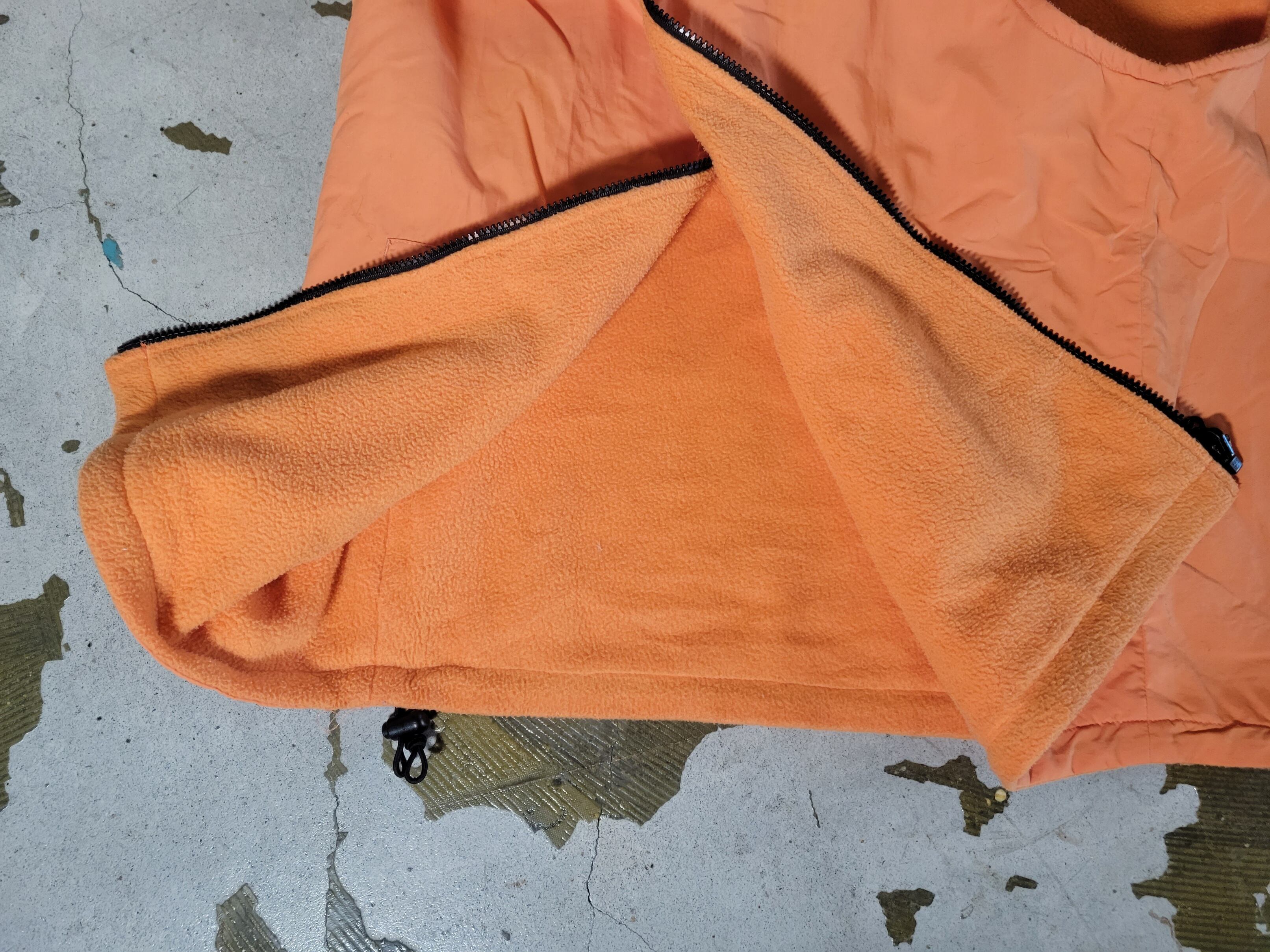 色味は、オレンジ × ブラック。絶妙なオレンジ、内側はフリース、フード付き、大きめのサイズが"なんか"可愛いです。スウェットやルーズなパンツとあわせて雰囲気をそのままに着るもよし、ワンピやスカート等とあわせてはずすもよし。