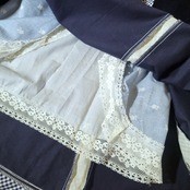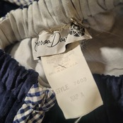 色味は、ネイビー × ホワイト。シックなカラーリングと上質なベロア。大人な雰囲気で抜群の合わせやすさ、飽きが来にくく重宝しそうなデザインが魅力的。小花柄の裏地で細部にまでキュンと来ます♡嬉しいゴムのウエストにプラスして付属のギンガムチェックのリボンがついているのも好印象。